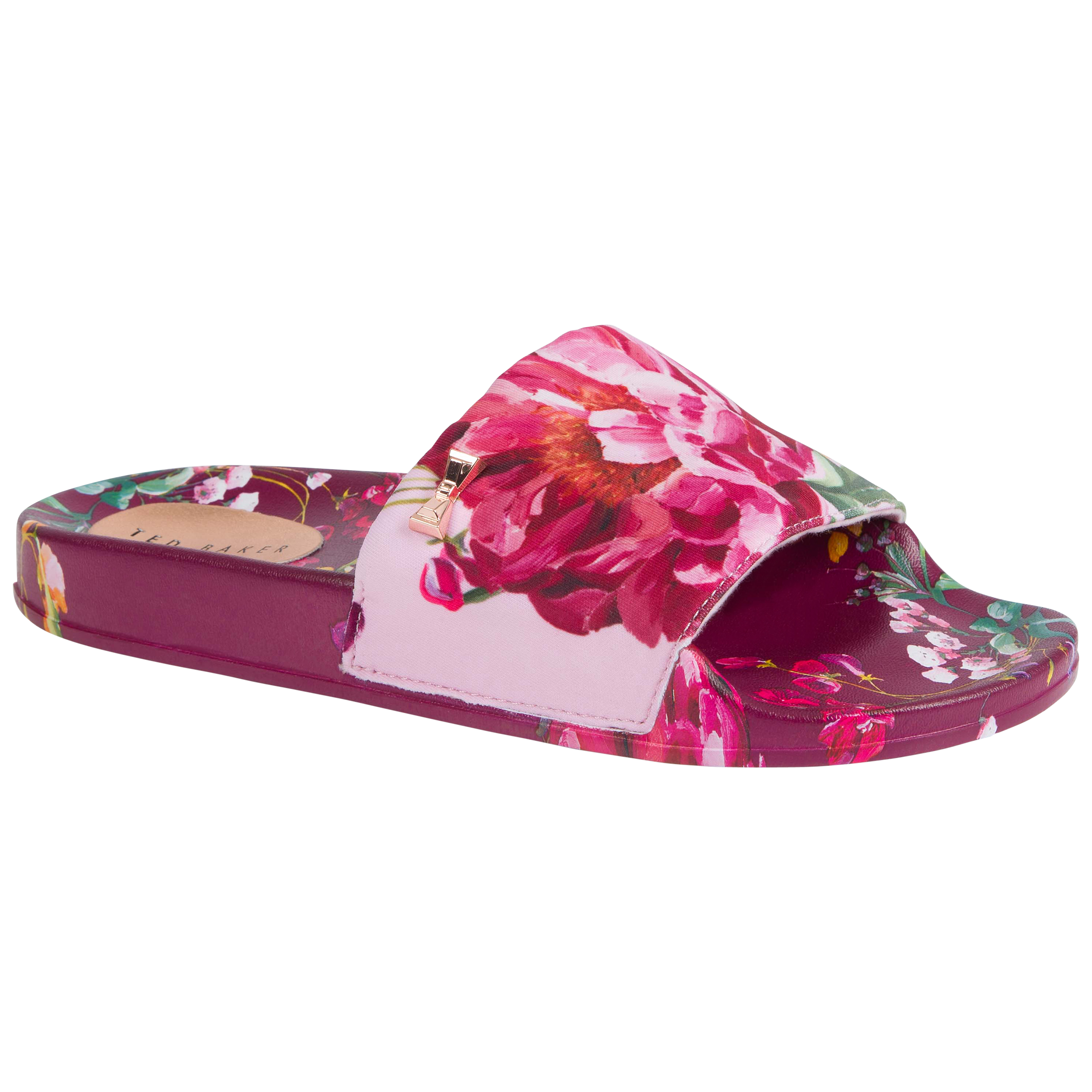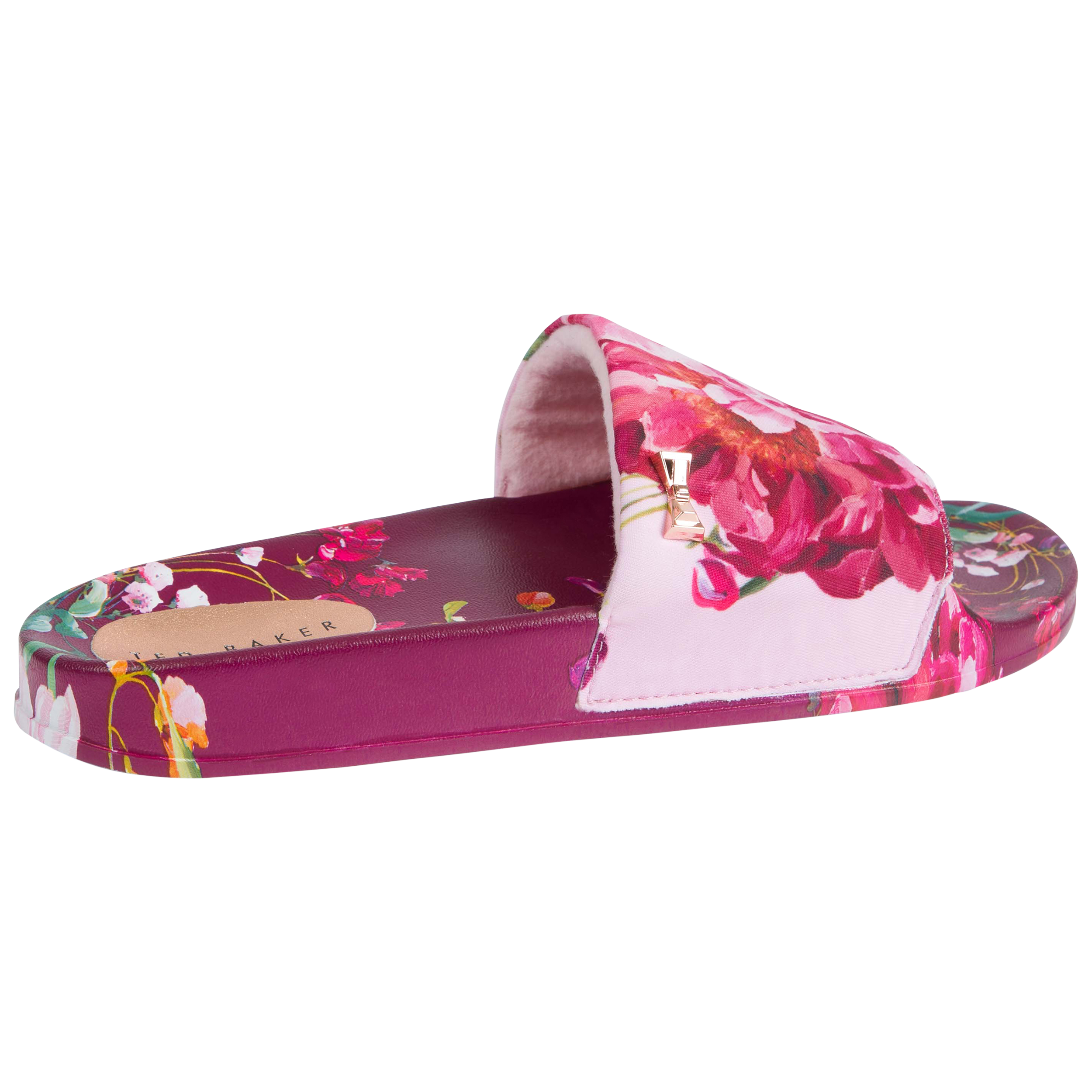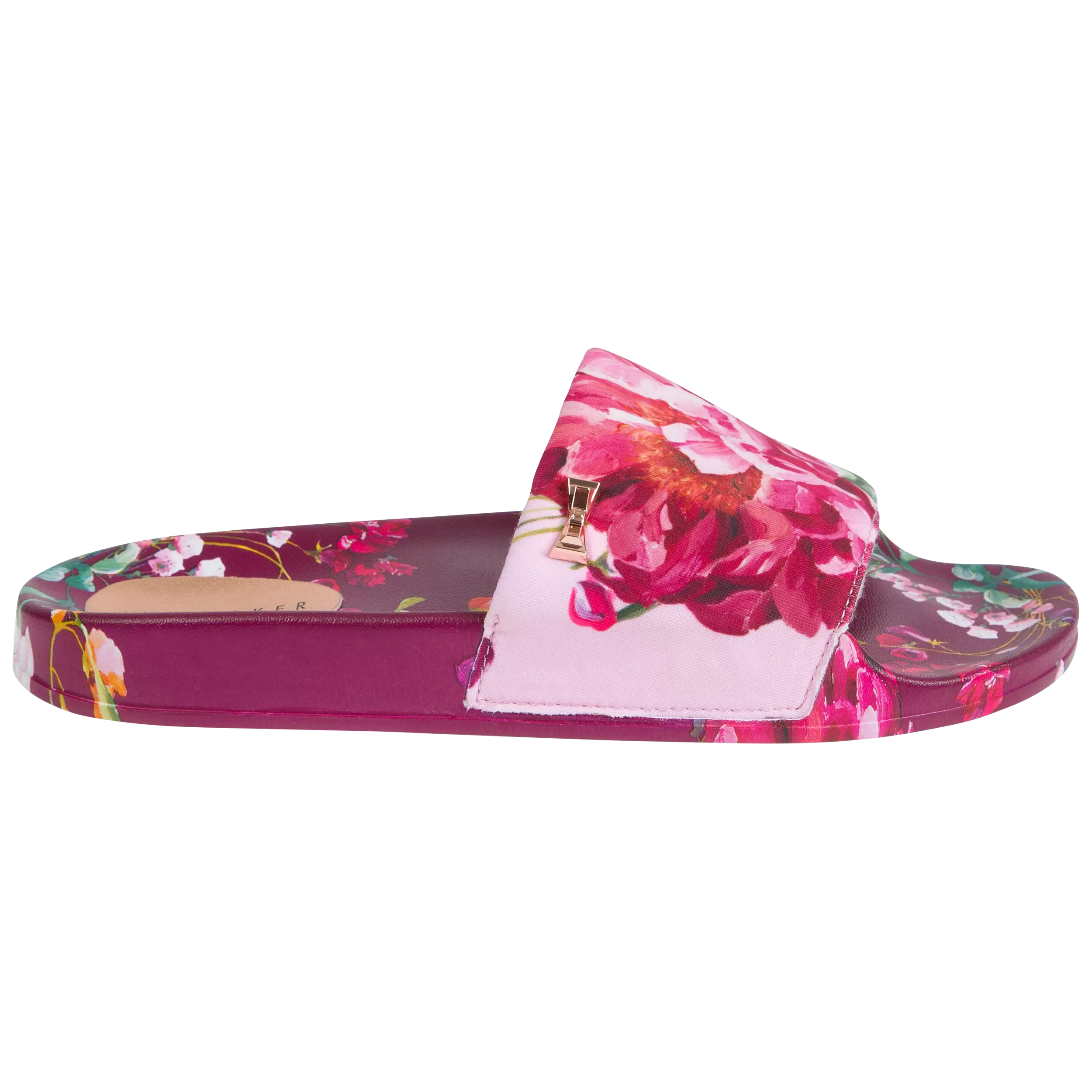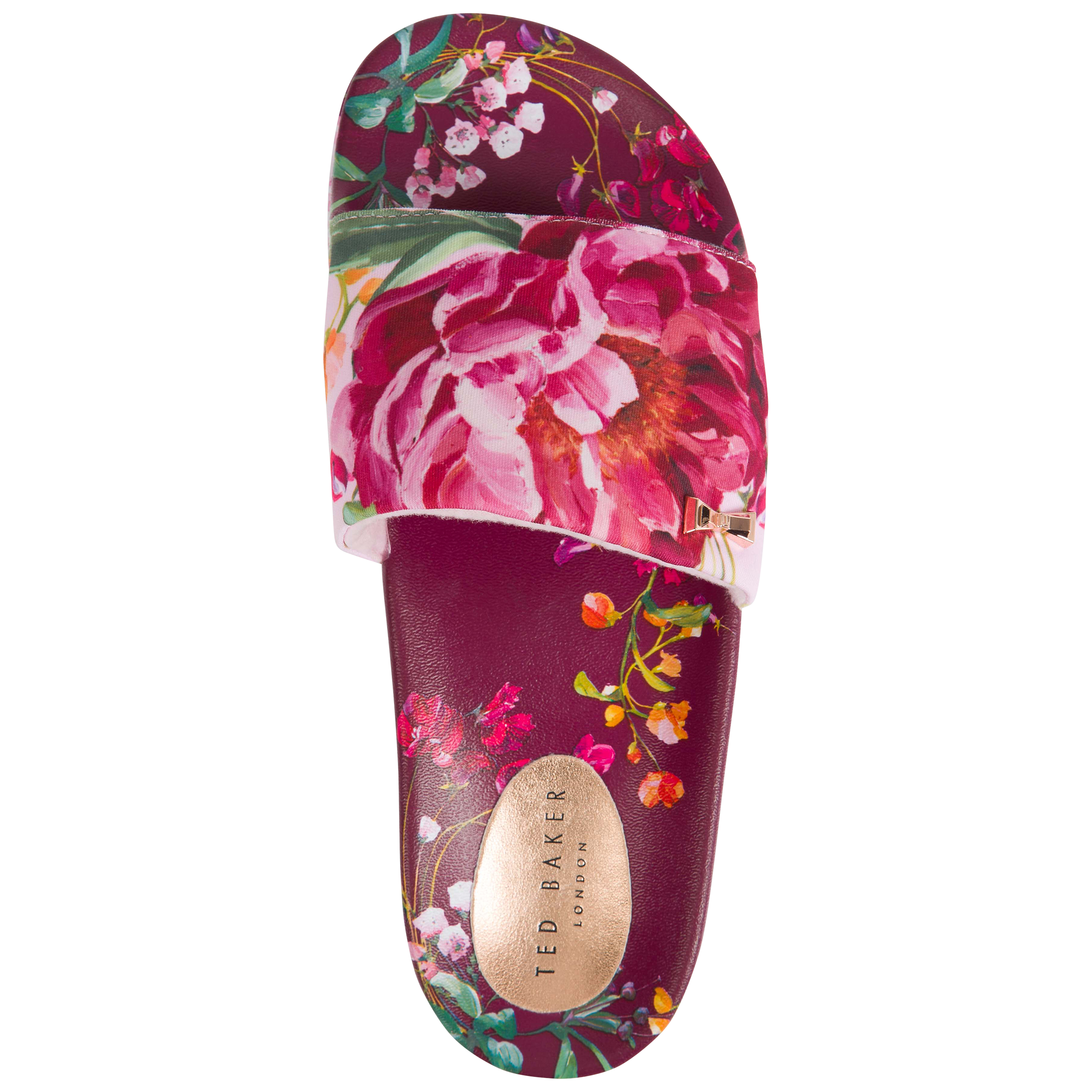 Mix style with comfort with the Qarla sliders from Ted Baker. Perfect for lazy summer days, they slip on with ease and feature a chic pattern on the sole and upper, complete with the brand's signature metallic bow.