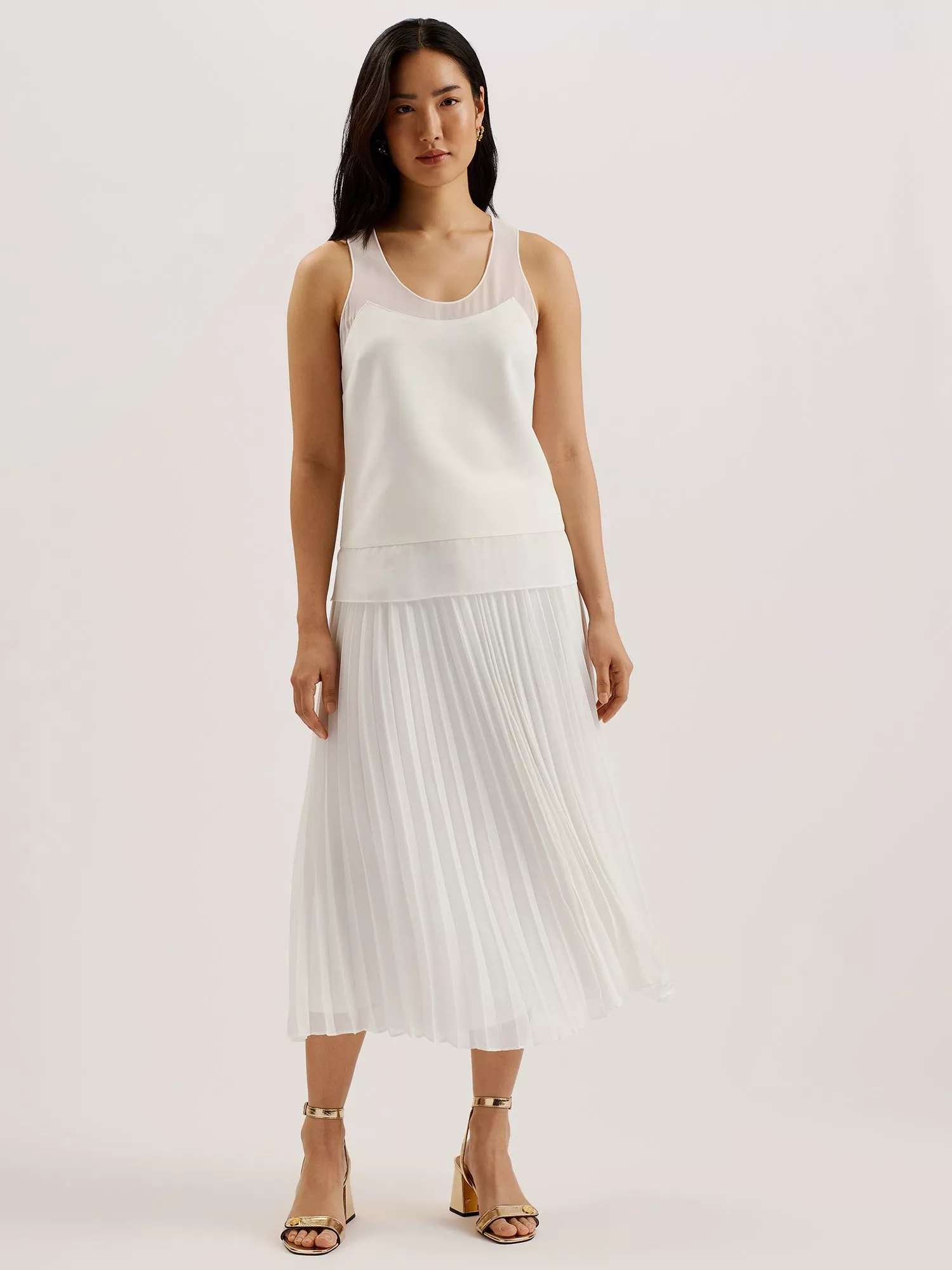 A wardrobe essential, this racerback tank top from Ted Baker is plain for easy mixing and matching. Simply cut with a round neck, it is made from a light yet durable fabric that's made to be tucked into skirts, trousers and jeans.