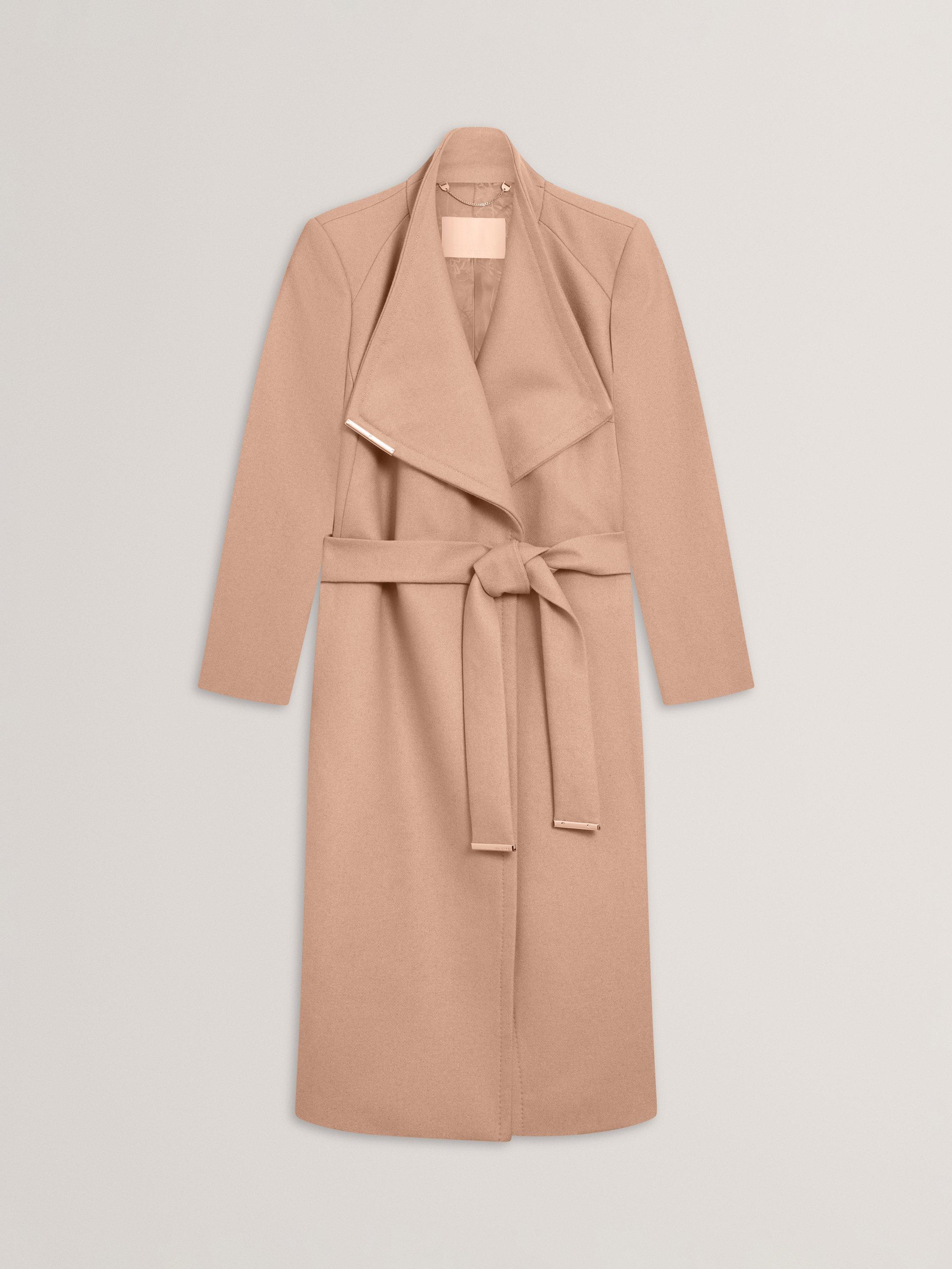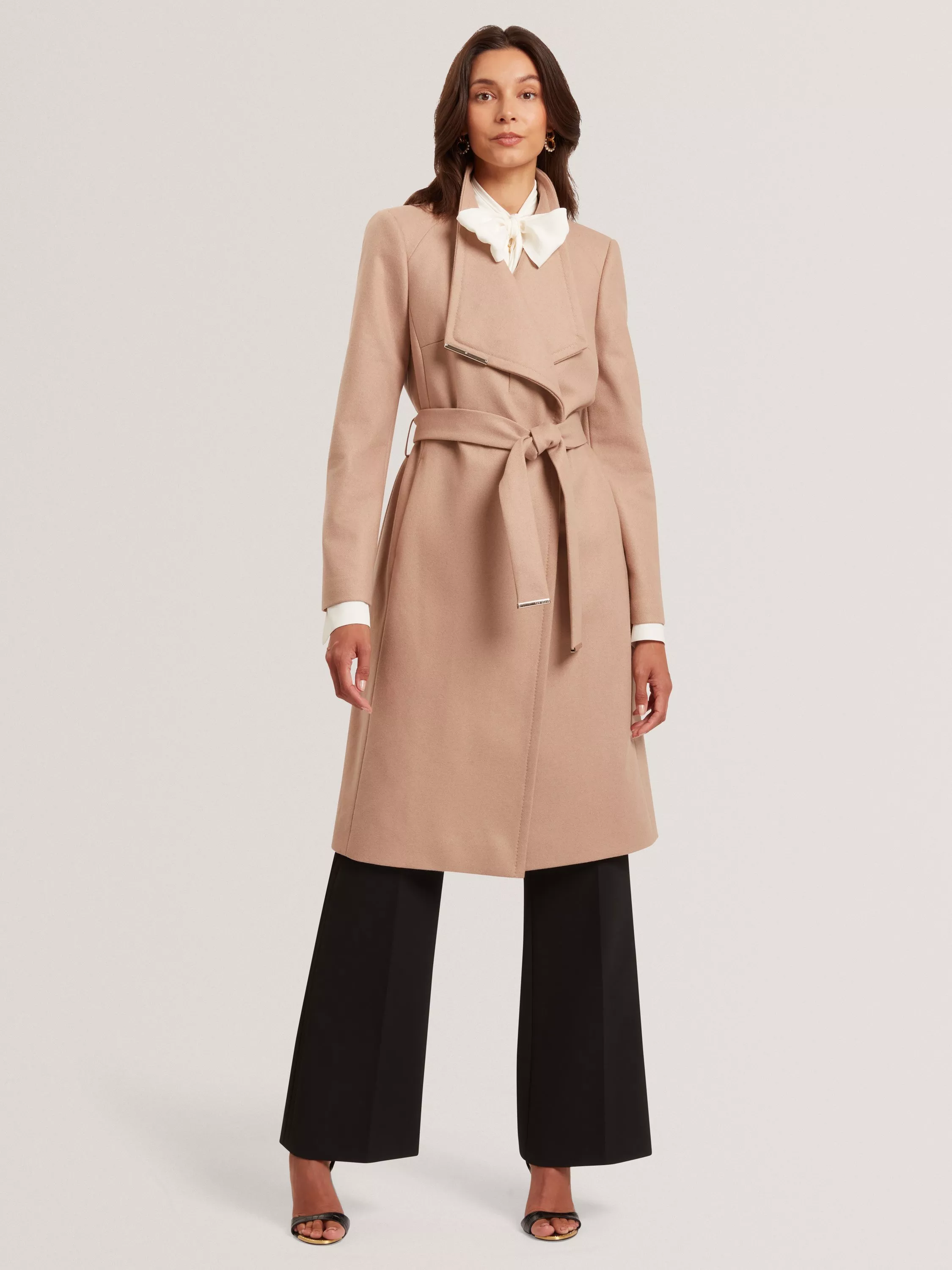 Wrap yourself in timeless elegance with our Mid-Length Belted Wool Wrap Coat. Crafted from a luxurious wool blend, this coat offers sophisticated warmth and a flattering silhouette.