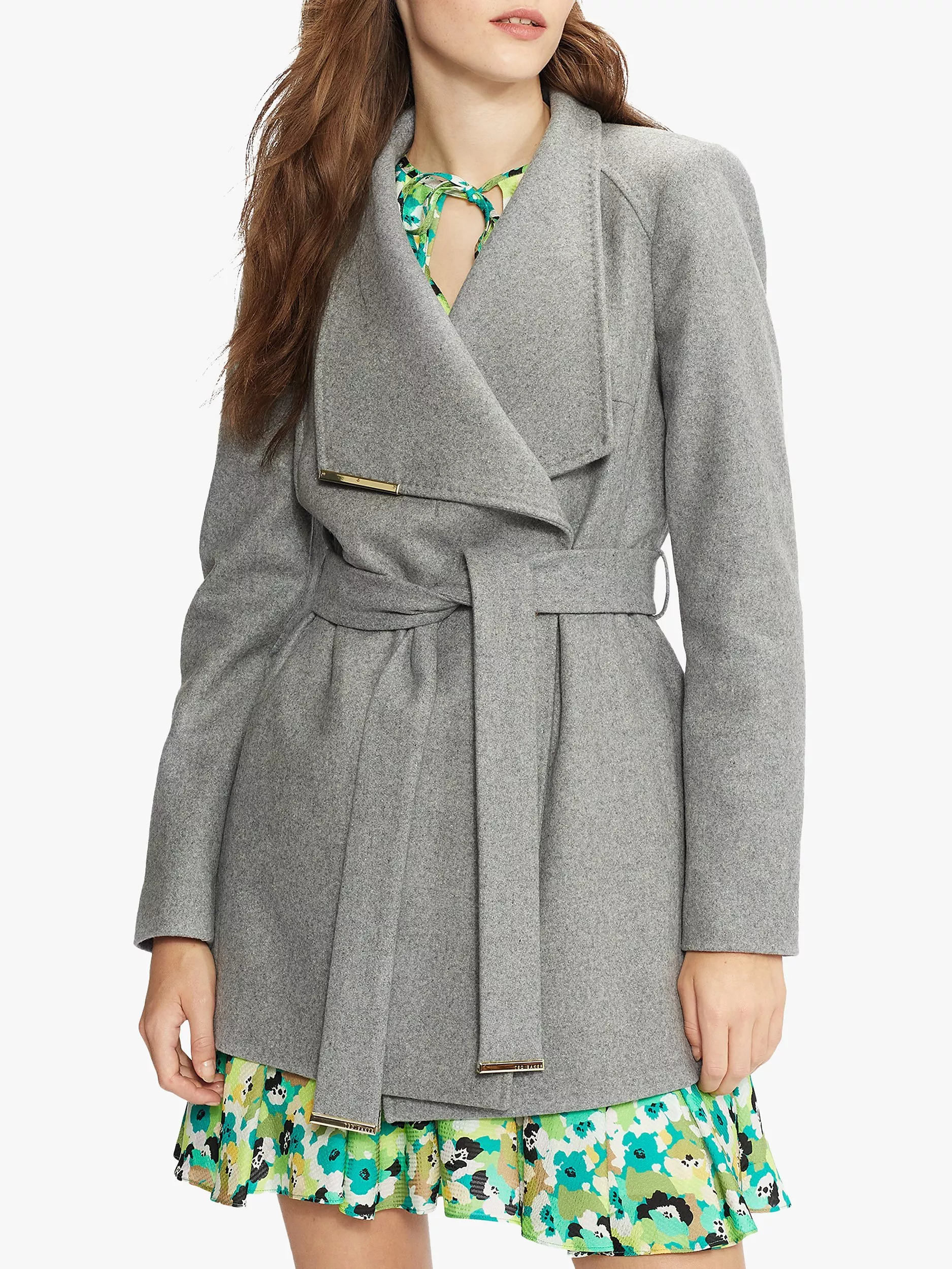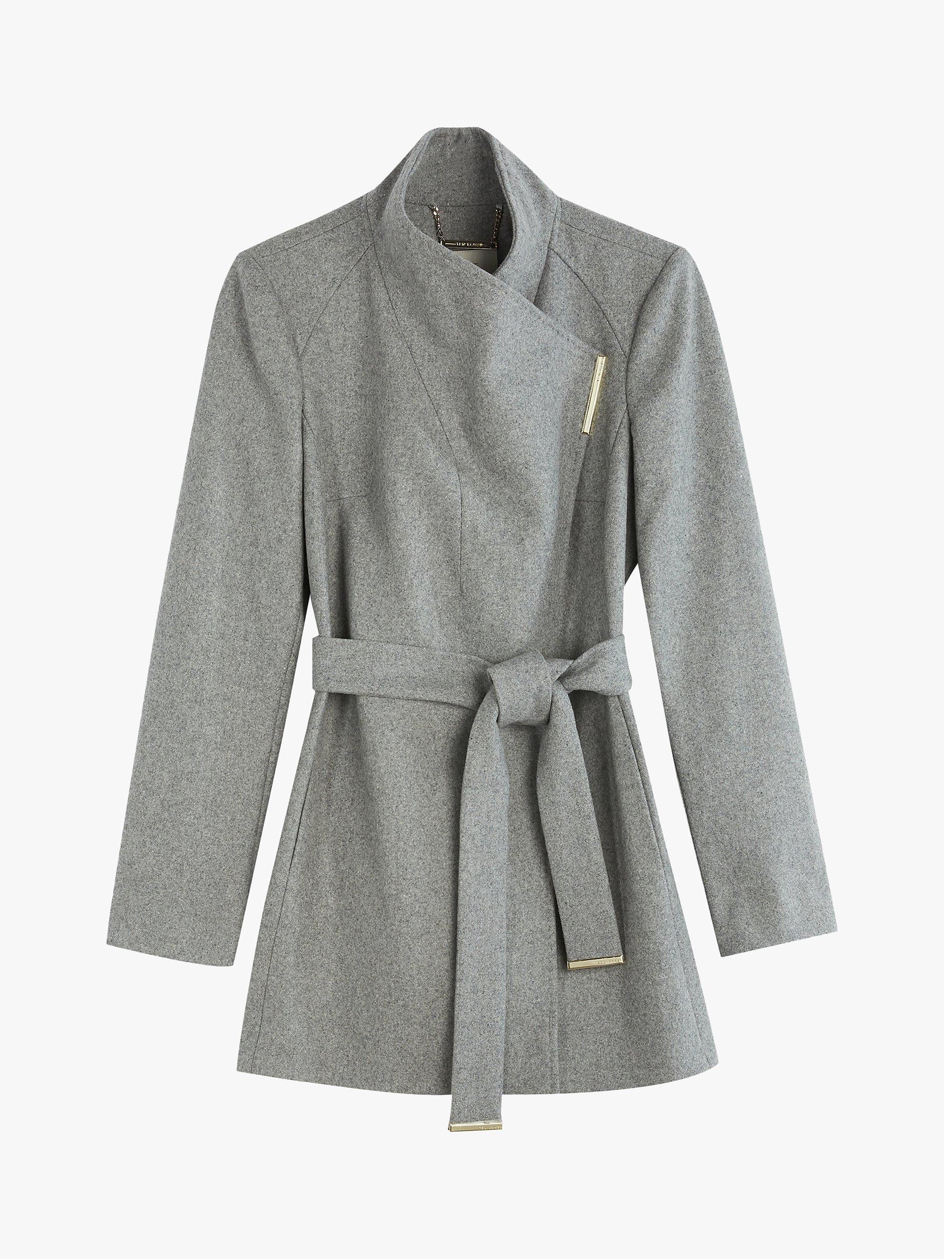 Designed with a refined wrap neckline, it created using a wool mix for a warming fit.