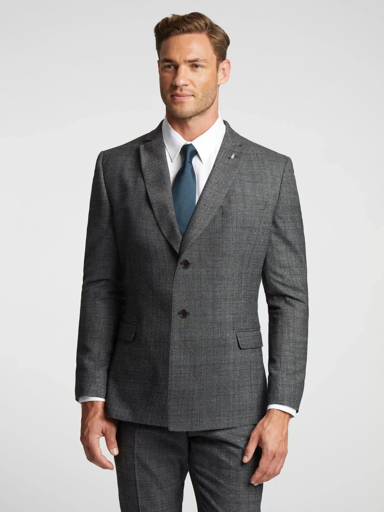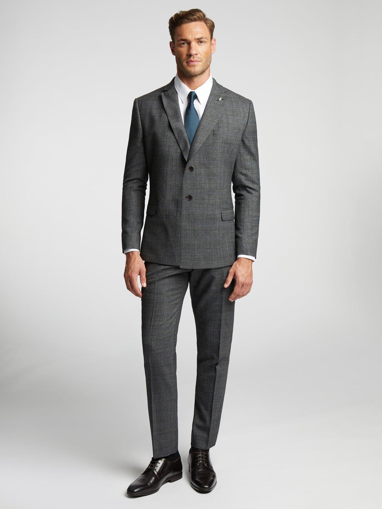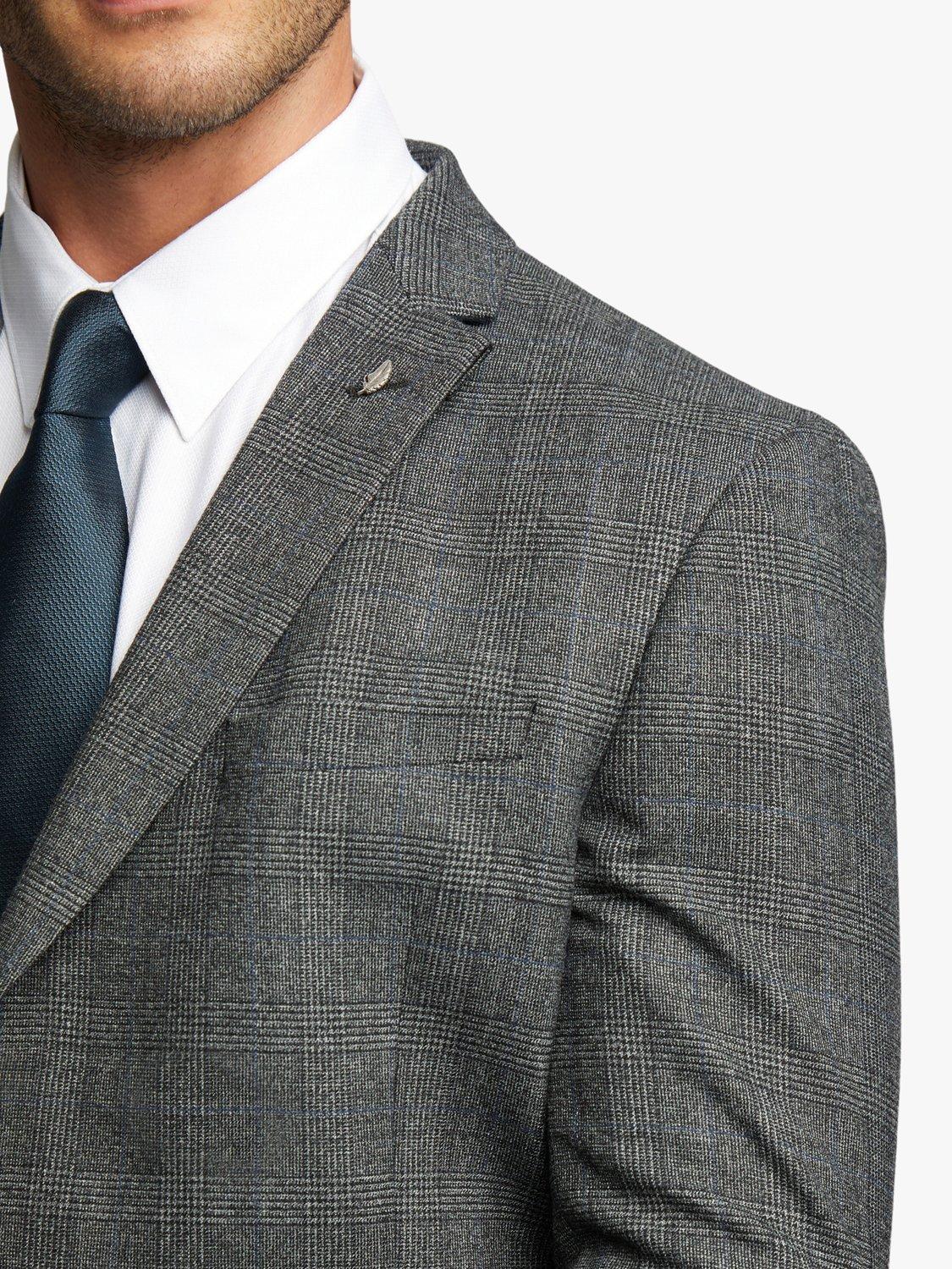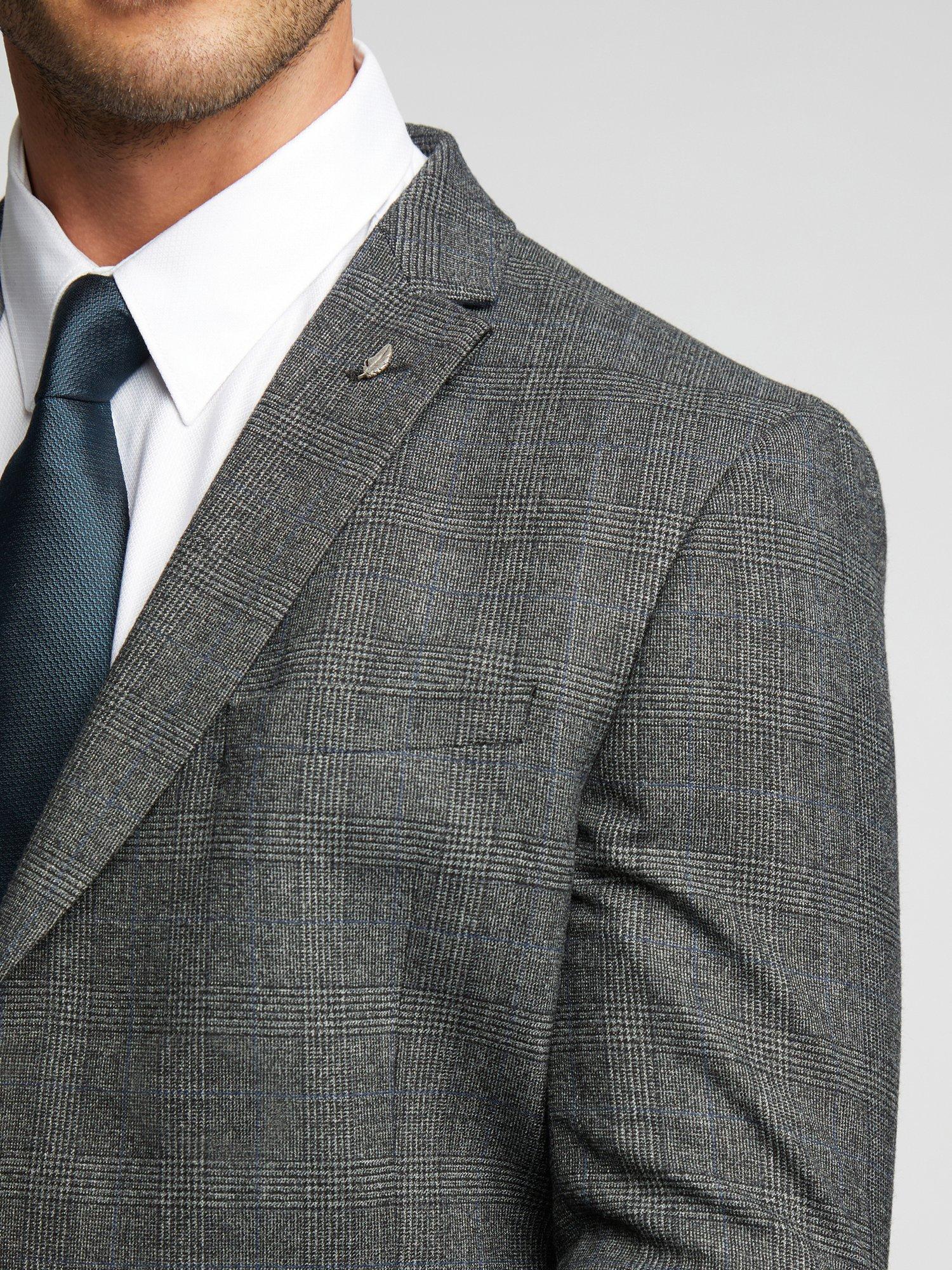 The Sagan suit jacket from Ted Baker is here to make your formalwear look sharper than ever. Crafted in a luxurious wool blend with a charcoal blue Prince of Wales check design, this suit jacket features a breathable slimming fit to make for a smart addition to your wardrobe. Complete with signature Ted Baker floral lining and a delicate leaf lapel pin, you can count on this contemporary brand for the best in comfort and elegance.