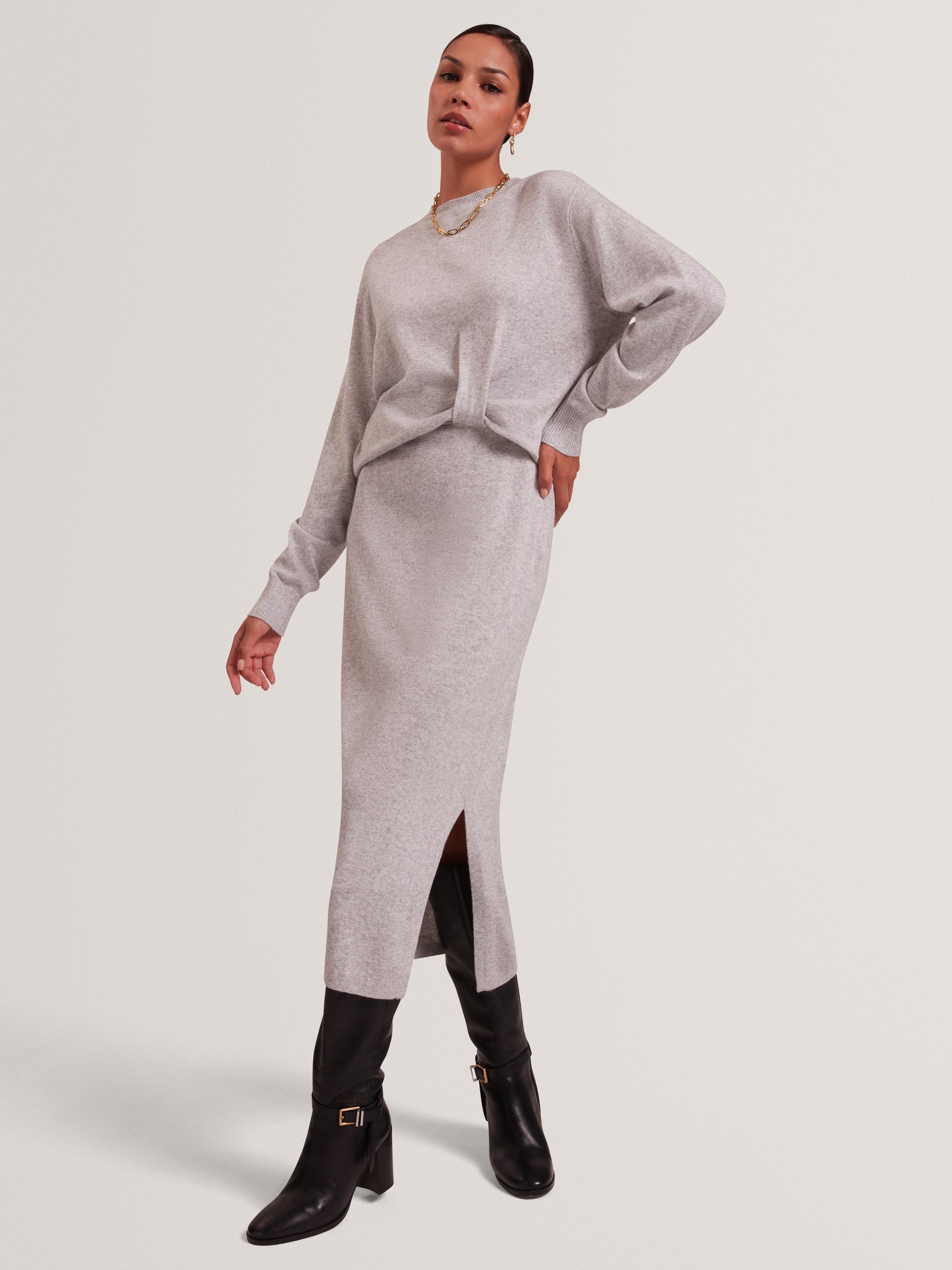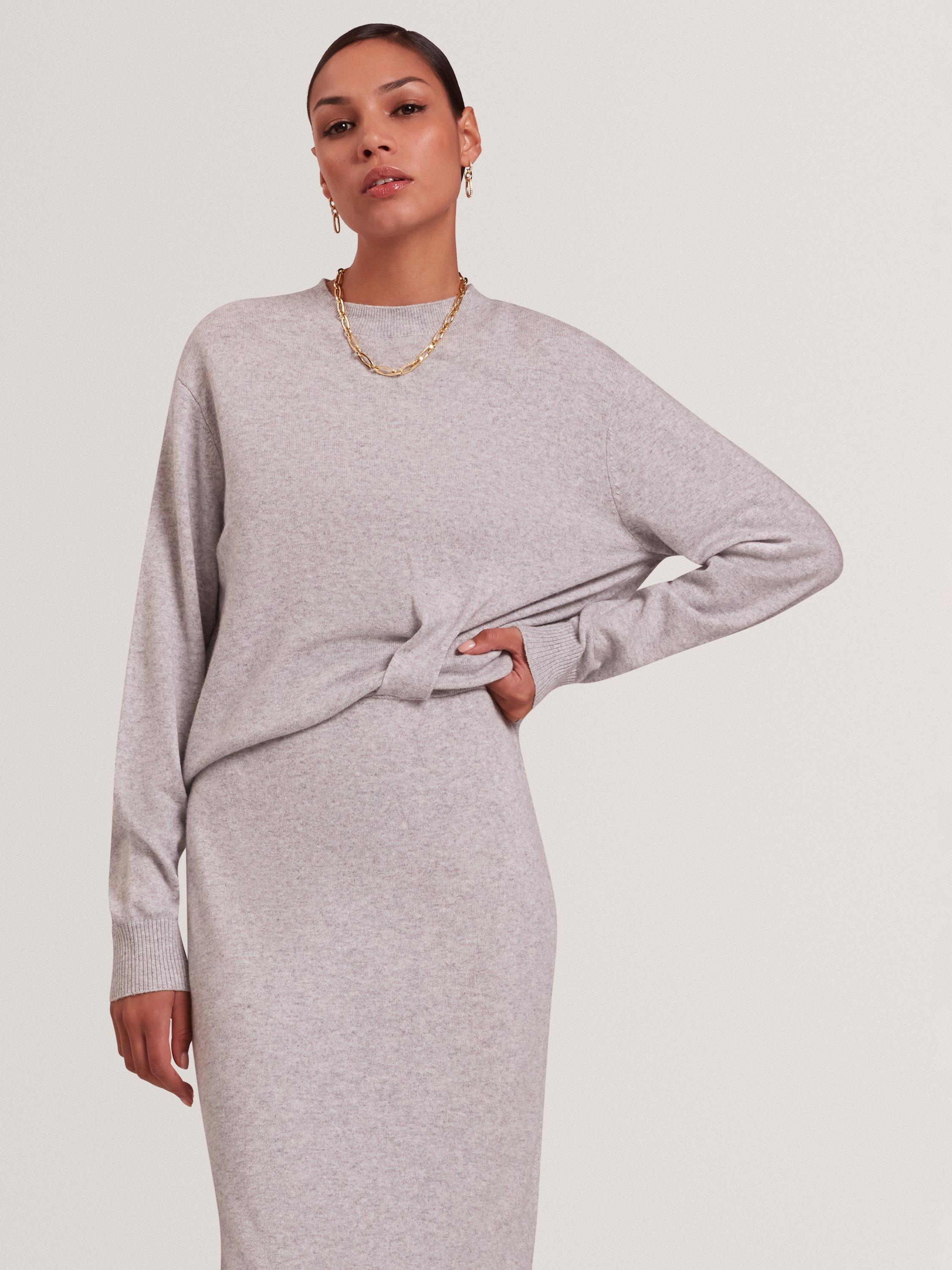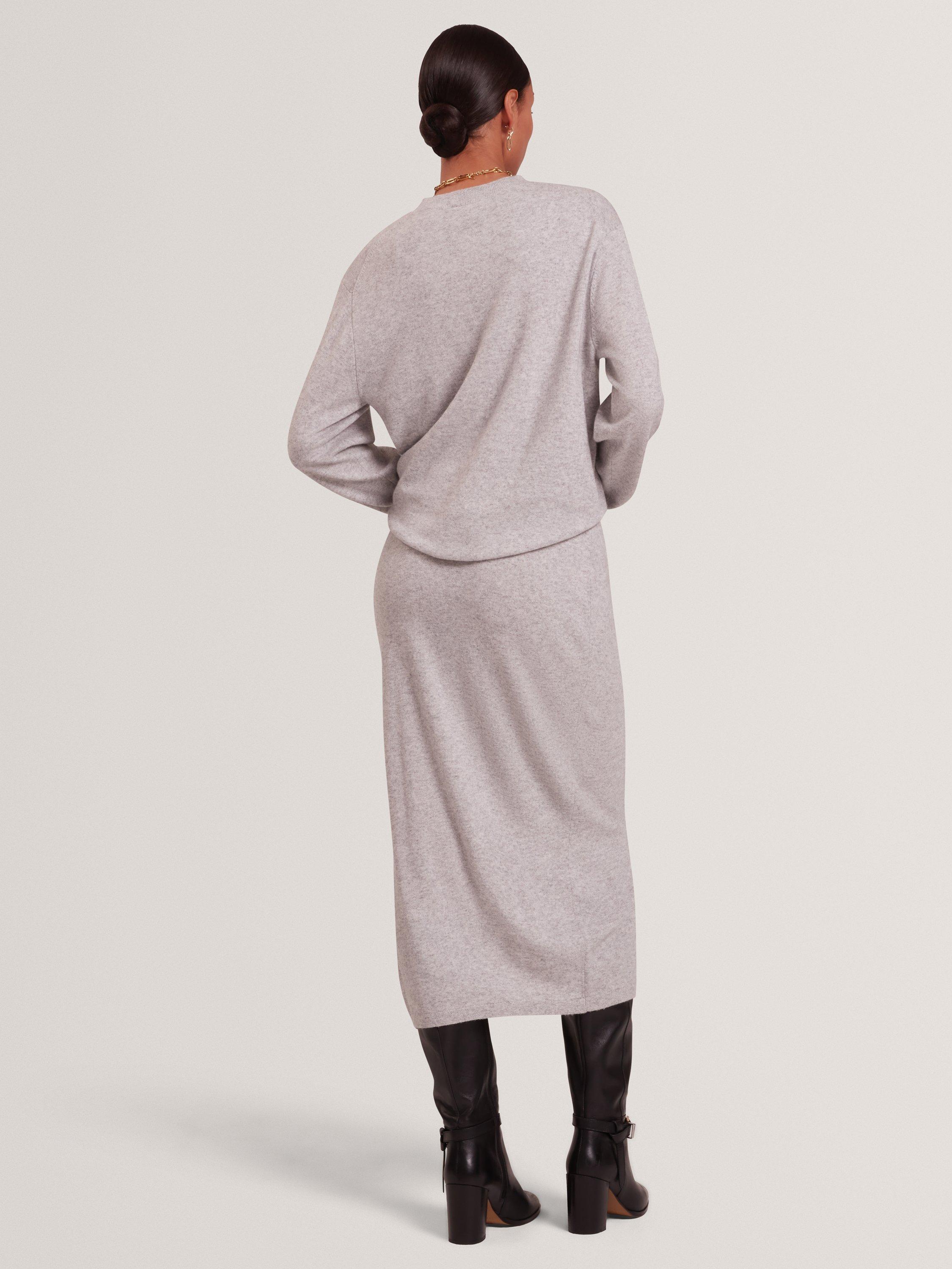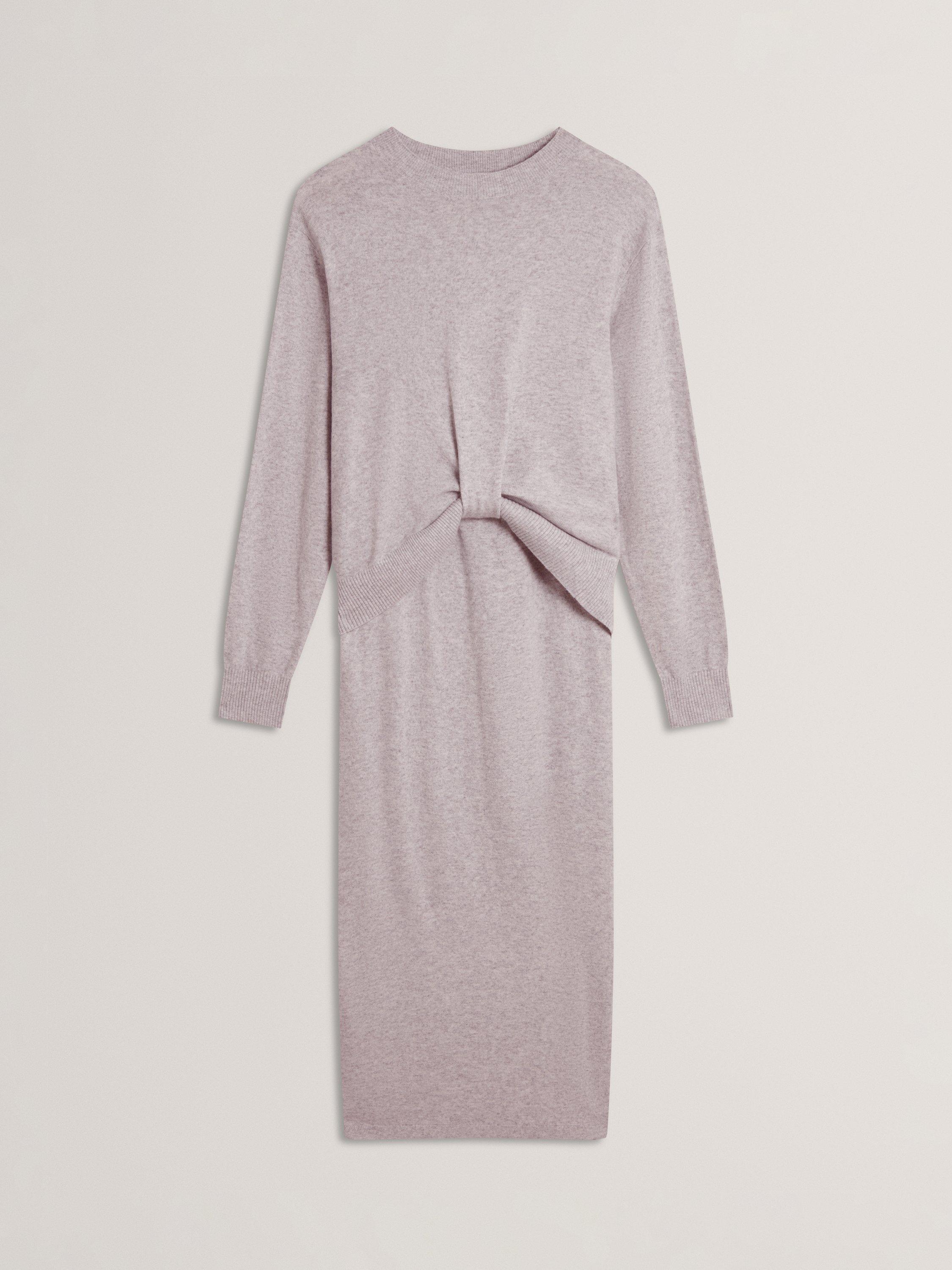 A wool blend midi jumper dress by Ted Baker, perfect for work or winter outings. Keeping you cosy and feeling soft, its clever design features a twist detail the the front, making this a go-to choice.