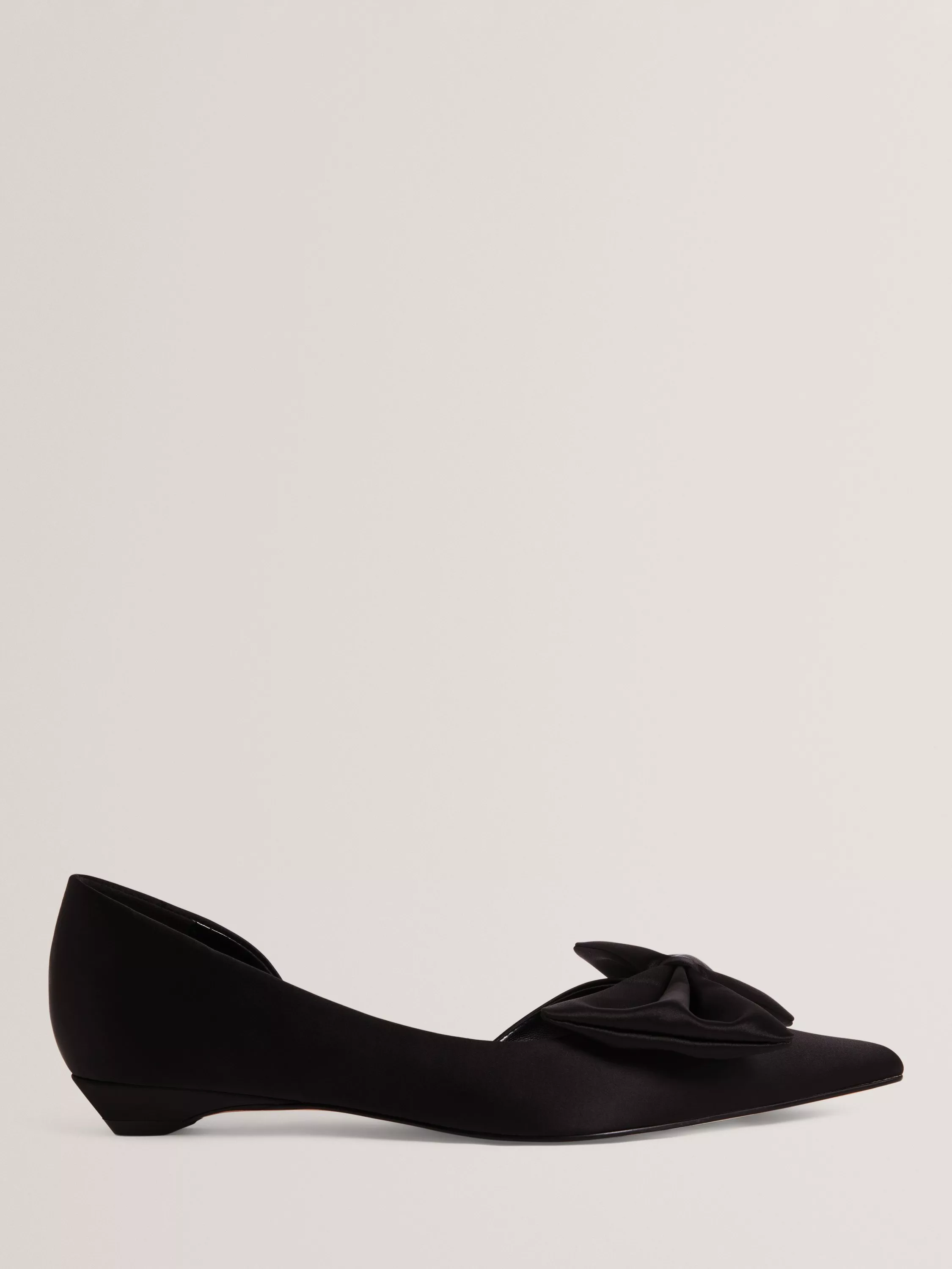 Satin pumps with bow detailed pointed toes offer a twist for work or parties. The slip-on design gives you convenience and all-day comfort, as well its comfortable flat heel.