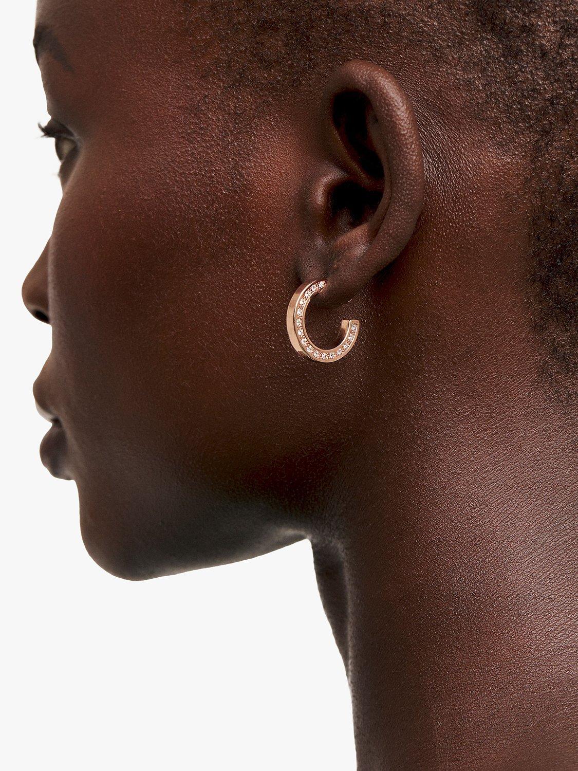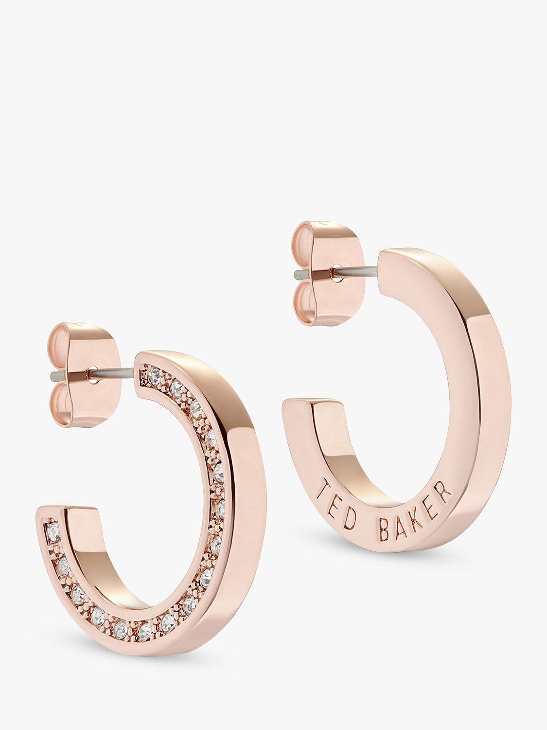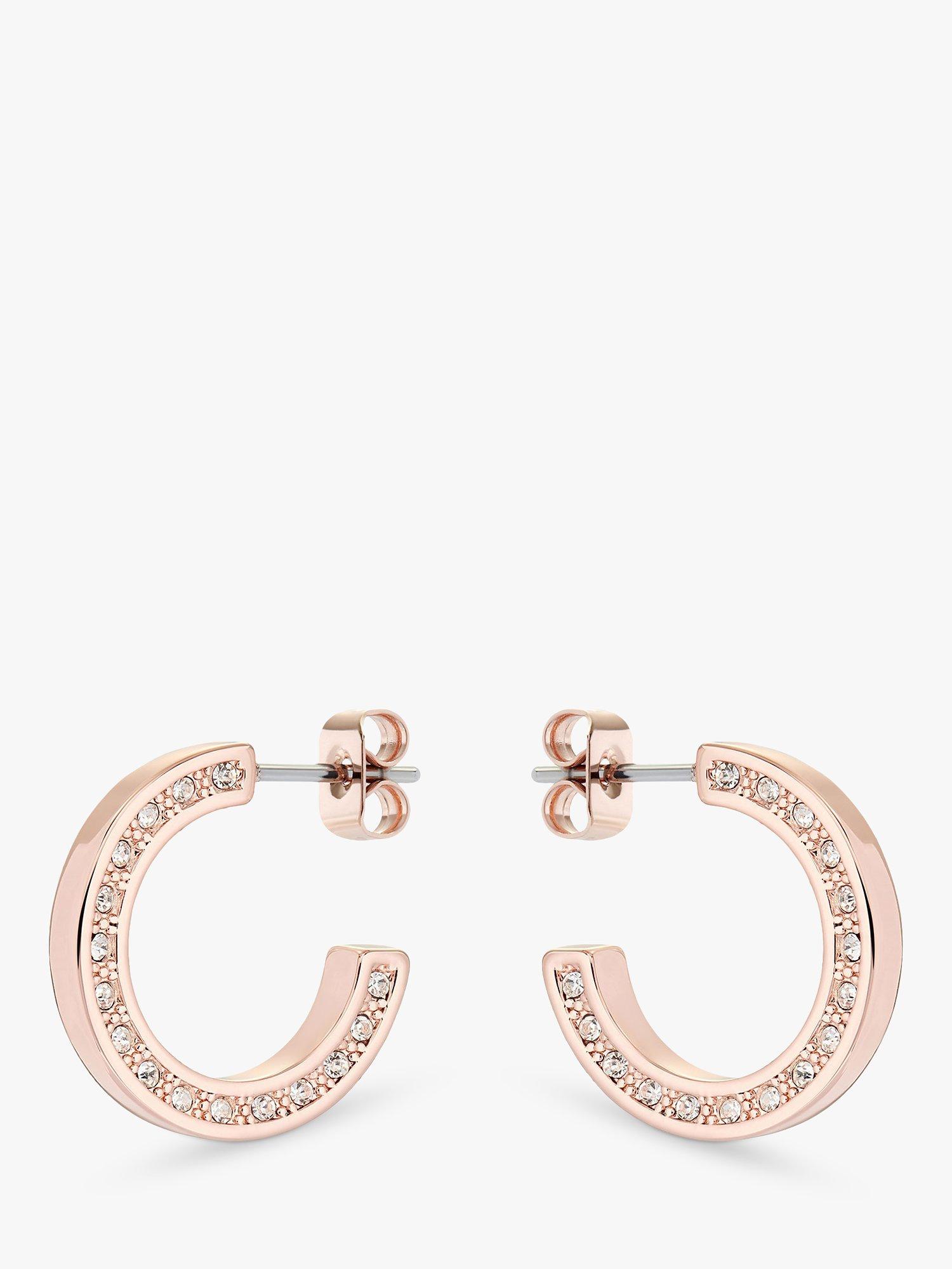 Ted Baker's SENATTA hoops are inlaid with crystals along one edge, so they sparkle subtly and are wearable for everything from office meetings to wedding outfits. Secured with post fittings, these earrings are for pierced ears only.