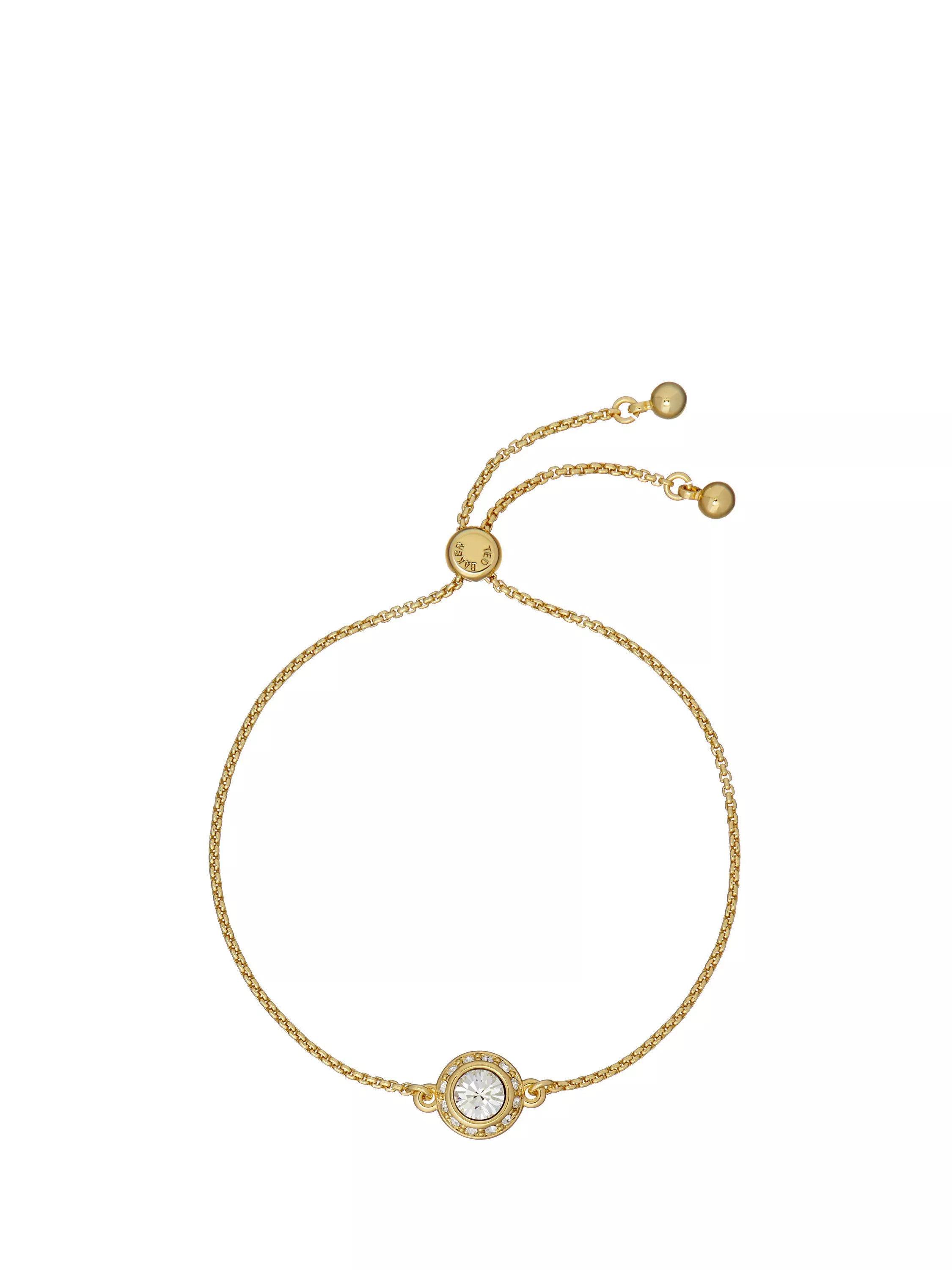 TED BAKER DESIGN: Elevate your daily style effortlessly with this exquisite solitaire crystal drawstring adjustable bracelet. It features a sparkling central crystal surrounded by a halo of tiny crystal accents. You can find the Ted Baker branding discreetly engraved on the reverse of the charm and the drawstring adjuster, adding a touch of glamour that seamlessly transitions from day to night.