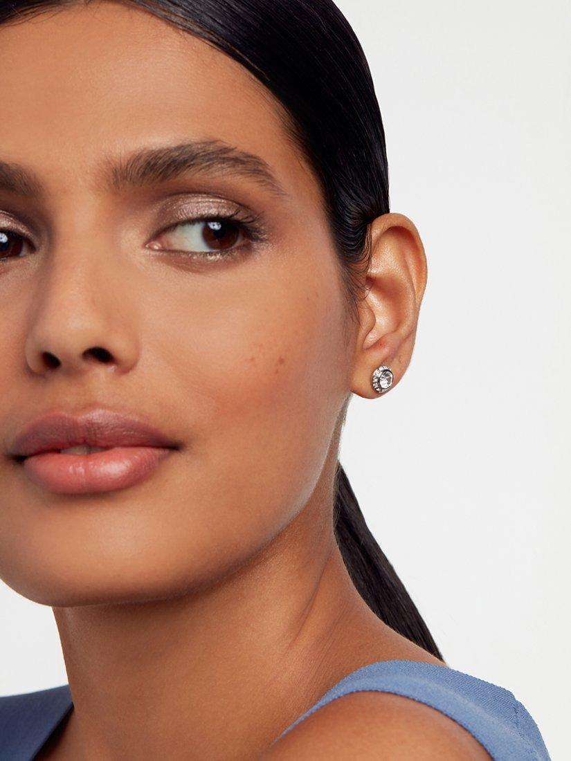 Elevate your daily style effortlessly with these exquisite solitaire crystal stud earrings. They feature a sparkling central crystal surrounded by a halo of tiny crystal accents. You can find the Ted Baker branding discreetly engraved on the back of the stud earring, adding a touch of glamour that seamlessly transitions from day to night.