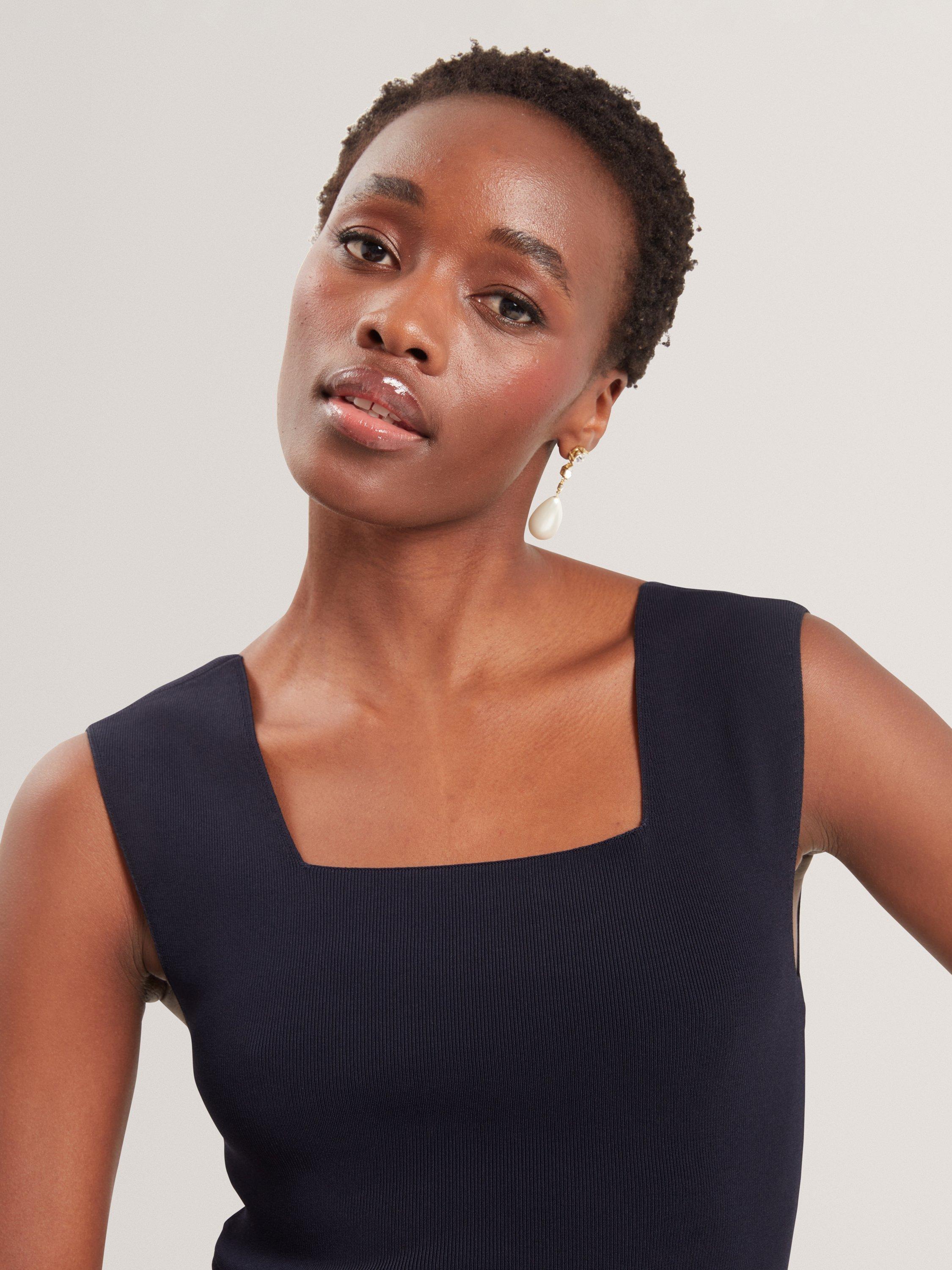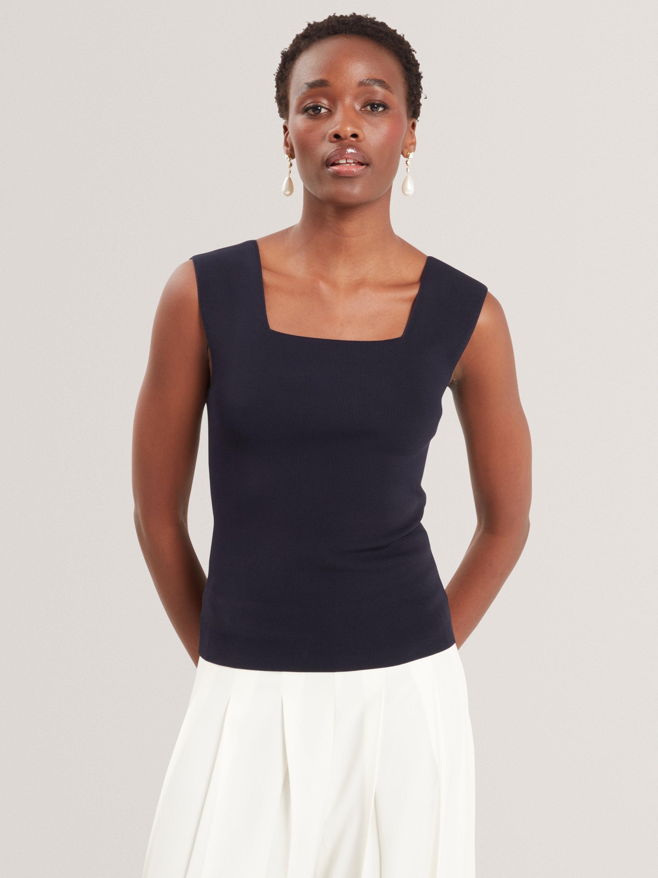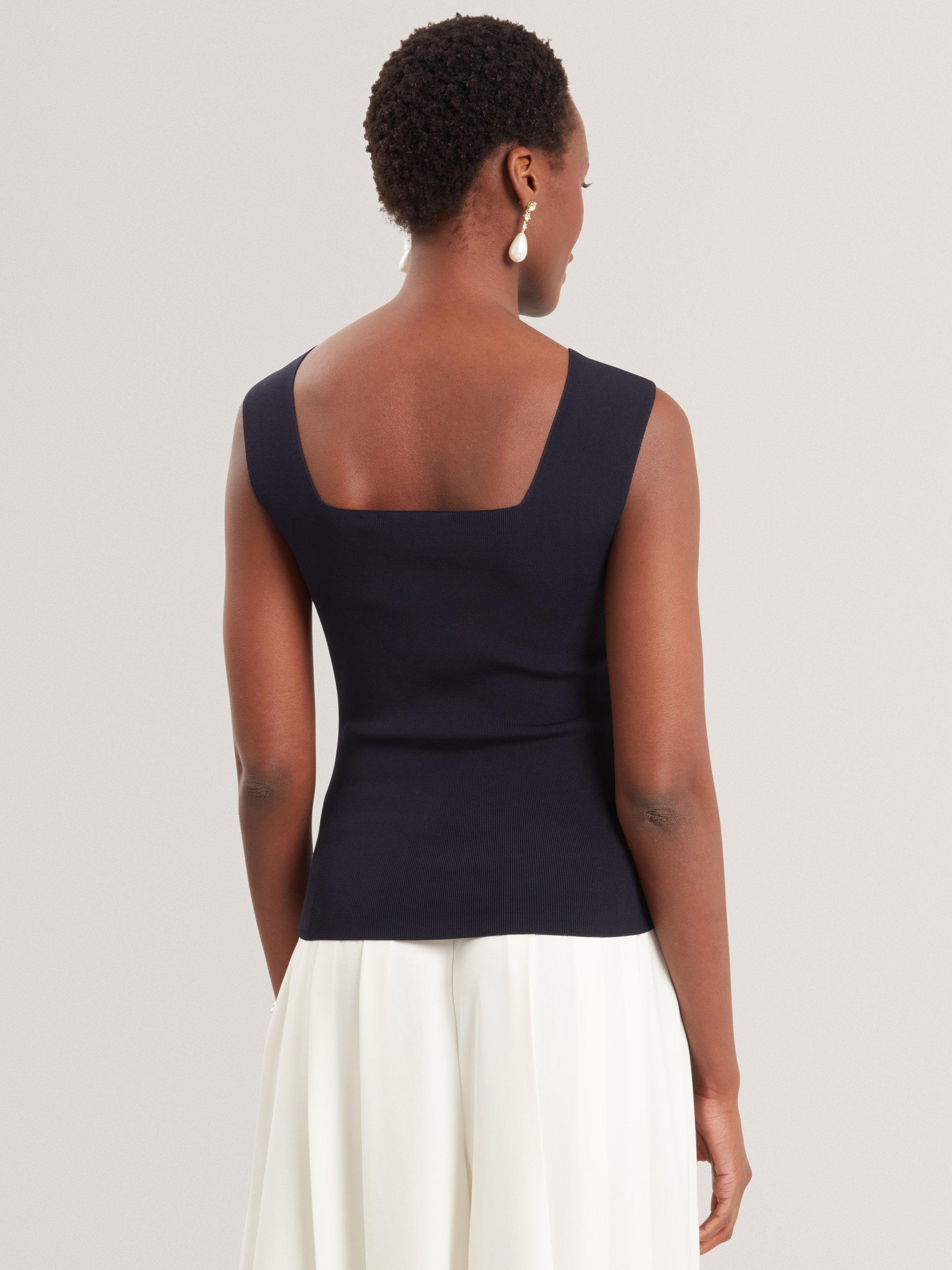 Ted Baker’s sleeveless square neck vest combines comfort with sharp style – a perfect choice for adding instant polish to your outfit, whether layered or worn solo.