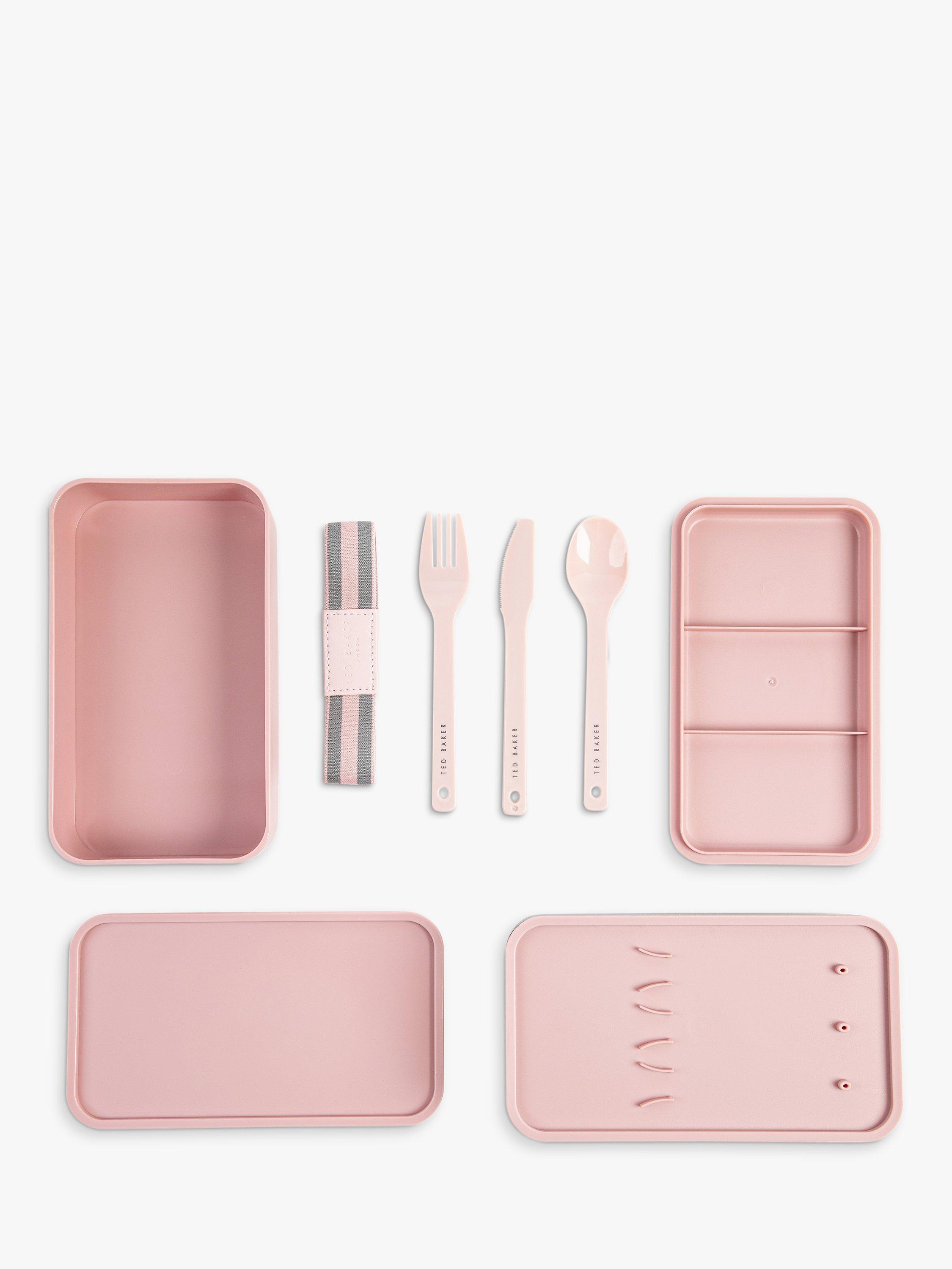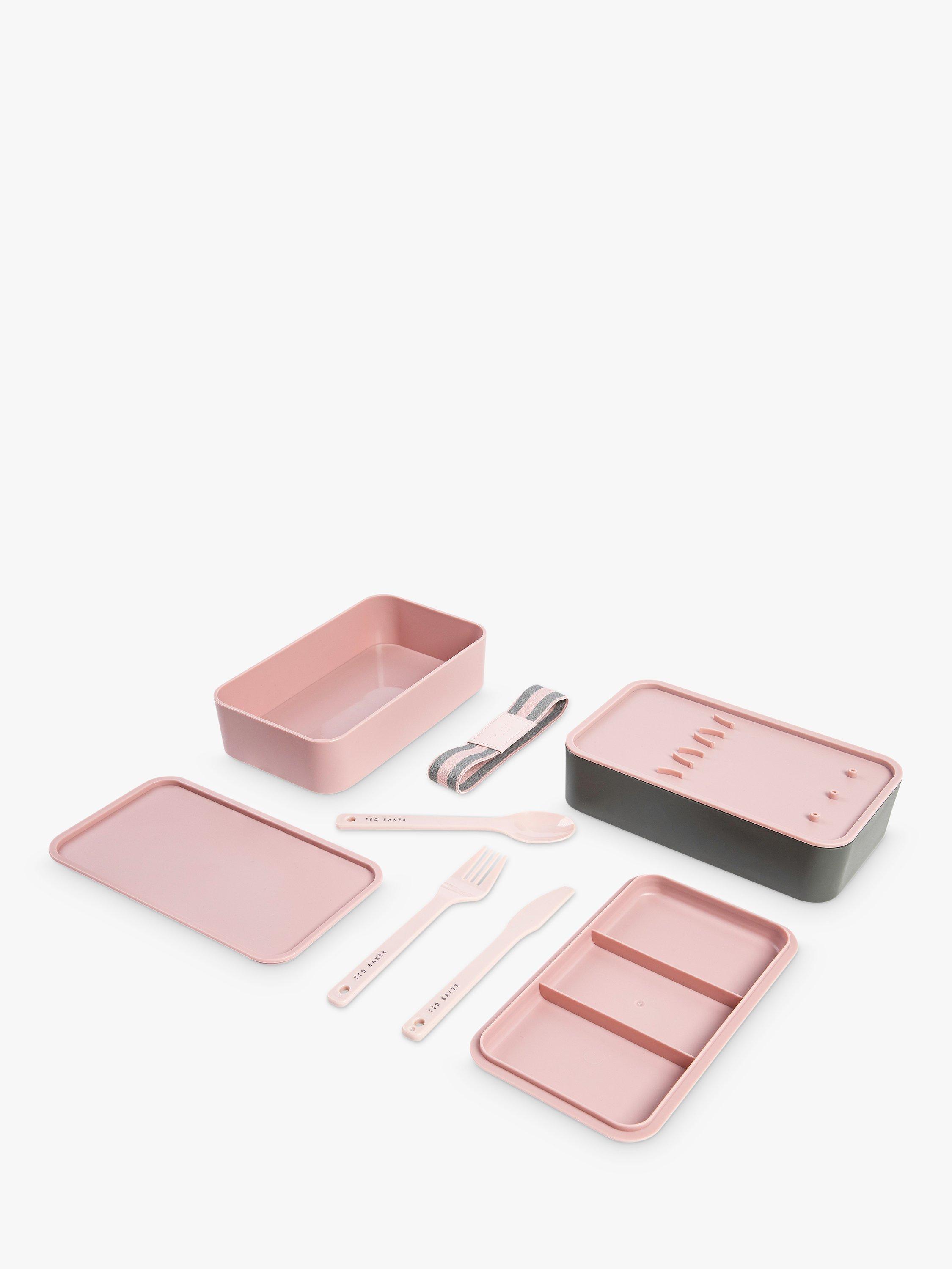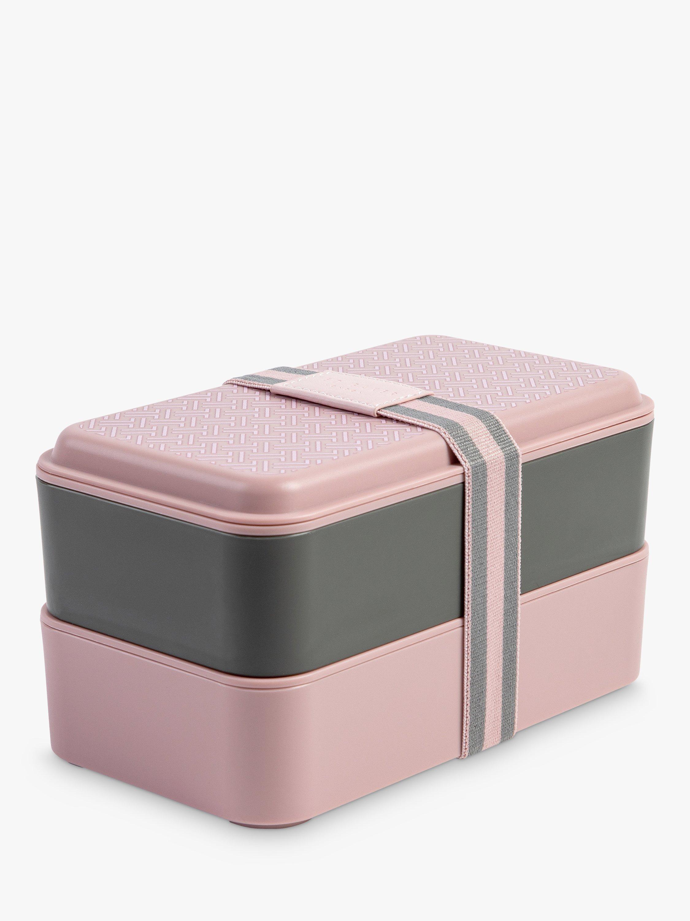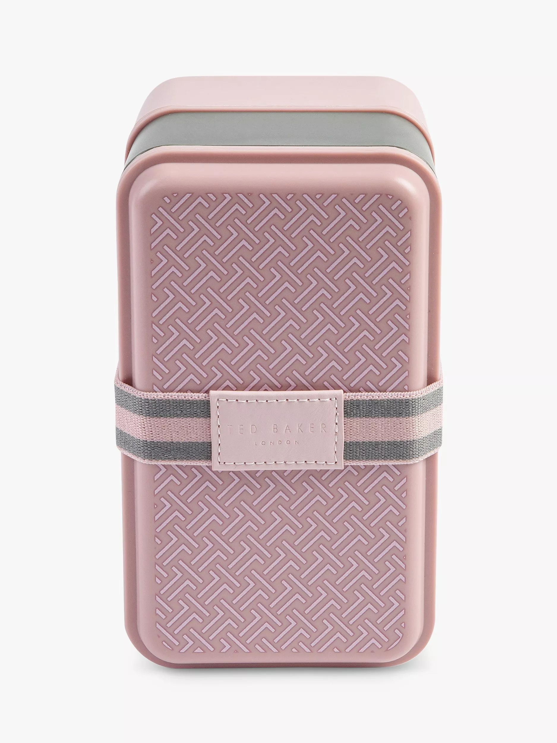 Make lunch an elegant affair with this Stackable Lunch Box from Ted Baker. With a stylish Dusky Pink and grey design, the detachable two-tier stack includes a plastic knife, fork and spoon all branded with the Ted Baker logo.