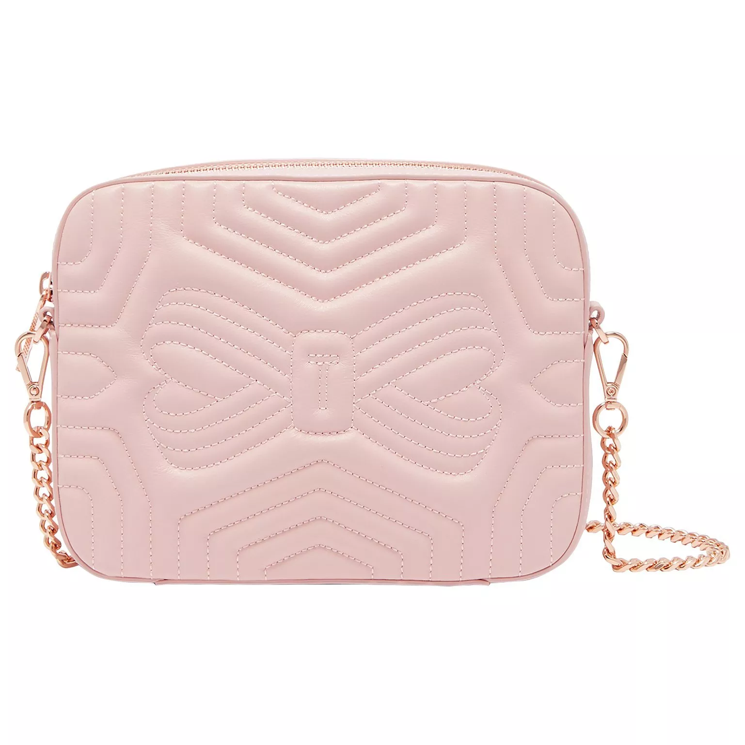 The chain strap is great for hands-free convenience but can also be detached for a clutch effect. It is completed with signature Ted Baker branding.