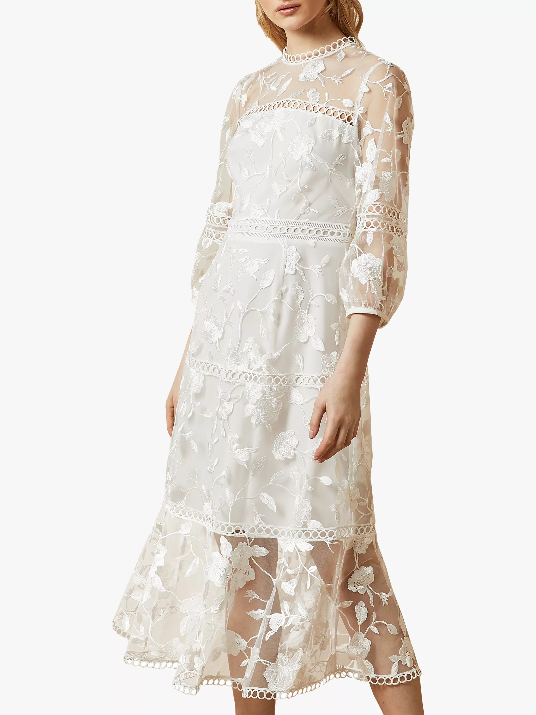 Ted BakerTabii Tiered Lace Midi Dress, Natural Ivory