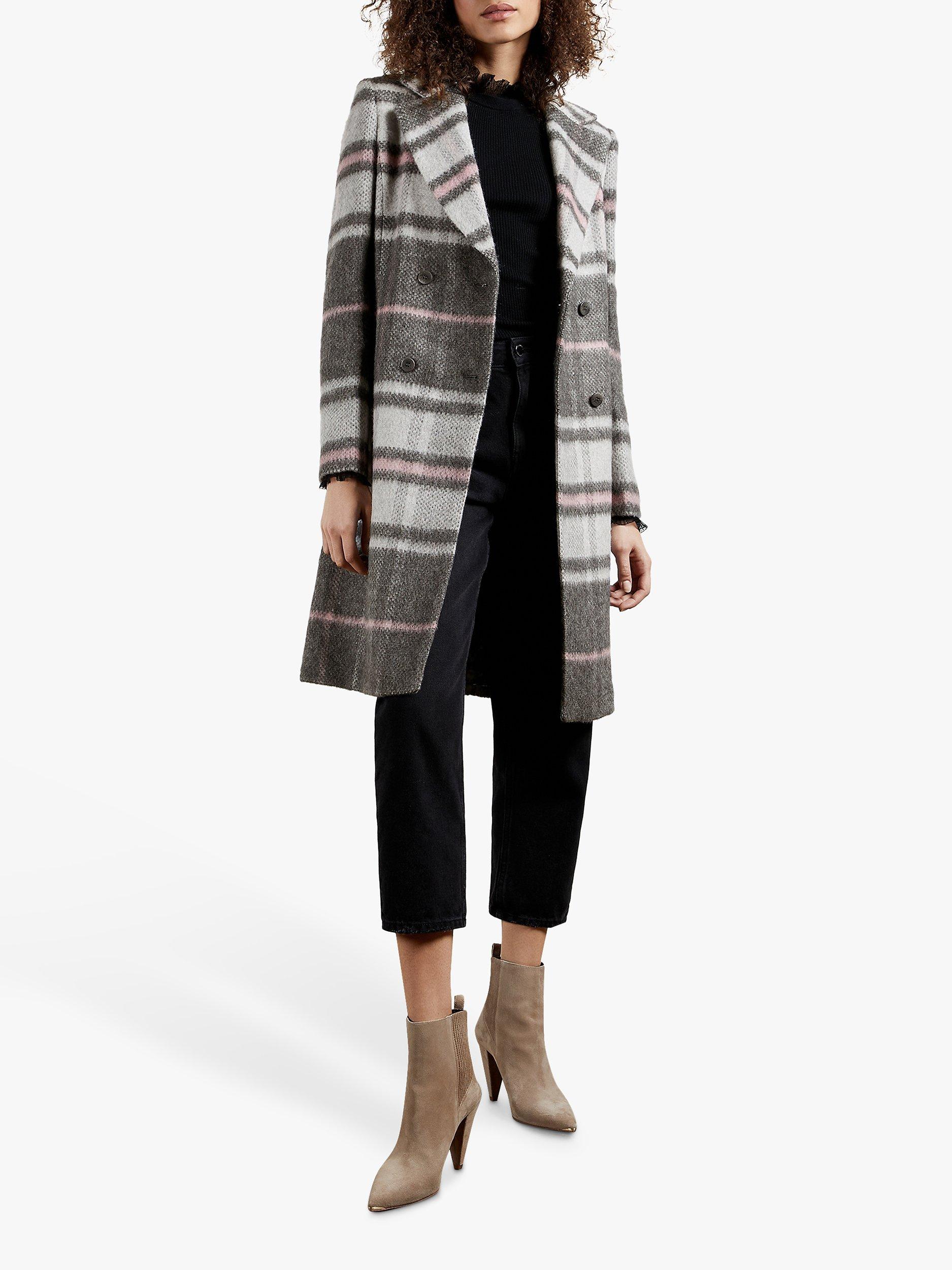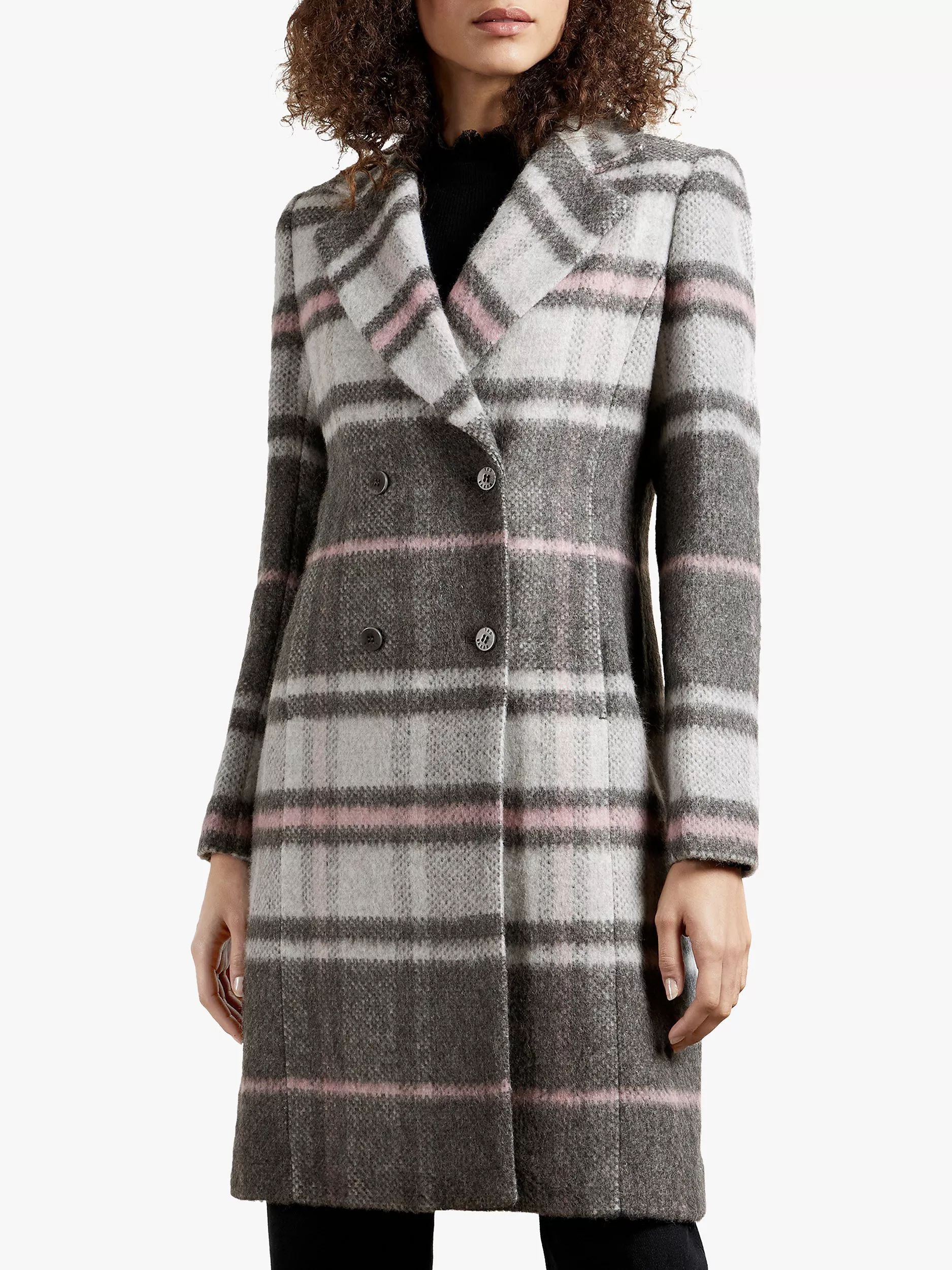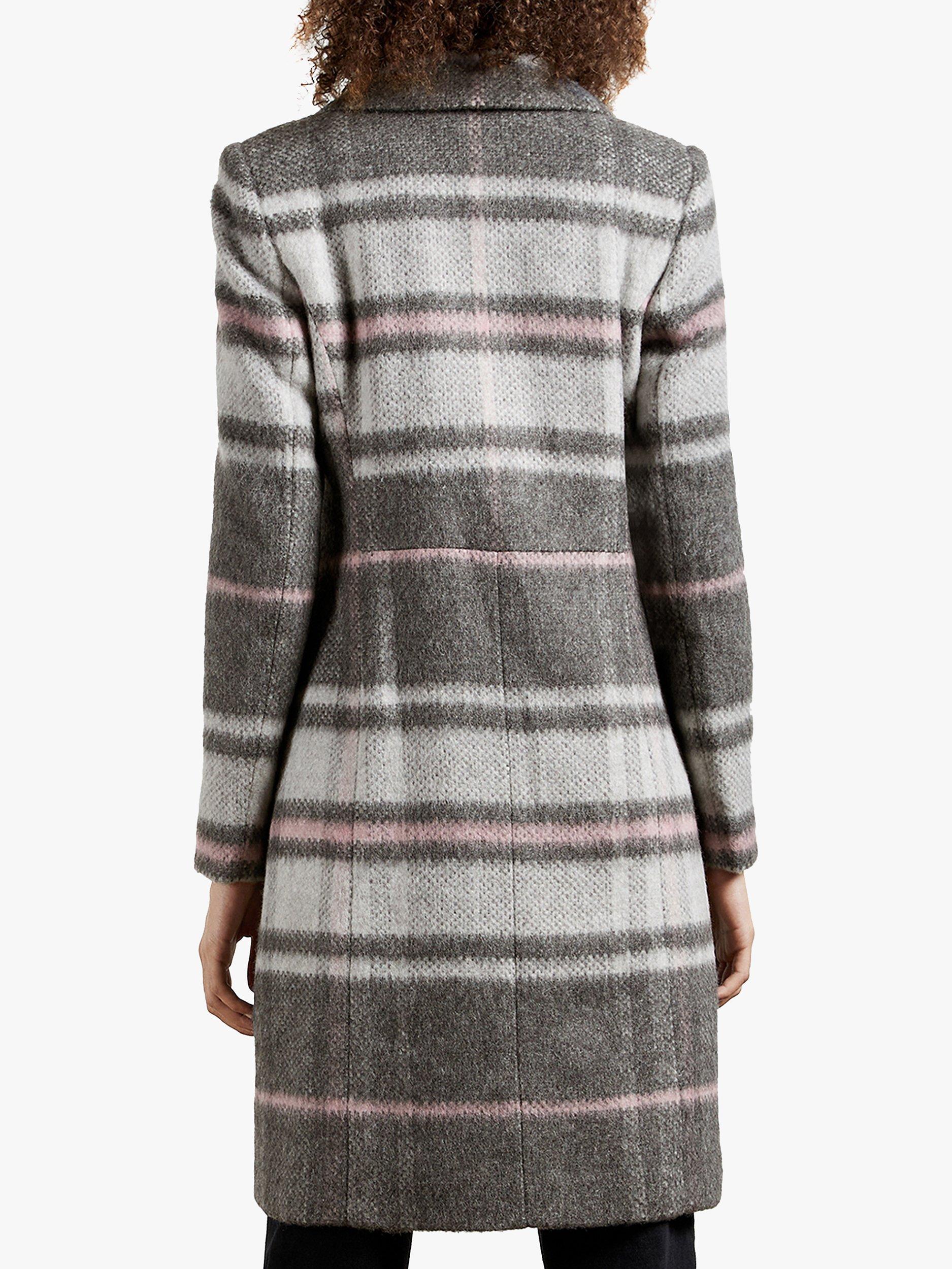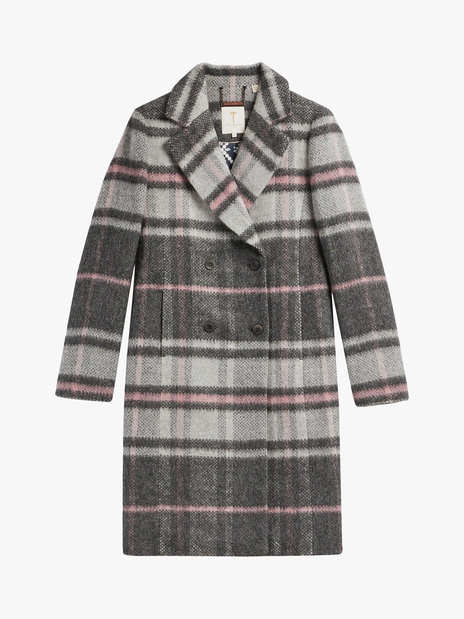 Tailored to a sharp finish, this jacket from Ted Baker falls just to the knee in a mid-length cut. Collared for a confident feel and with a simple check print in hues of pink, white and grey, it's made from a luxury wool blend that's sure to see you through season after season.