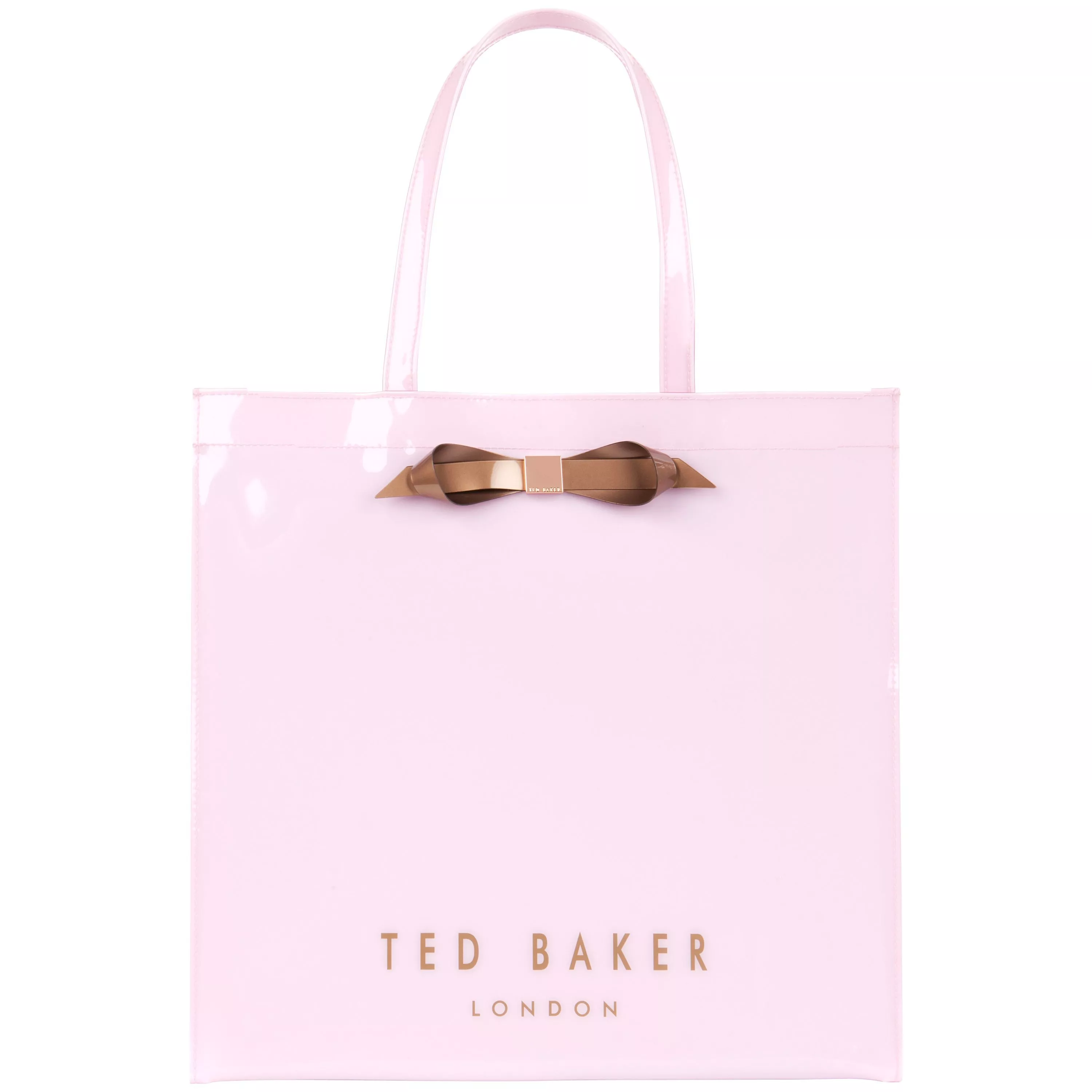 A gorgeously glossy shopper which features Ted Baker's iconic bow embellishment with subtle branding. The slim shoulder straps and open top make the bag quick and easy to use.