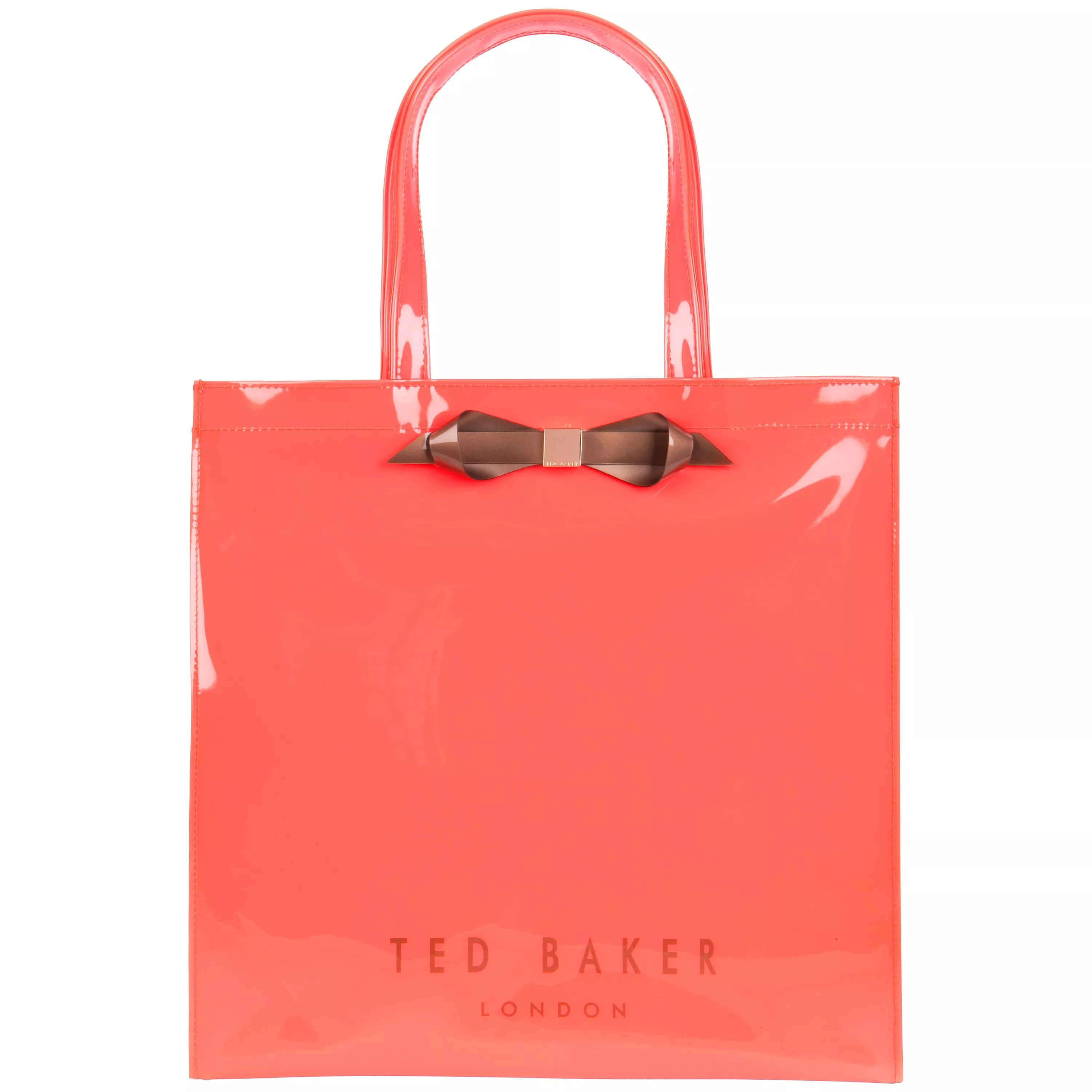 A gorgeously glossy shopper which features Ted Baker's iconic bow embellishment with subtle branding. The slim shoulder straps and open top make the bag quick and easy to use.
