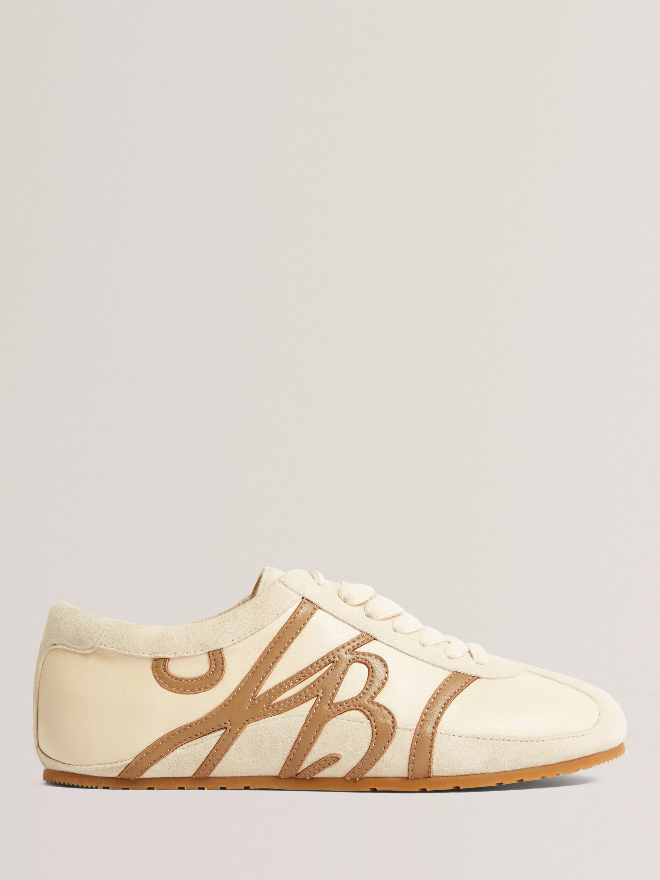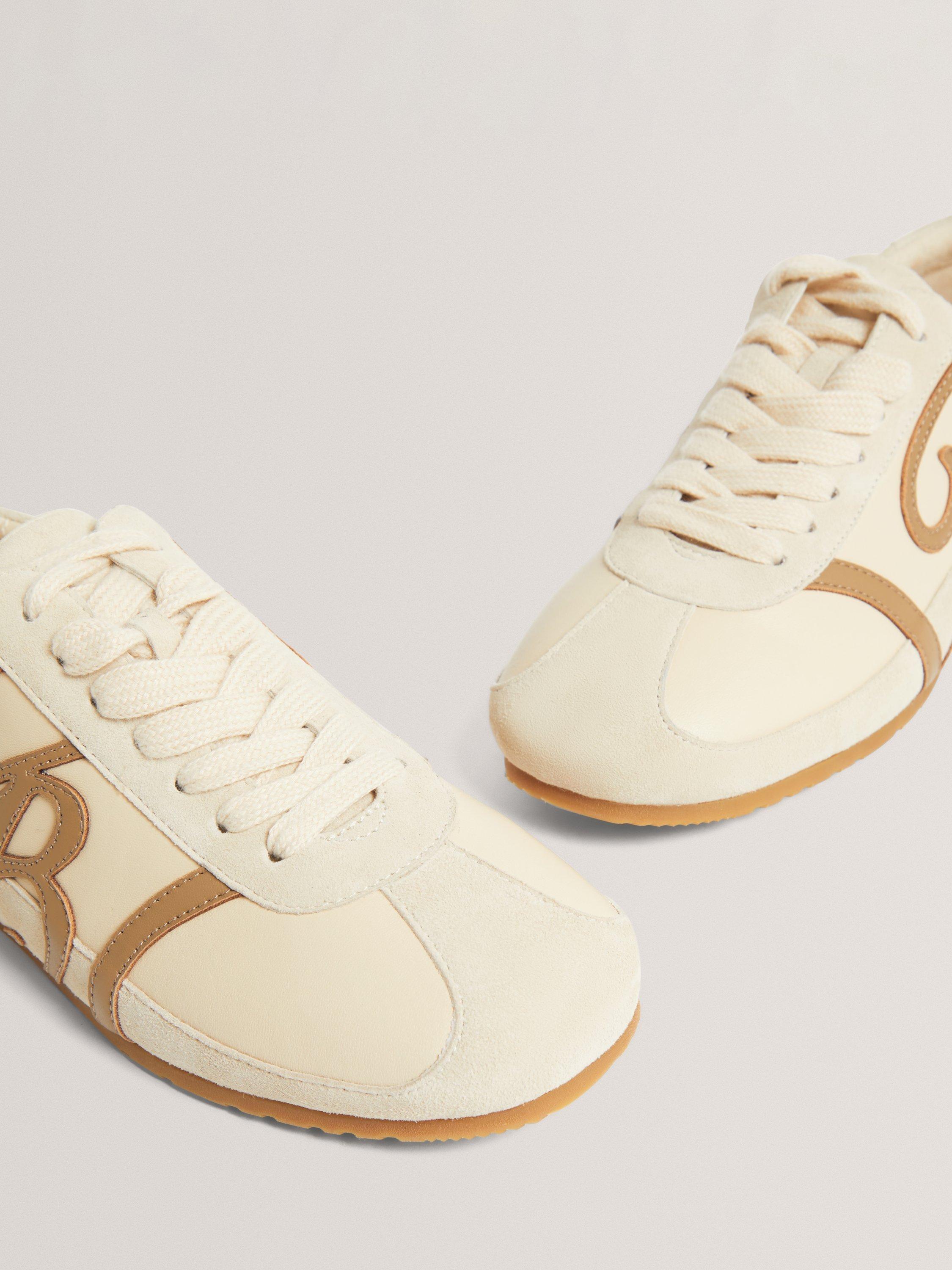 Ted Baker trainers crafted from smooth leather with suede accents. The round toe and lace-up front keep you comfortable all day, while contrast logo details to the sides add a signature touch to your casual looks.