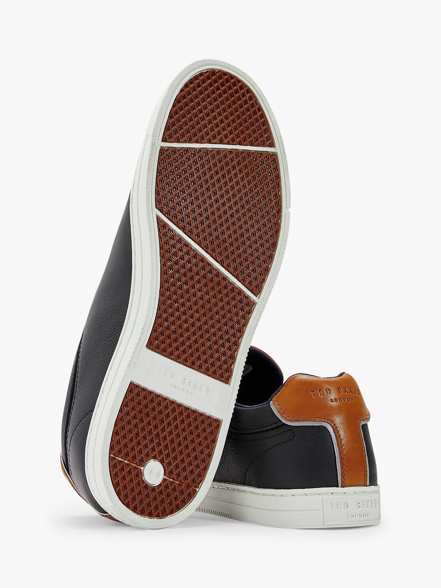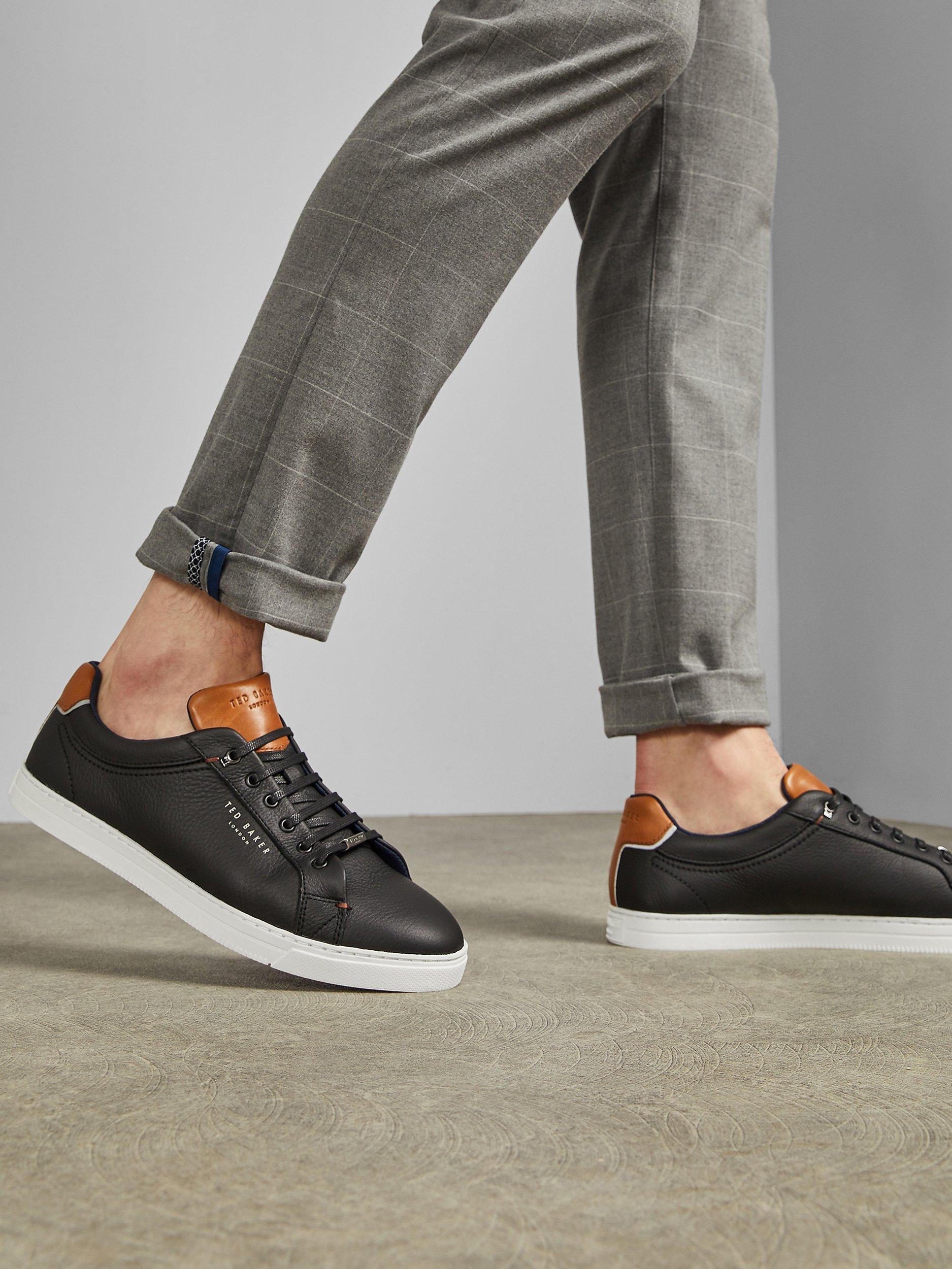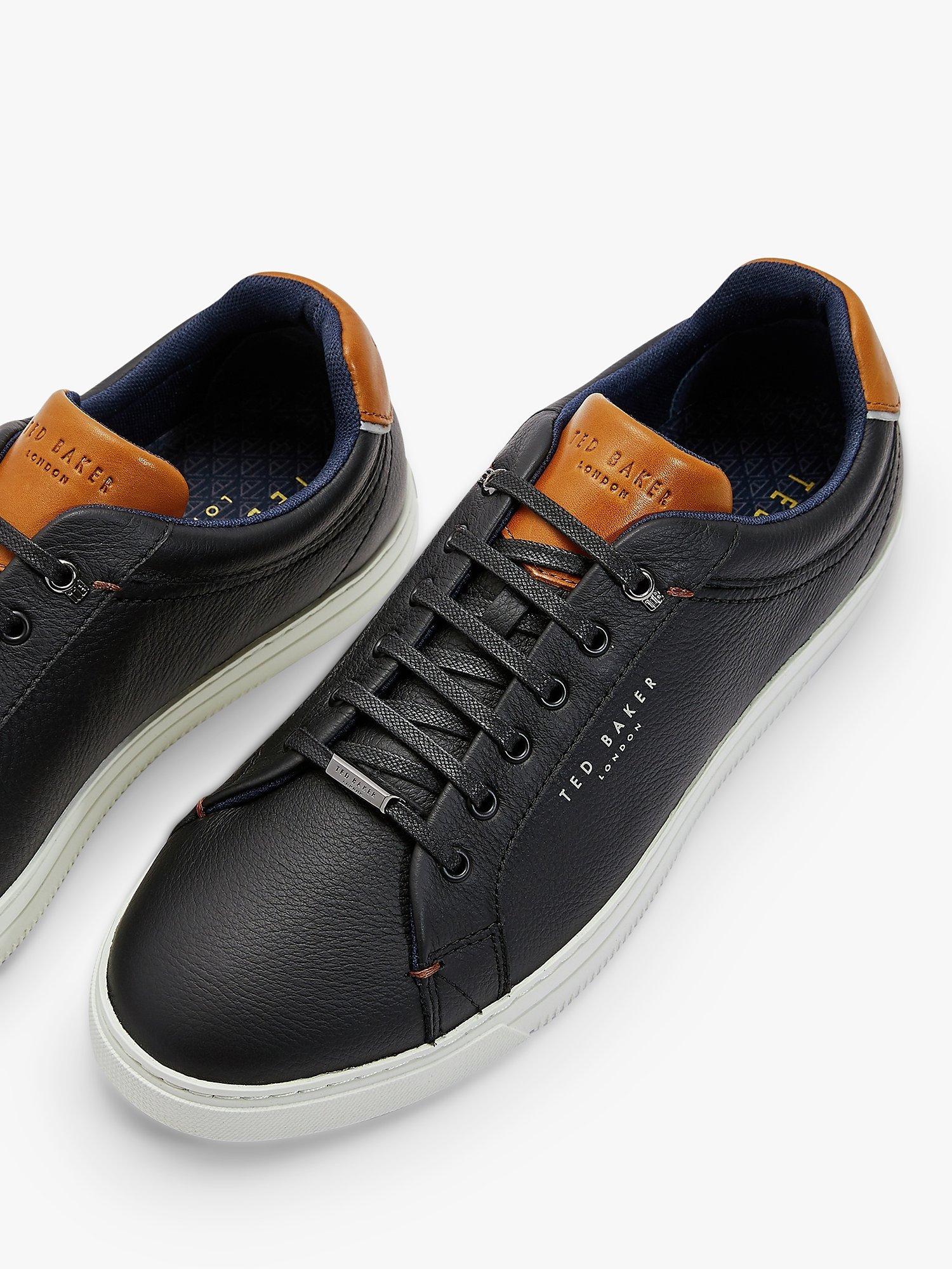 These Ted Baker Thwally trainers add a comfortable and contemporary option into your assortment. Crafted from soft leather with a lace-up finish, these come complete with branding that features on the quarter, tongue and heel. Completing the look is contrasting colour block details.