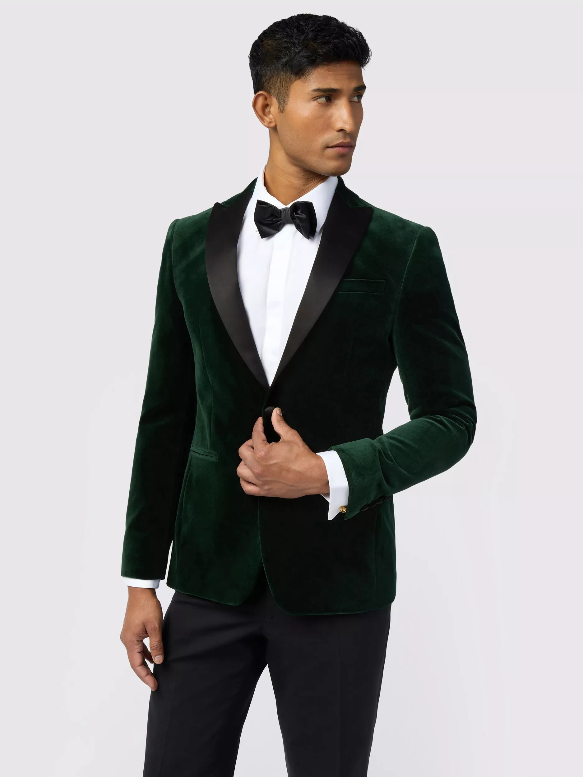 Made from pure cotton velvet, this velvet jacket delivers a luxurious feel with a smooth texture. The Ted Baker slim fit provides structure through the shoulders and chest, while the satin peak lapel and satin buttons provide elegant contrast detailing. The jacket is lined with Ted Baker’s leaf print lining. Pair with black tuxedo trousers for a wedding or black tie event.