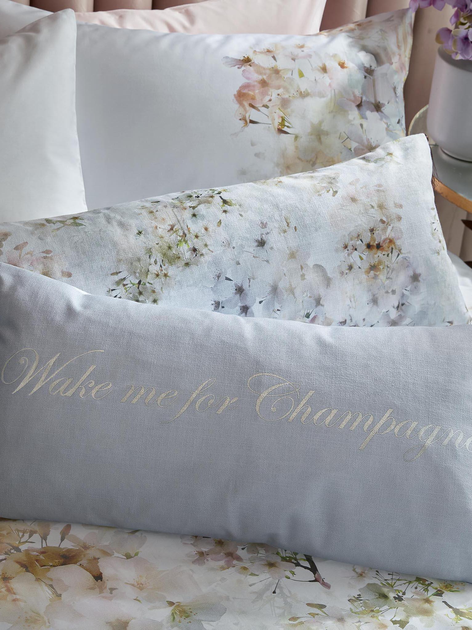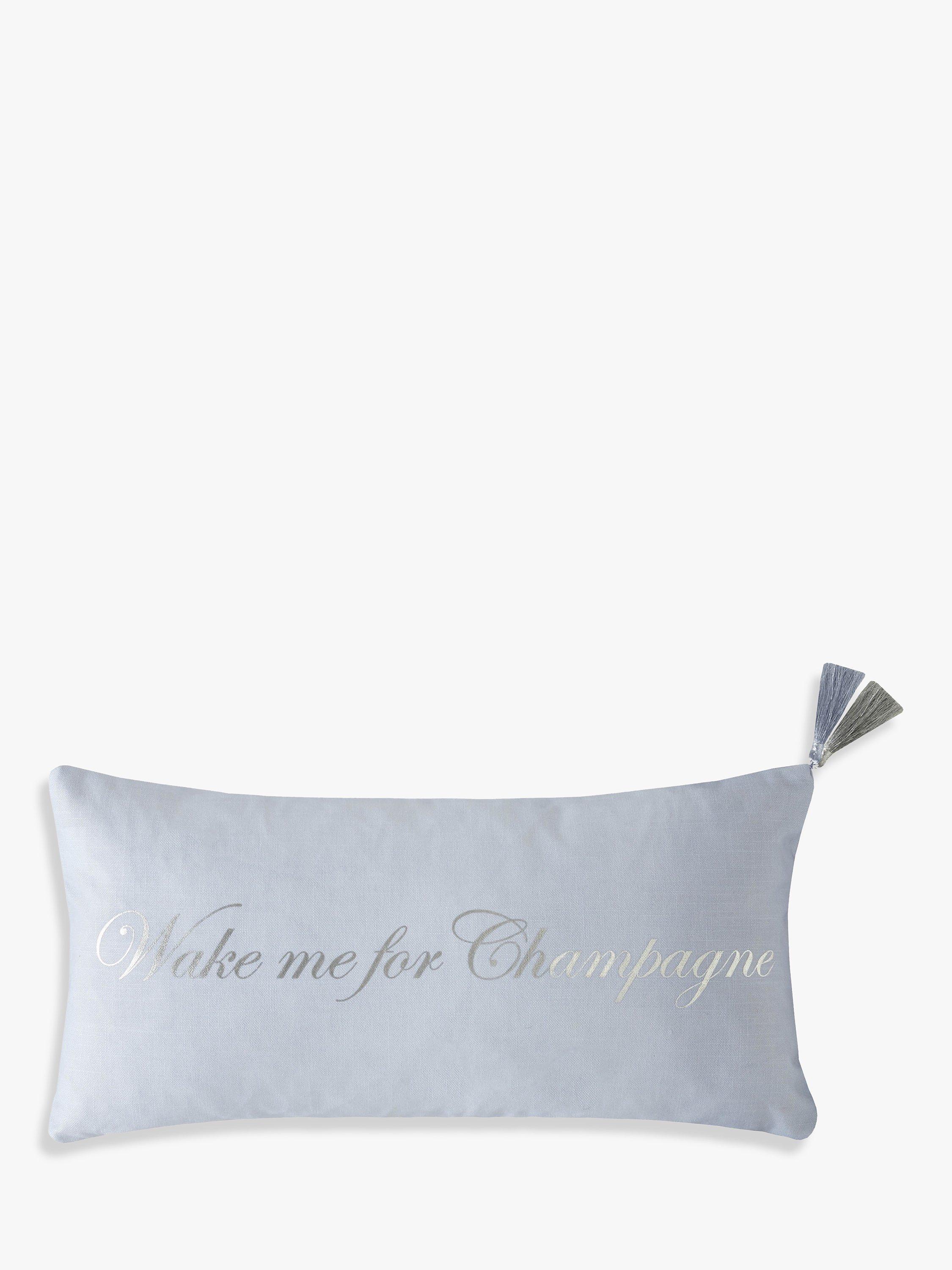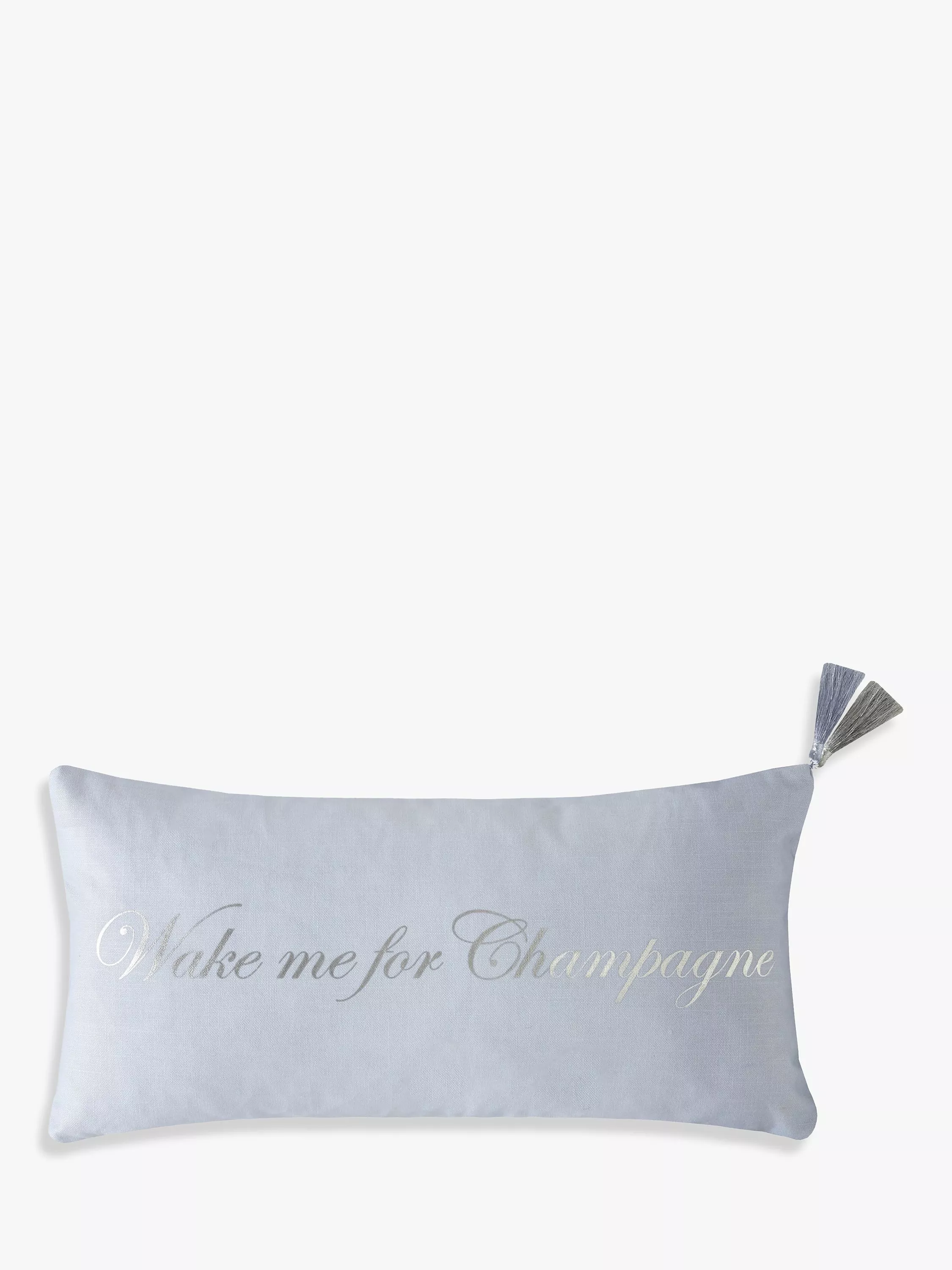 This fun bolster cushion for your bed is printed with the words, "Wake me for Champagne".