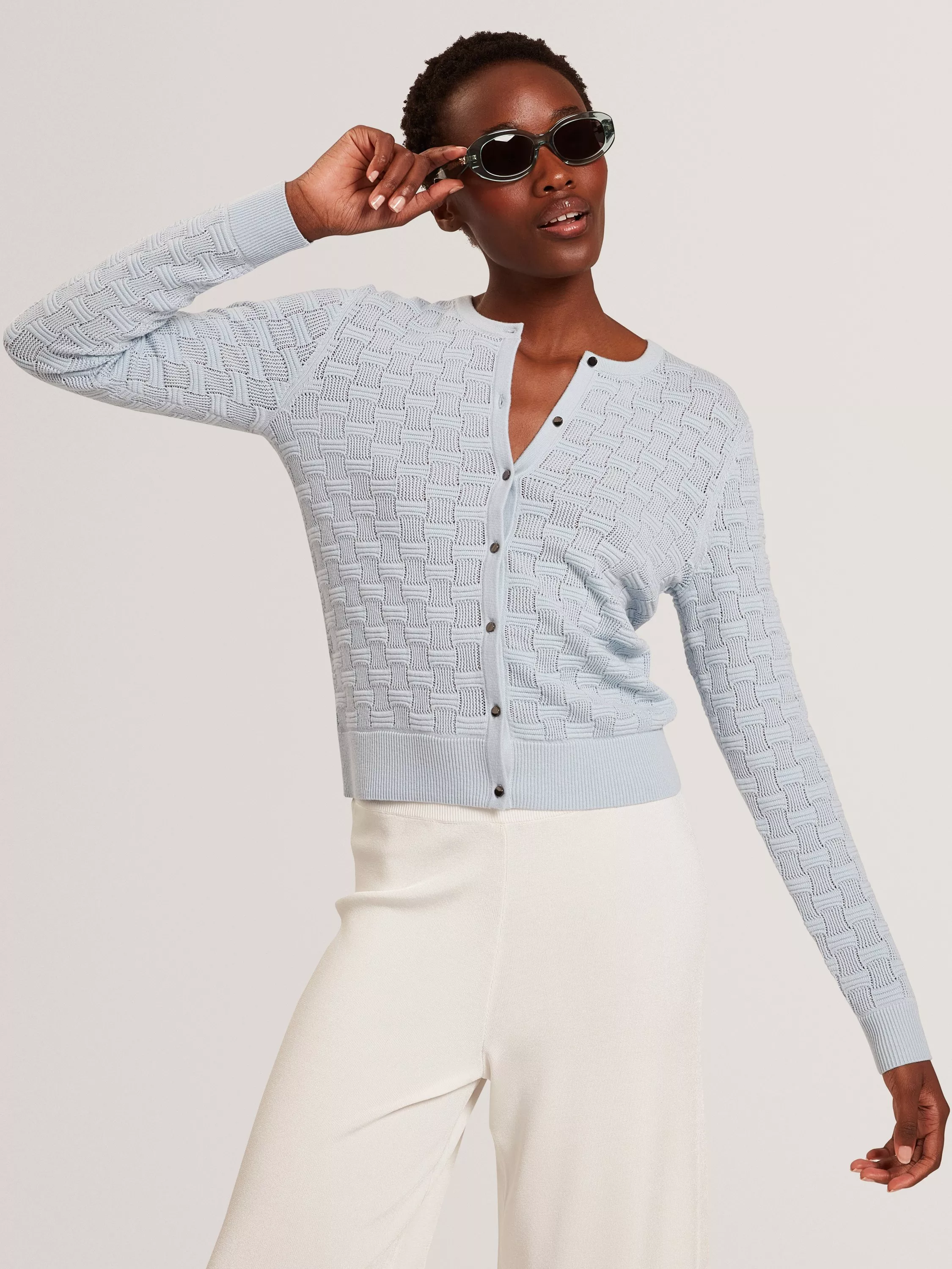 Neatly framed with a crew neckline, this cardigan by Ted Baker has cosy appeal with its soft wool blend.