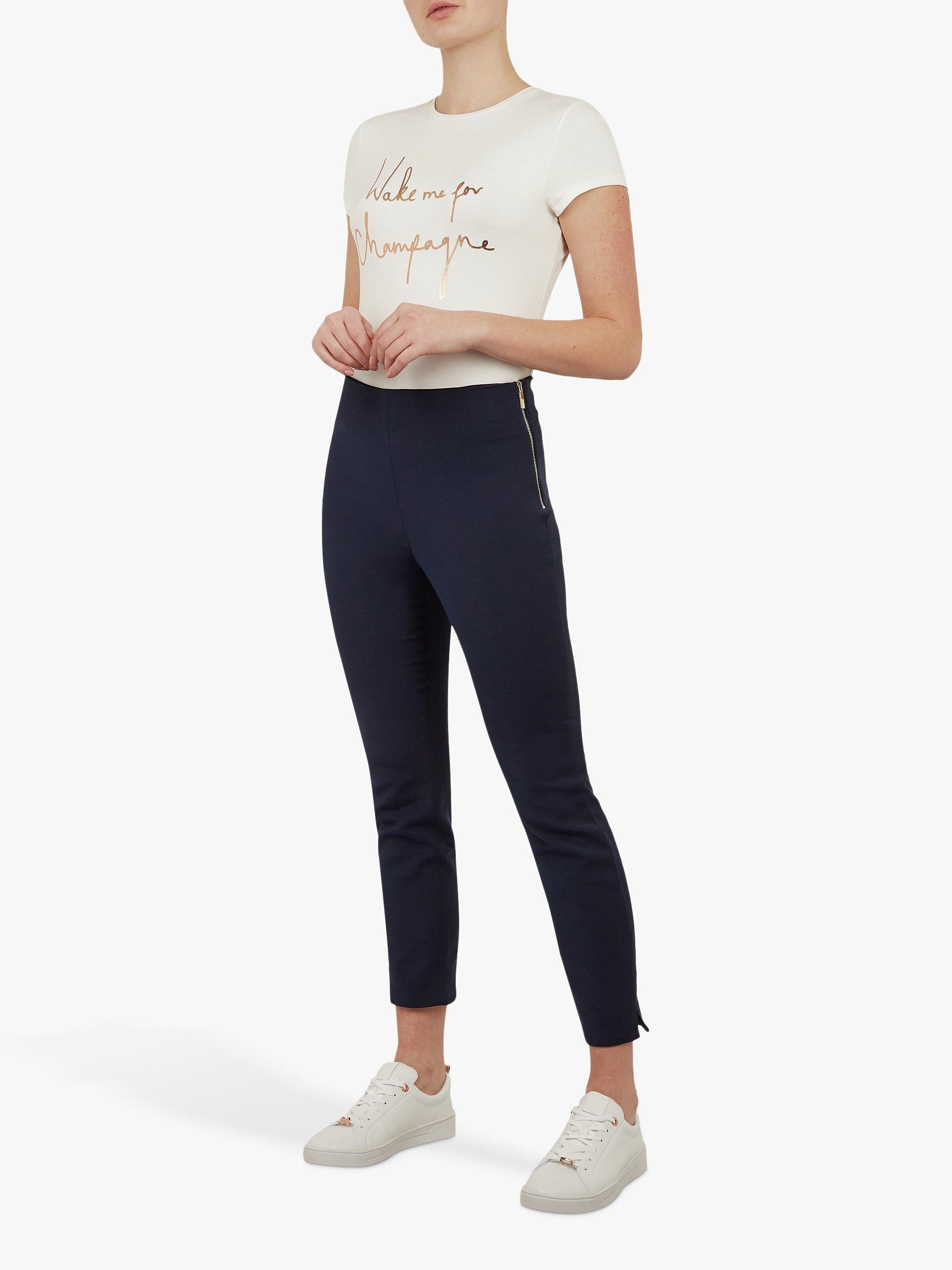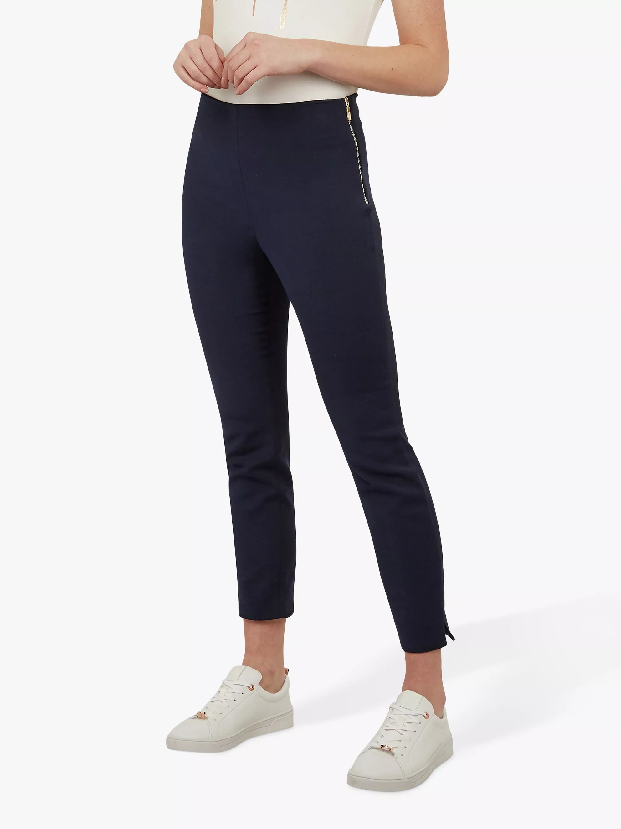 Opt for a minimalist style with the Zamelit trousers from Ted Baker. With a gold-tone side zip that serves as both a detailed adornment and a practical feature that enhances the piece's wearability, these trousers are cut to a form-flattering skinny fit. Wear with a tucked in blouse and heels for an office ensemble with an edge.