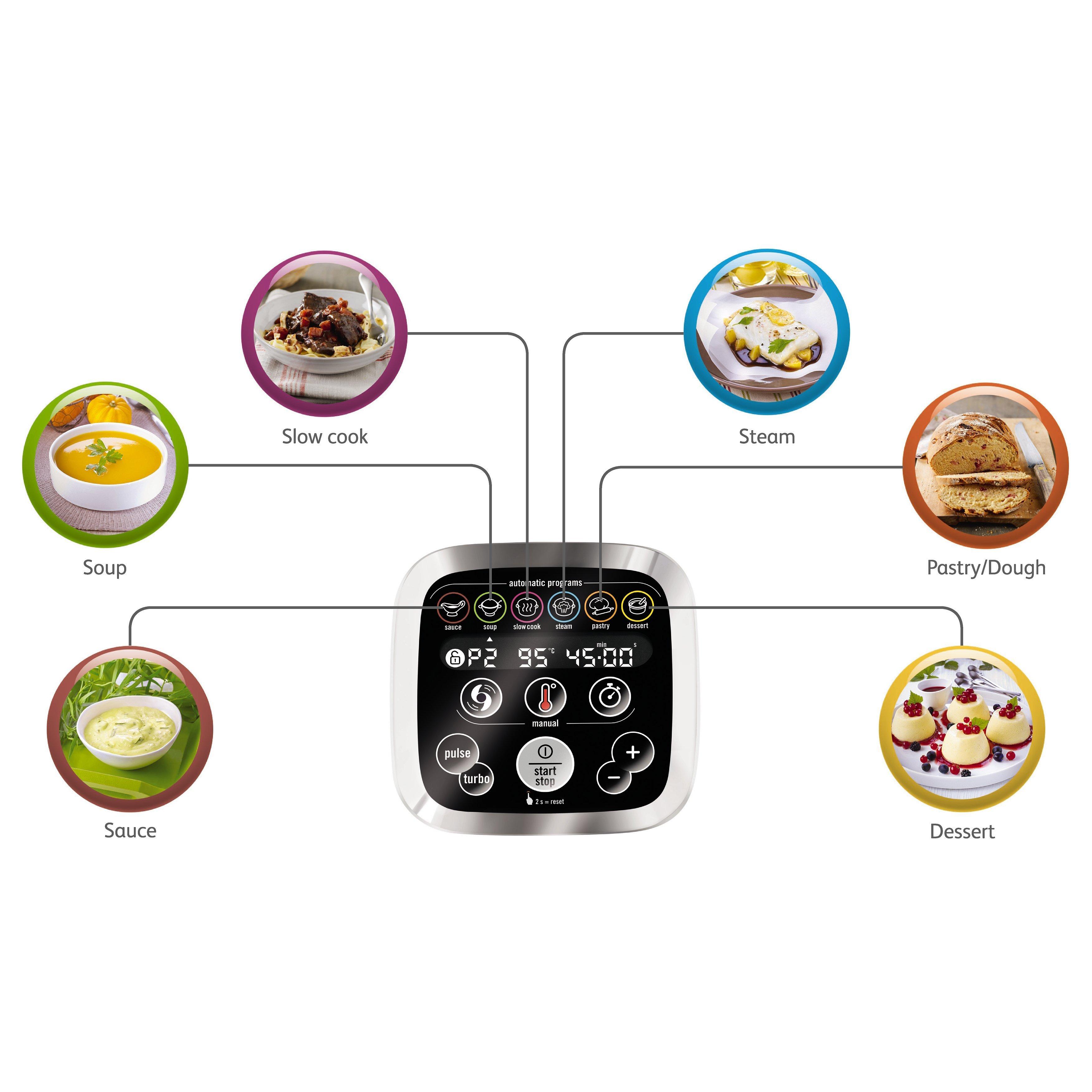 The Cuisine Companion will change the way you cook forever, making it so simple to create ingenious and inspired meals and dishes for the whole family. This machine comes fully equipped with an easy to use interface with six automatic functions. Simply put the ingredients in the bowl, and select from the touch pad display to launch the process. You can also choose a manual mode that gives you greater control over the type of cooking you want to do.