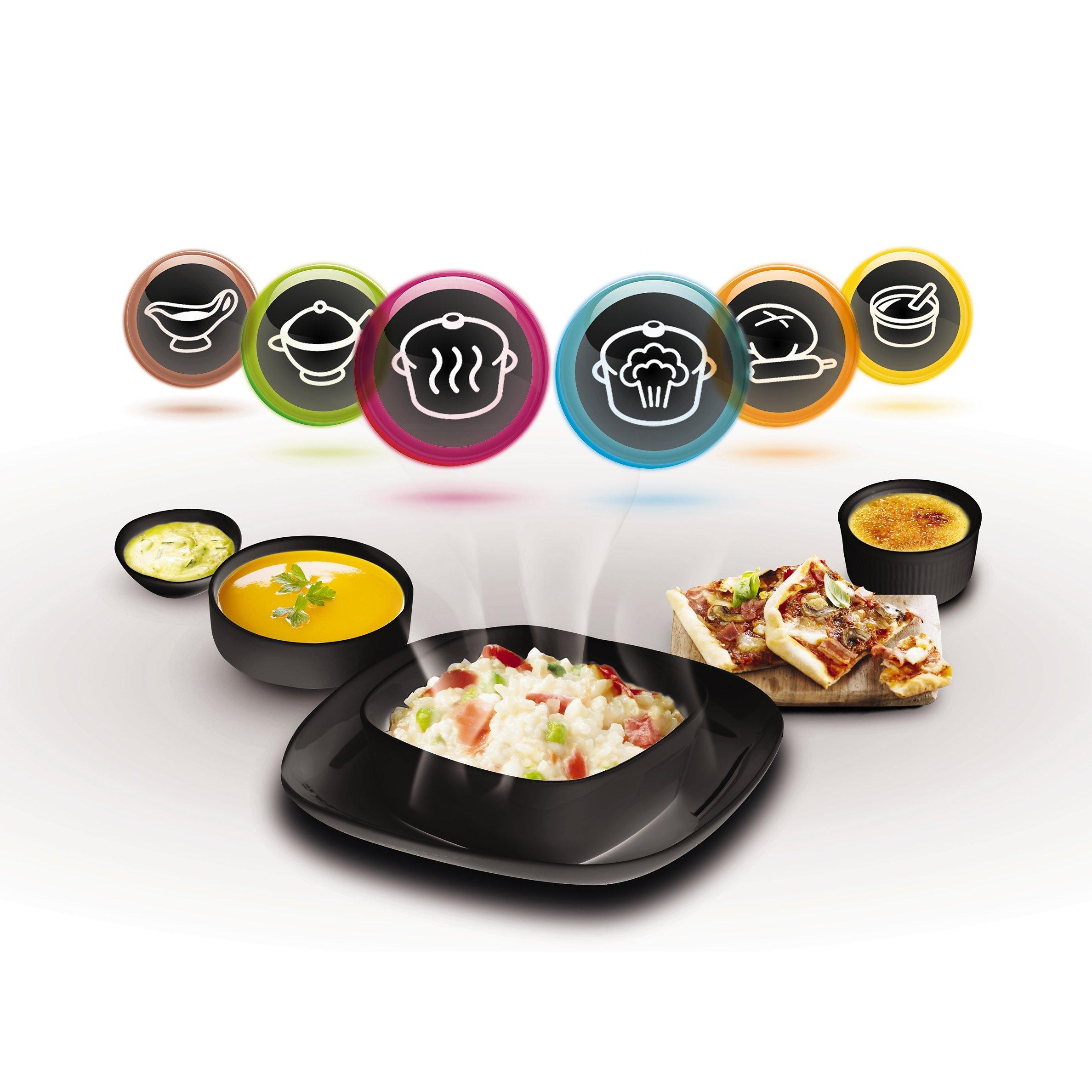 The Tefal Cuisine Companion comes with a ‘1 million menus’ cookbook that features 300 different recipes – 100 starters, 100 mains and 100 desserts. You can cook basics like sauces (pesto, mayonnaise, four cheese) and pasta dough/pastry, to soups and starters like pate, wontons, soups and breads. This machine also gives you the option to cook main courses such as risotto, lasagne, tagine, curry, fish and meat dishes or sides like mashed potatoes or vegetable dishes. And finally you can use the Cuisine Companion to finish off your night with a tasty dessert or baked goods like pannacottas, custard tarts, cakes or macaroons.