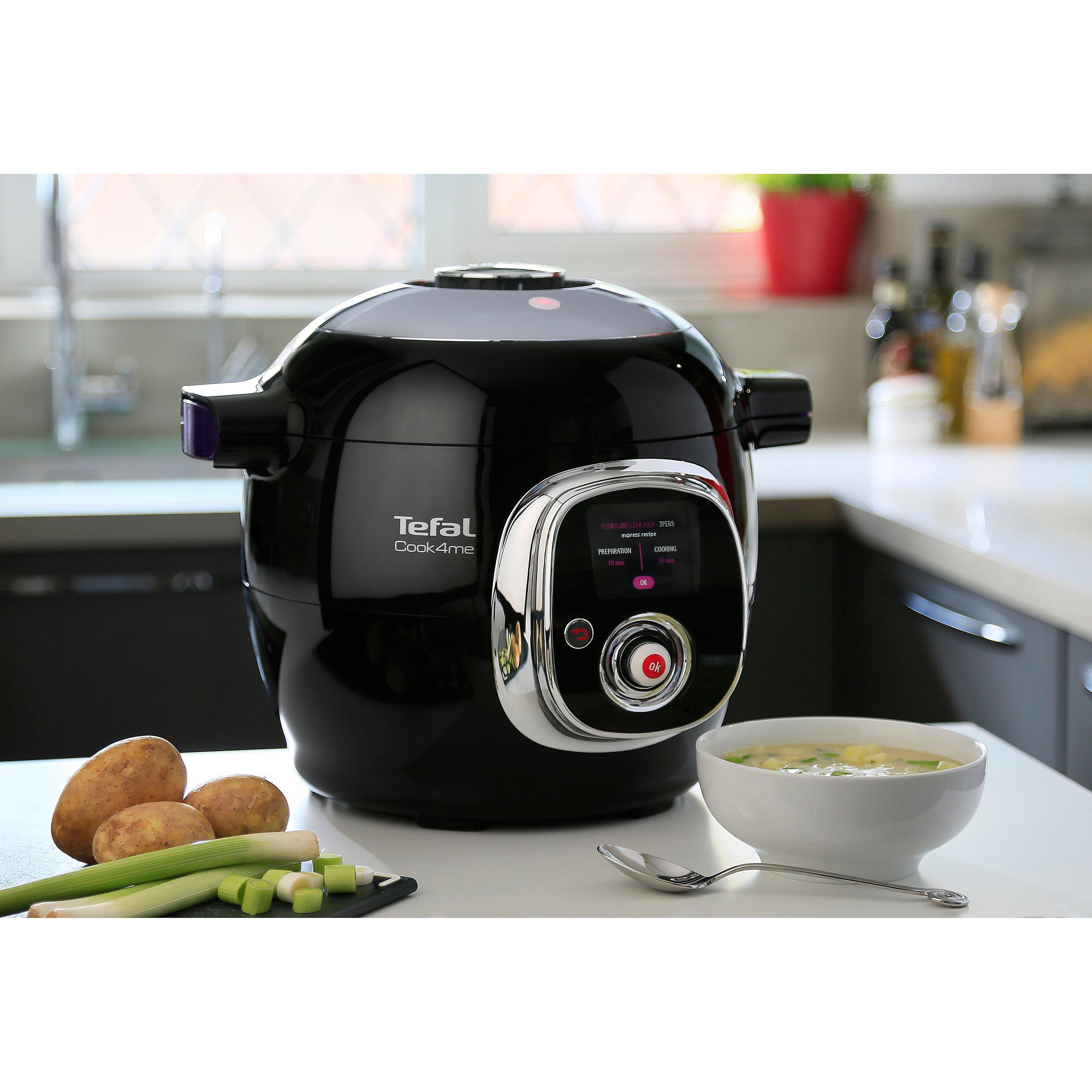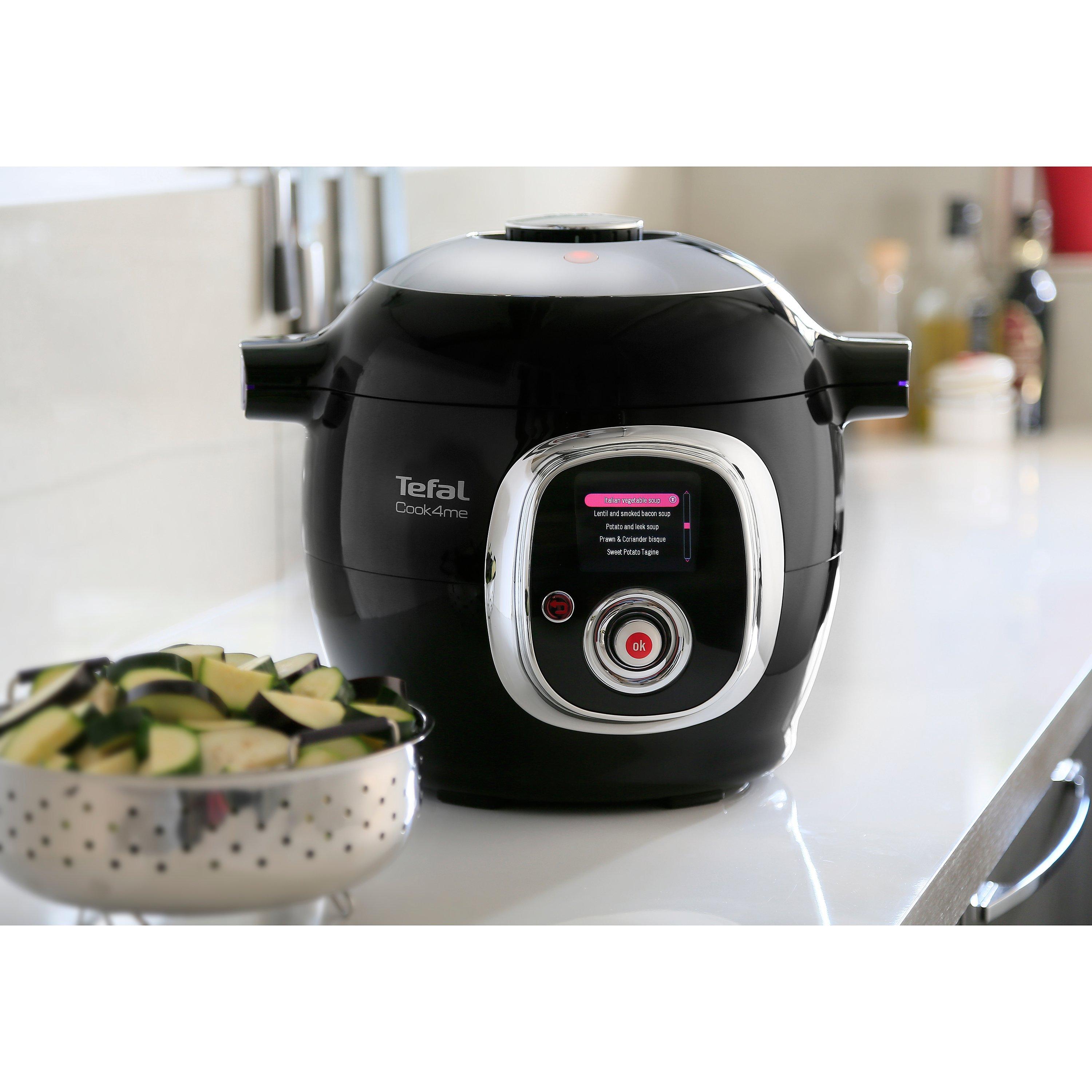 This interactive, intelligent CY701840 Cook4me Multi Cooker by Tefal simplifies everyday cooking by guiding you, step-by-step, through every recipe in its pre-programmed library of recipes. Cooking delicious every day meals has never been so easy, as the Cook4me also advises you on the quantity of each ingredient and automatically sets the cooking function and temperature to match.
