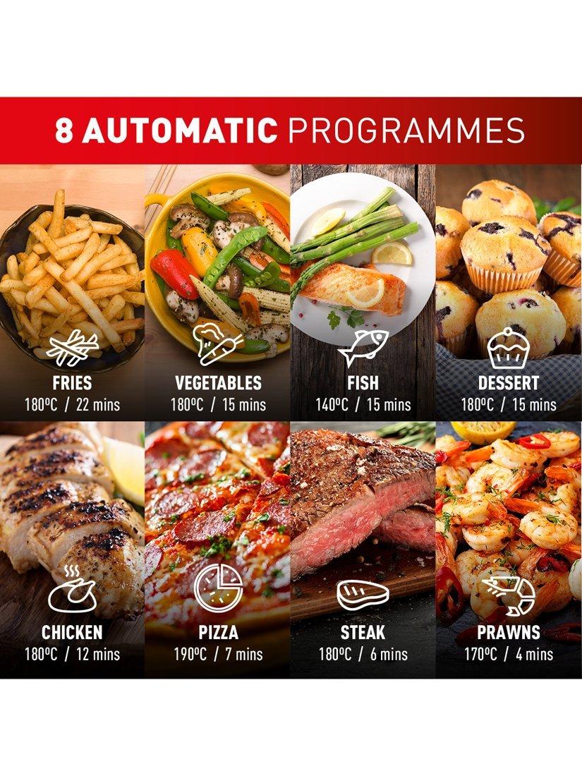 - 8 preset programs and precision temperature/time control (80°C-200°C, up to 60 min), for perfect results on any recipe