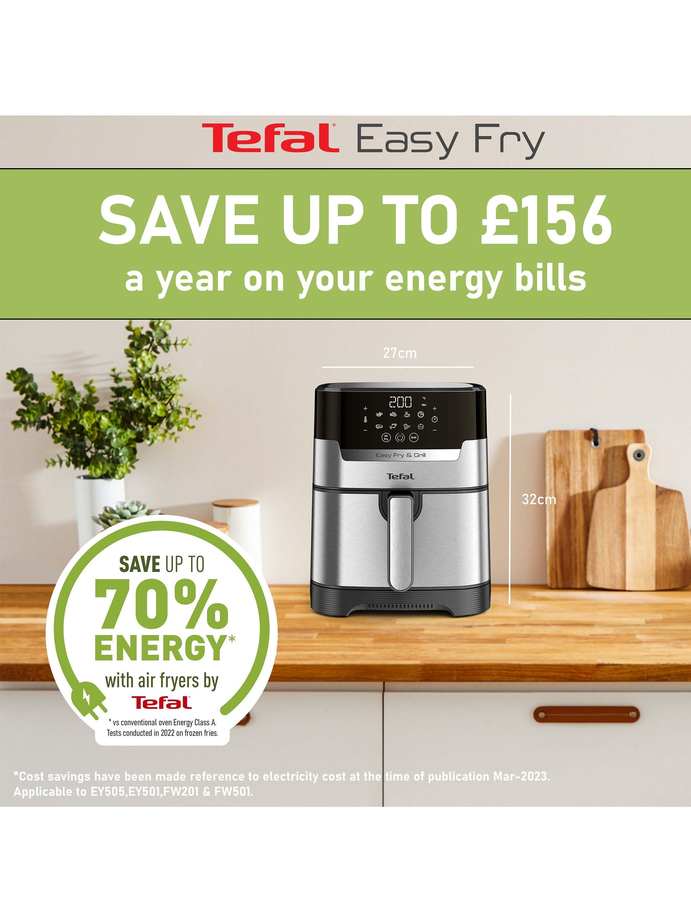 **Up to 70% energy saving with air fryers by Tefal vs conventional oven Energy Class A. Tests conducted in 2022 on frozen fries.