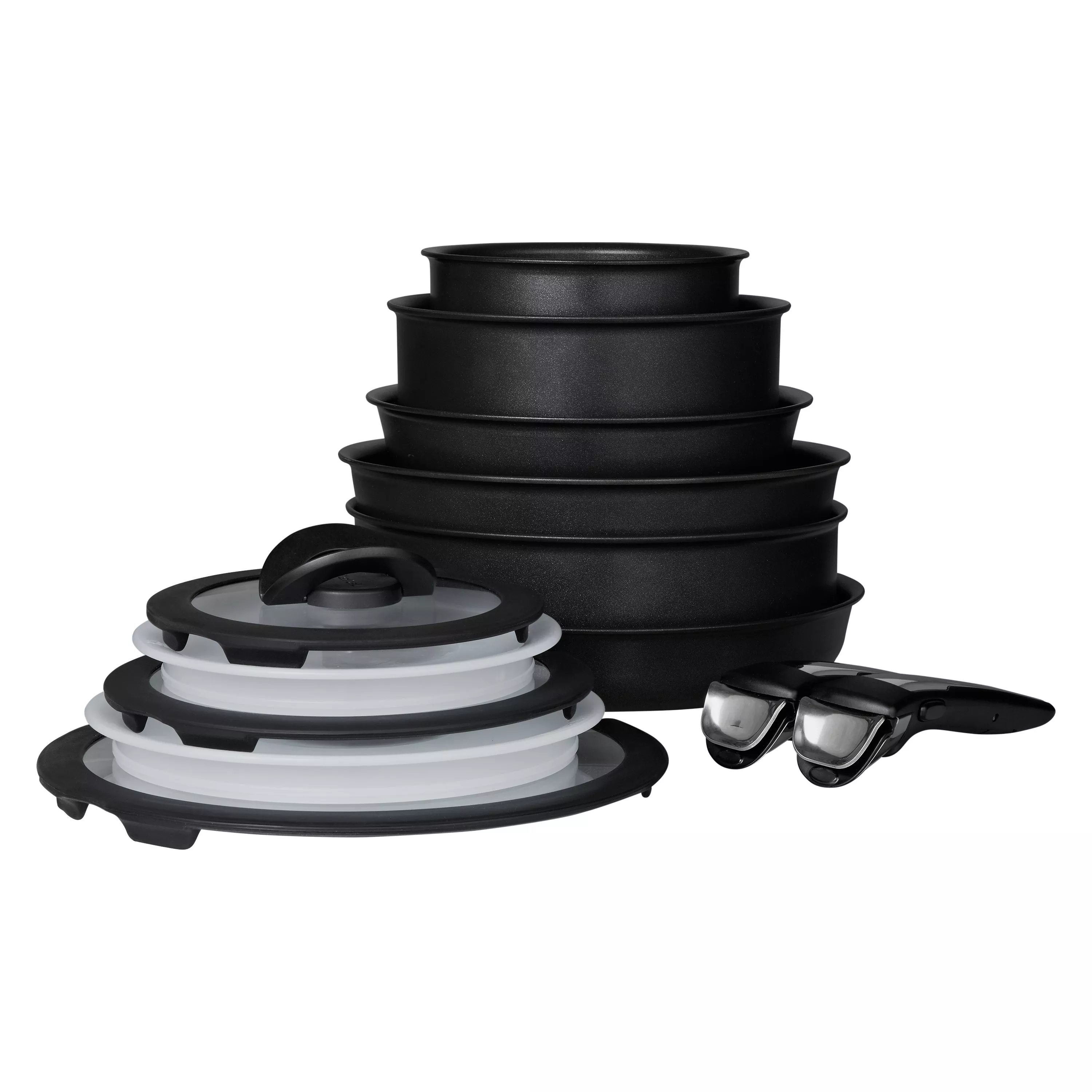 TEFAL INGENIO INDUCTION COMPLETE SET 13pcs: SAUCEPANS 16&20 cm, FRYPANS 22&28cm, SAUTEPAN 26CM, WOK 26CM, GLASS LIDS 16/20//26CM, PLASTIC LIDS 16/20CM + 2 BAKELITE HANDLES WITH STAINLESS STEEL INSERT " Perfectly versatile: from hob, to oven, to table, to fridge Optimal storage thanks to removable handle Titanium Pro non-stick coating is extremely resistant and can be used with metal utensils (except whisks and knives) Thermo-Spot heat indicator let's you know when pan has reached optimal cooking temperature (except on saucepans) Dishwasher and oven safe Induction compatible " "1