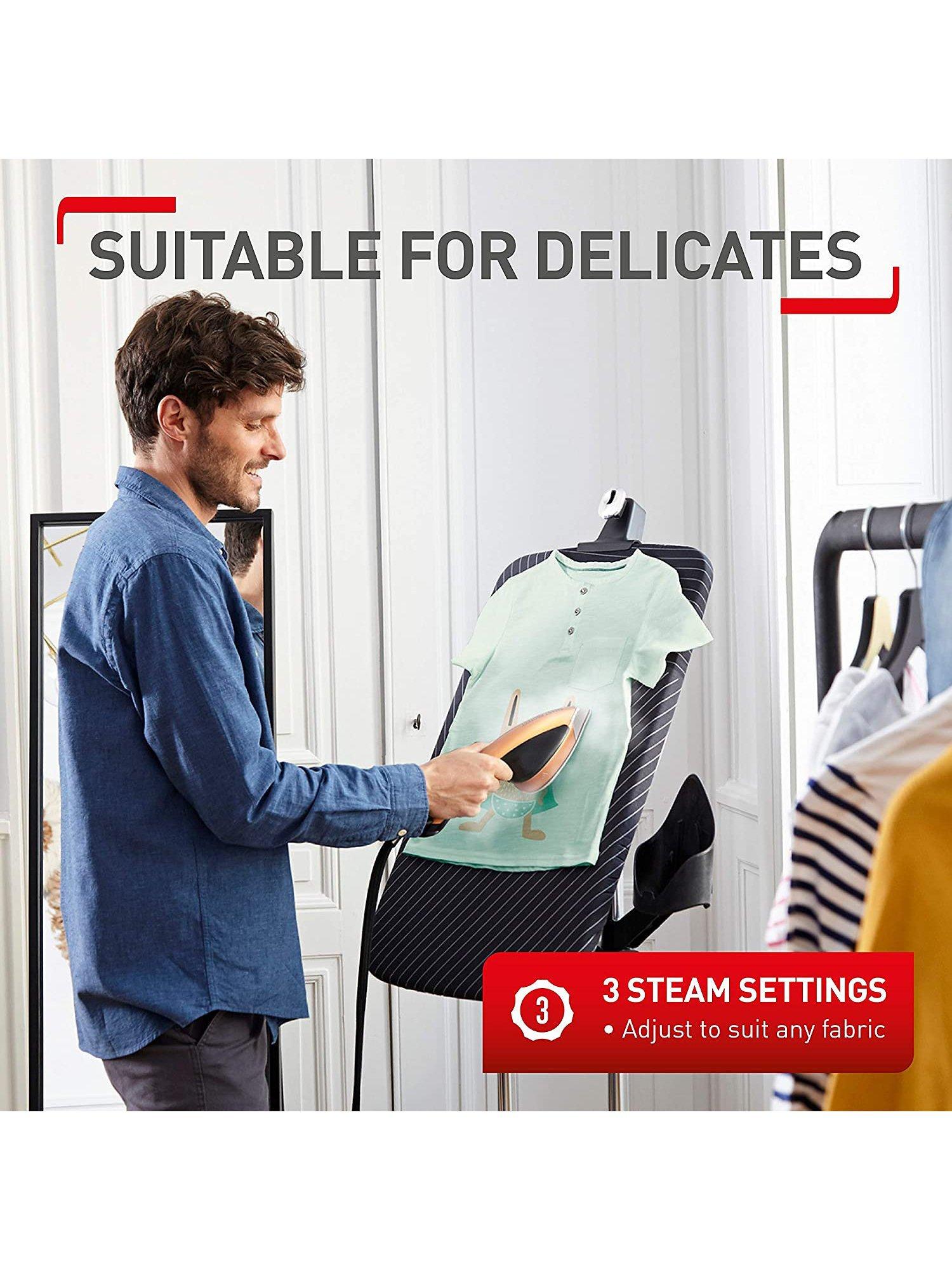 With a heat-up time of around 70 seconds, IXEO Power is always ready to go and, at 2170W, it’s as powerful as a steam generator iron. We’re talking a professional-grade 5.8 bars producing up to 90g/min steam output and a powerful 200g/min steam boost to cut through stubborn creases in no time. The steam head itself is half the weight of a traditional steam iron which makes it super-easy to manoeuvre, with a precision tip that’s great for getting between buttons.