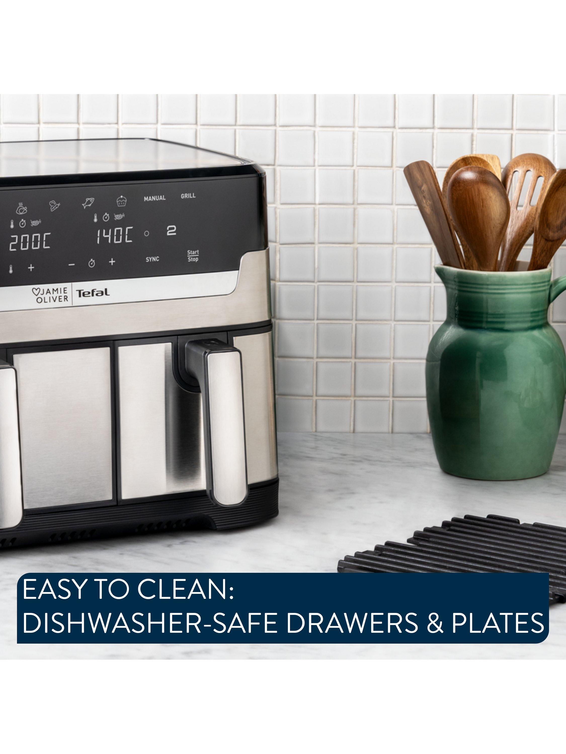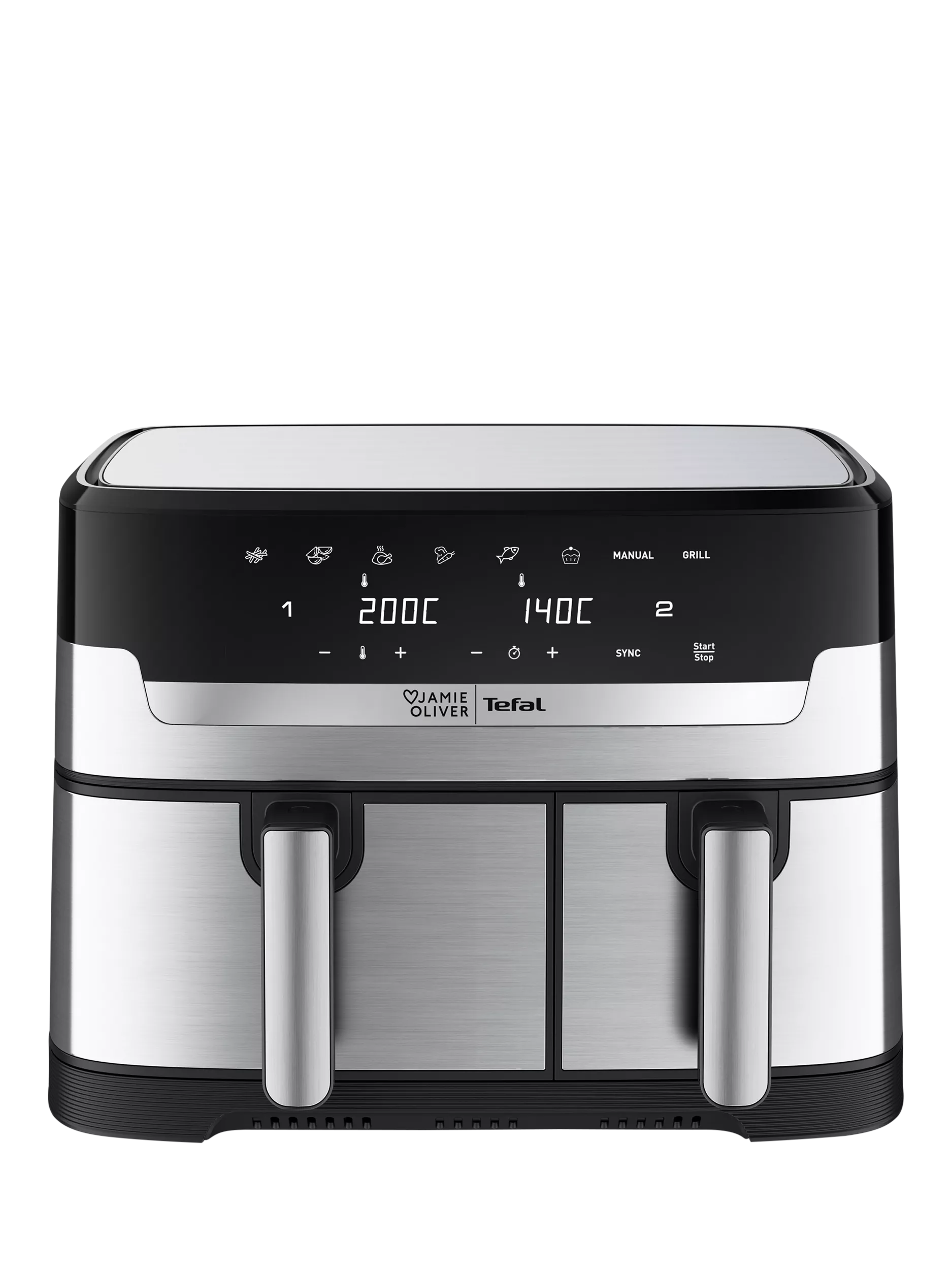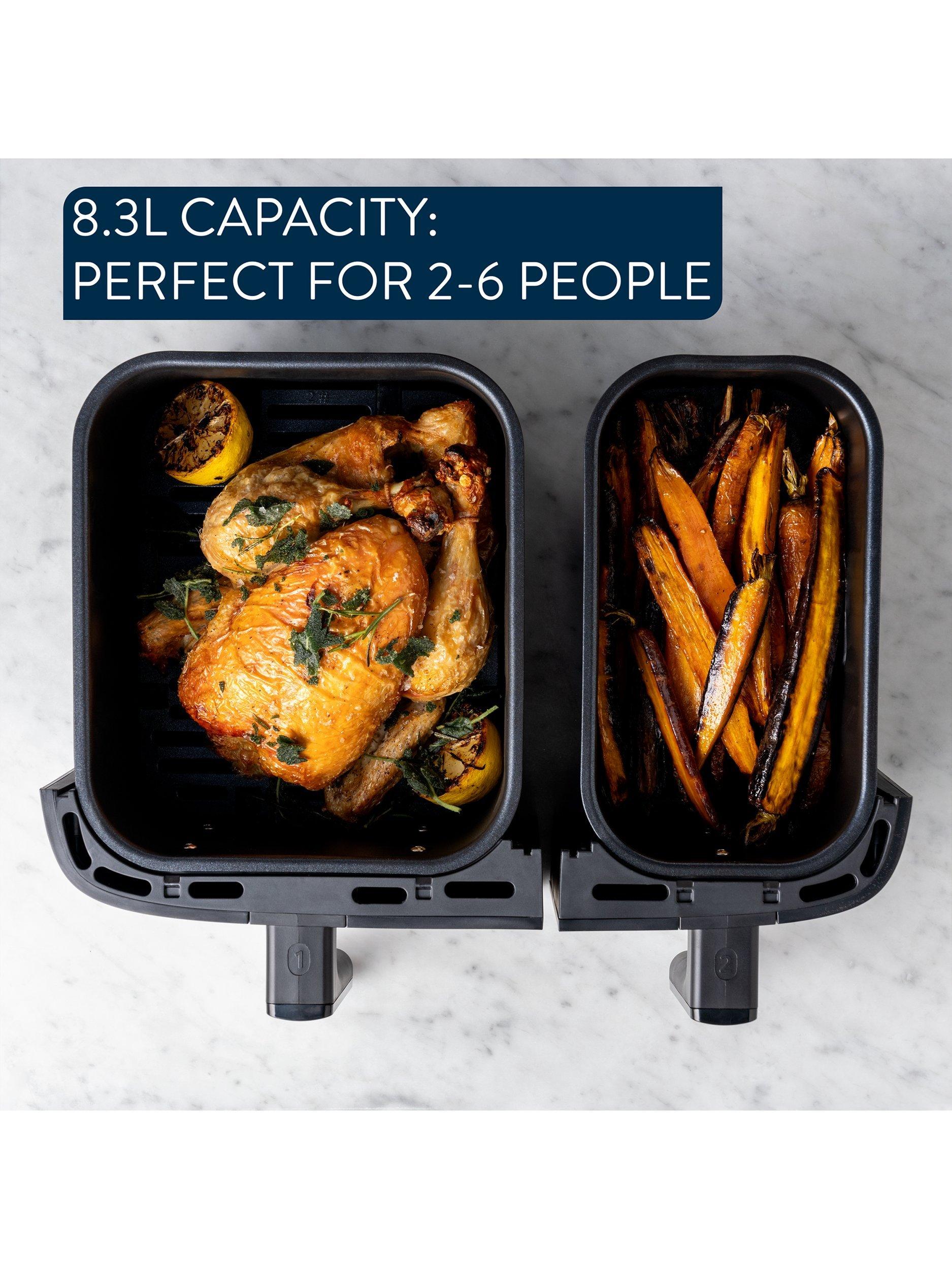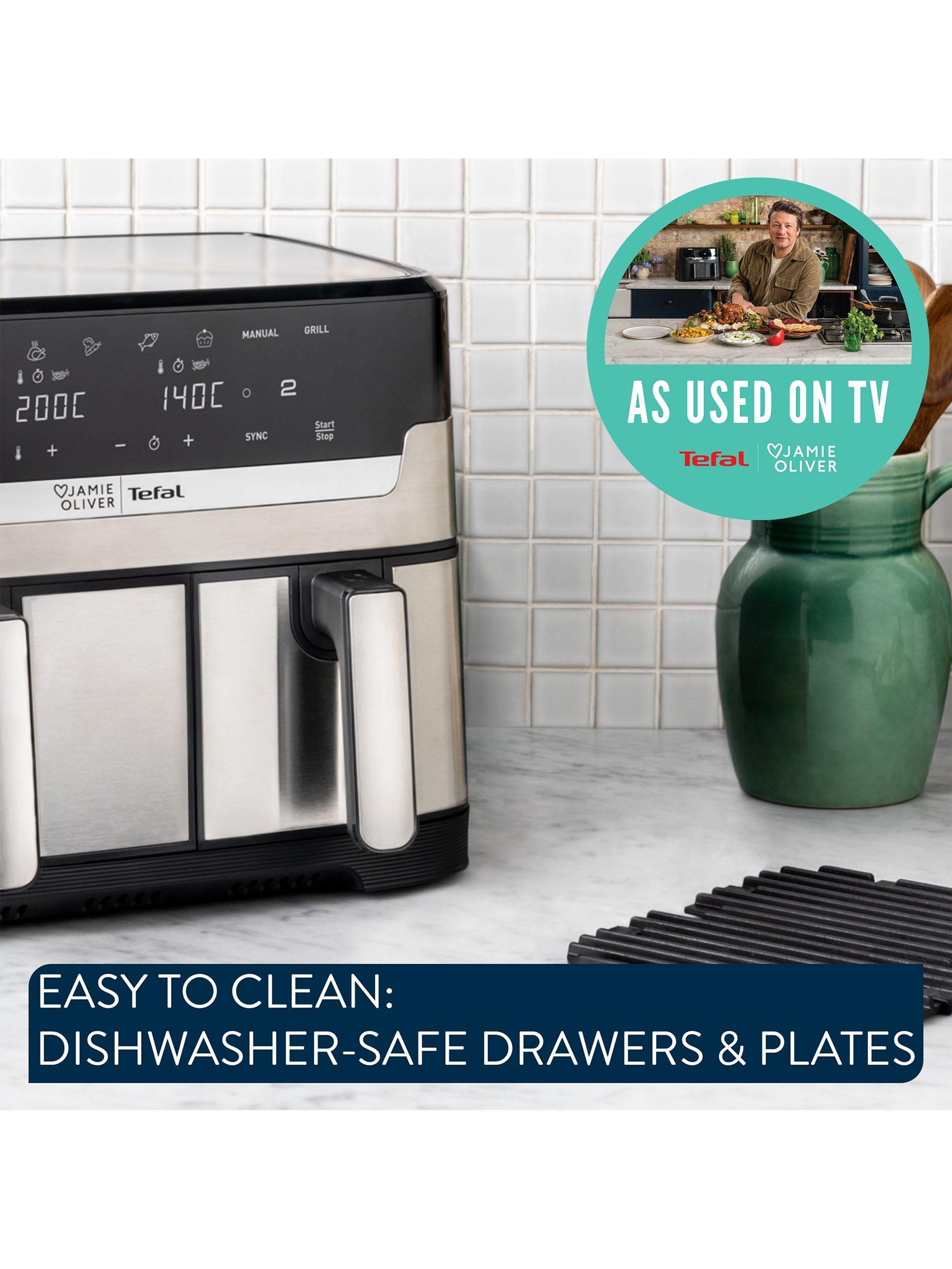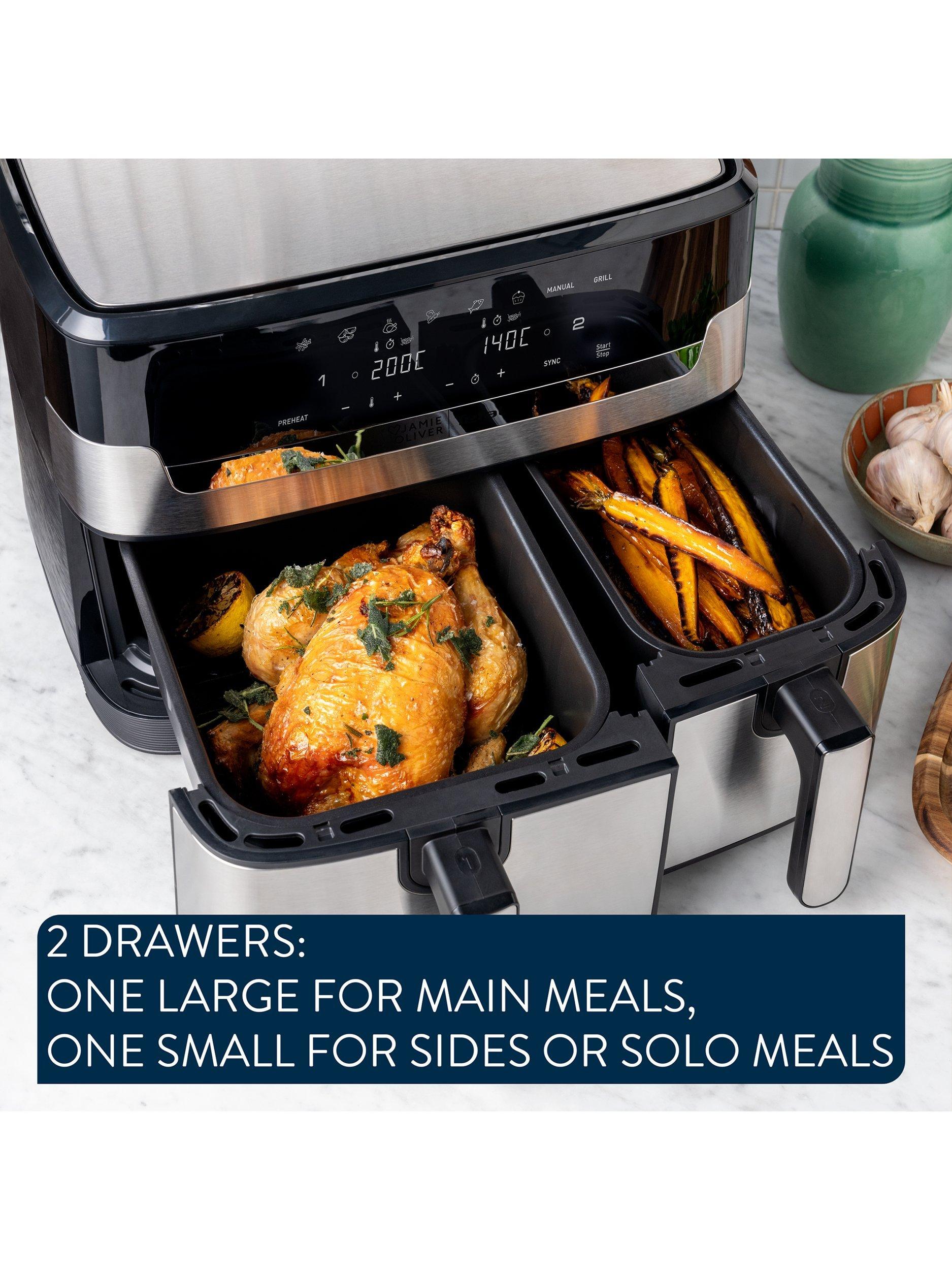 "My Dual Drawer air fryer is a seriously good piece of kitchen kit. Having two drawers means you can cook a delicious meal from scratch in no time, with no need to preheat, saving you energy. Not only that, it helps you deliver big on flavour. Simply set the air fryer to cook and go, for easy lunches, dinners, baking... The world's your oyster." — Jamie Oliver.
