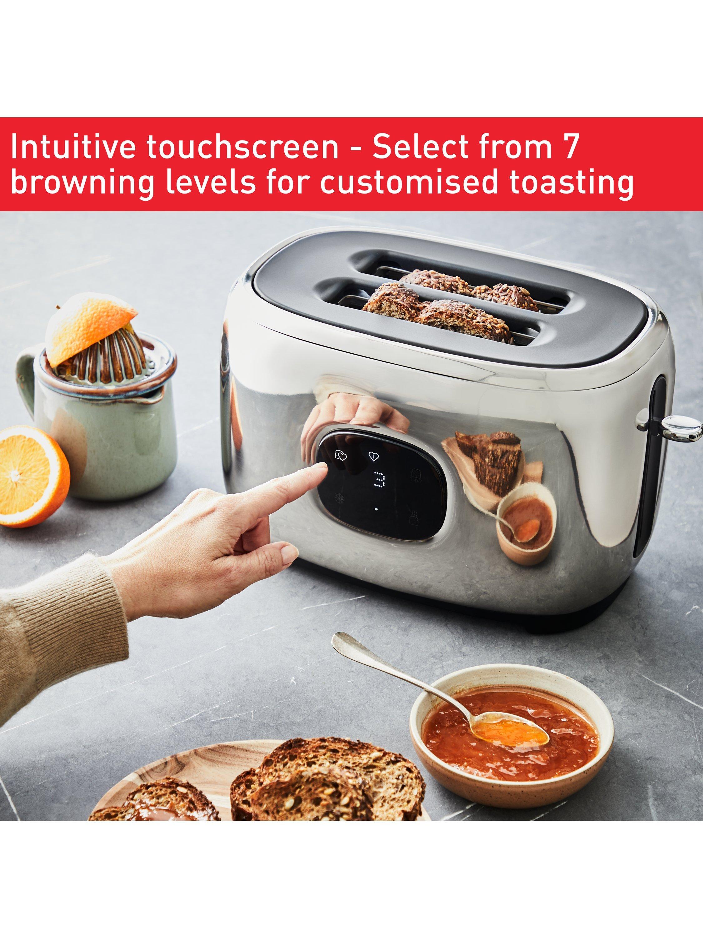 A breakfast set as beautiful as your kitchen! Majestuo combines stunning aesthetics with high-quality materials and advanced technology for your daily delight all in a timelessly elegant design. The 2-slot toaster features an intuitive touchscreen that puts all the most essential information at your fingertips, while two favorite shortcuts speed up your morning routine. Featuring an extra-high lift lever for comfortable use and a removable crumb tray for easy clean-up, its beautiful exterior is matched by its powerful functionality for fast toasting with even less energy consumption.