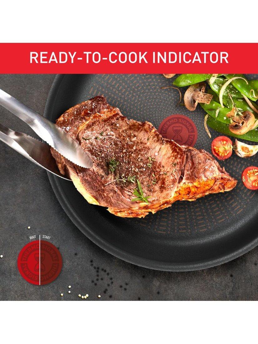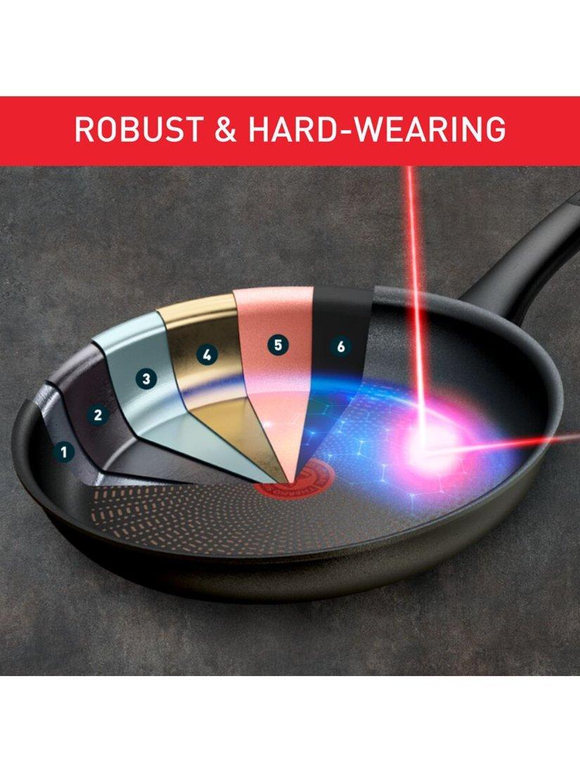 Its six-layer construction means it's built to last. From restaurant-quality sole meunière to rib-eye steak seared to perfection, this outstanding frying pan delivers stunning meals day after day, with fast, even heating as well as perfect searing thanks to Tefal's exclusive Thermo-Signal™ cooking indicator that lets you when it's reached the right temperature.
