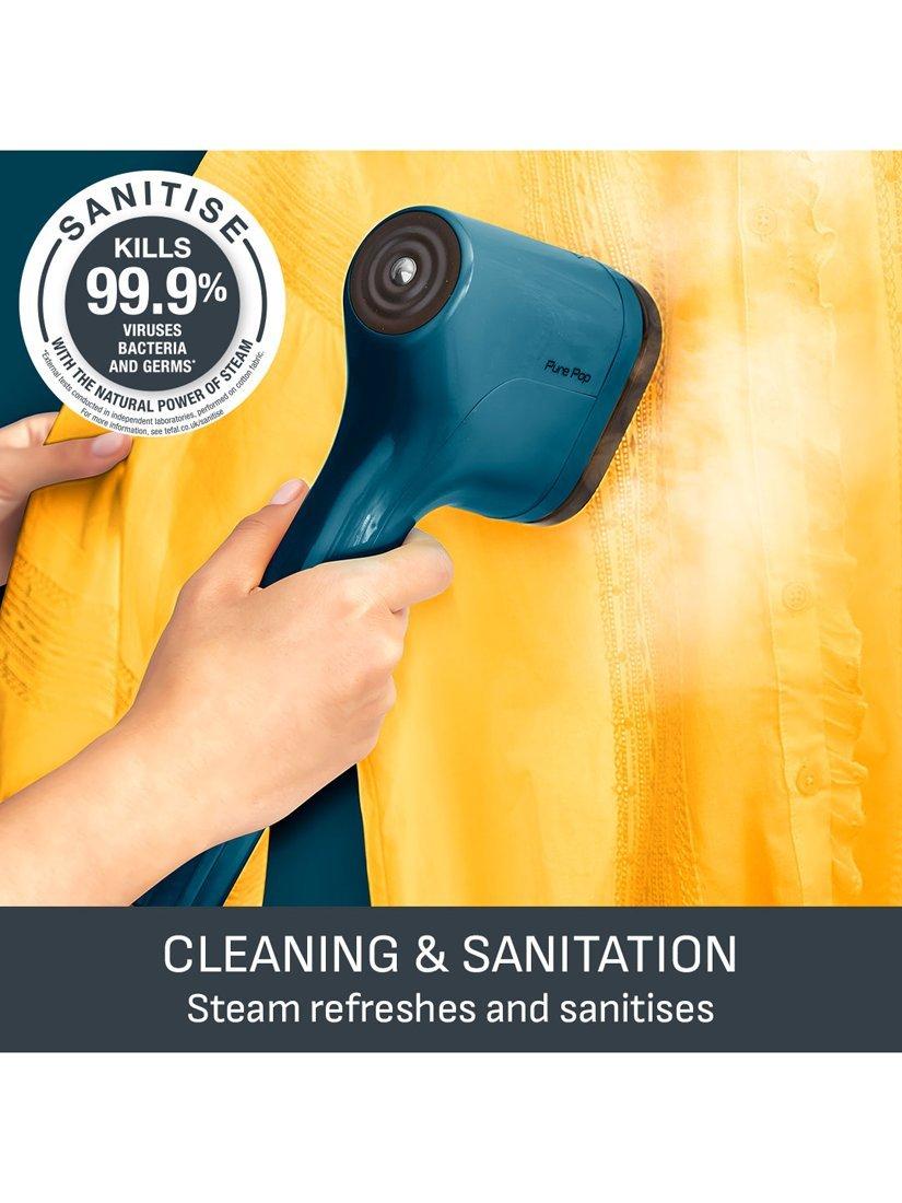 Pure POP is ready to steam in a lightning-fast 15 seconds – because time is precious. Better still, this steamer does two jobs at once, smoothing and sanitising in one stroke. The purifying steam refreshes clothes, reduces odours, and kills up to 99.9% of viruses, bacteria and germs*. All of which means more wearing and less washing.