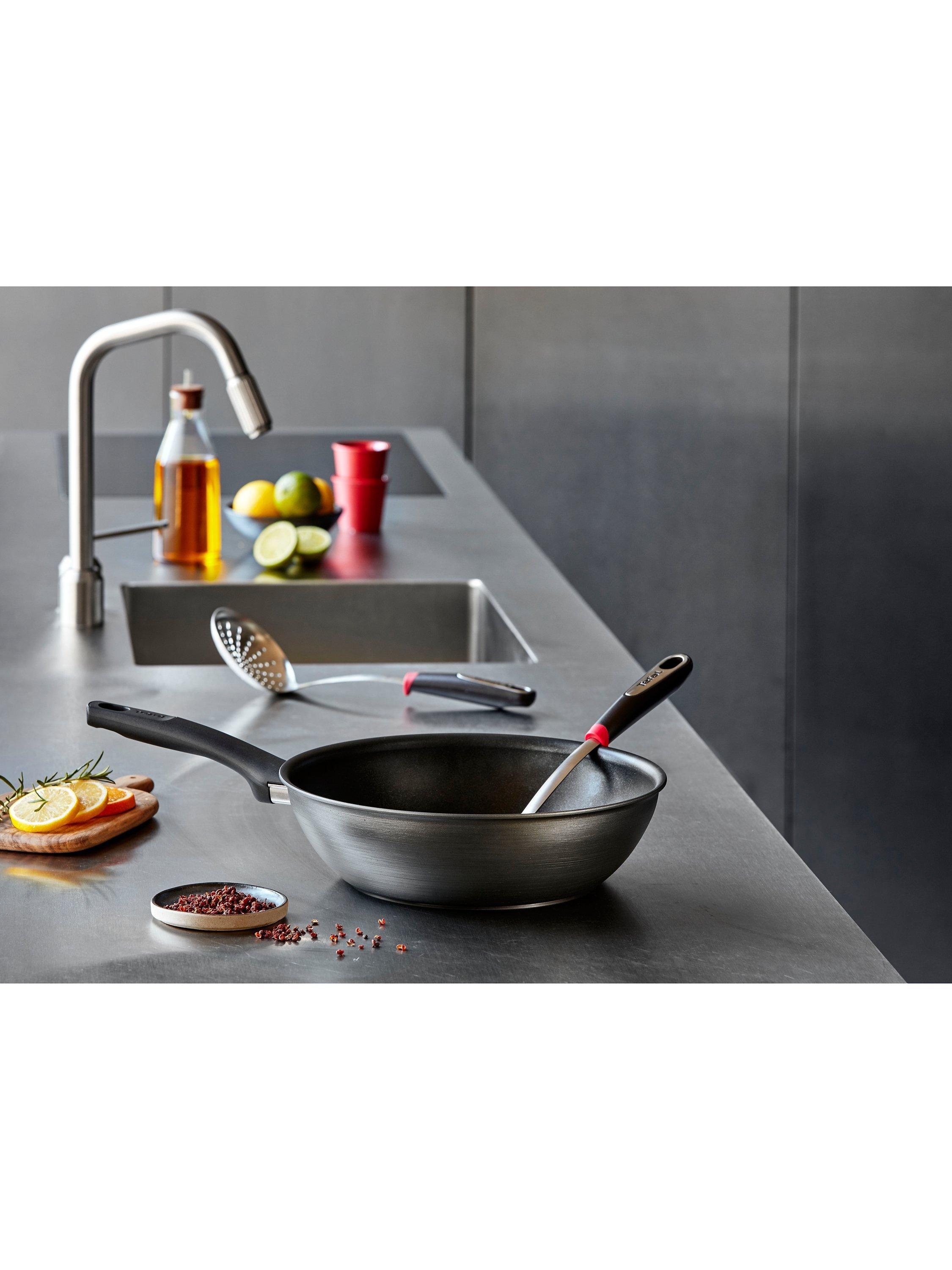 A non-stick wok from the Tefal Titanium Fusion range of cookware. The Tefal Titanium Fusion range features a non-stick coating that's resistant to all types of cooking utensils and to all types of cooking techniques, no matter how intense, making it a great choice for high-temperature stir fry cooking.