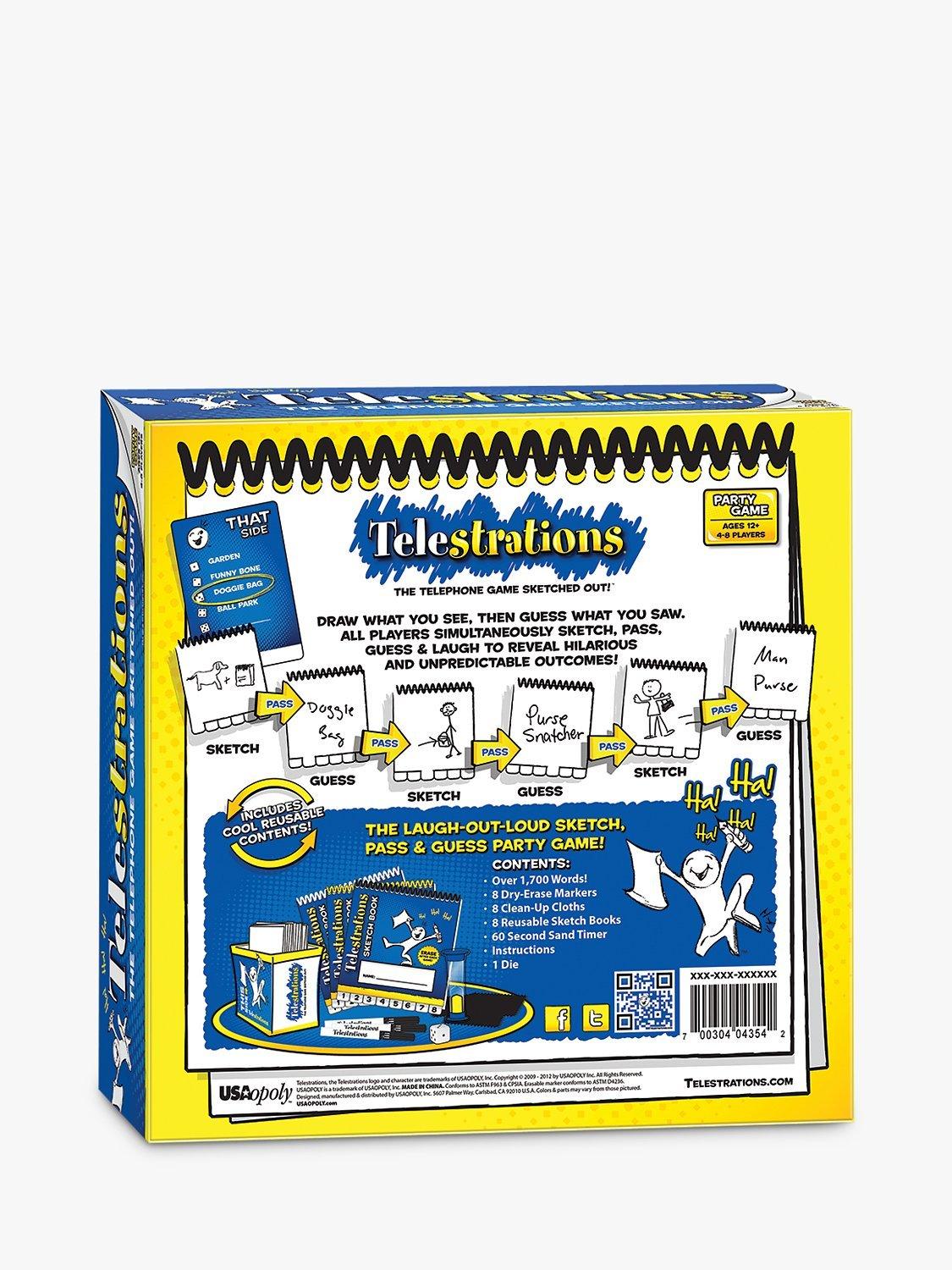 Draw what you see, then guess what you saw. With Telestrations all players simultaneously sketch, pass, guess and laugh to reveal hilarious and unpredictable outcomes.