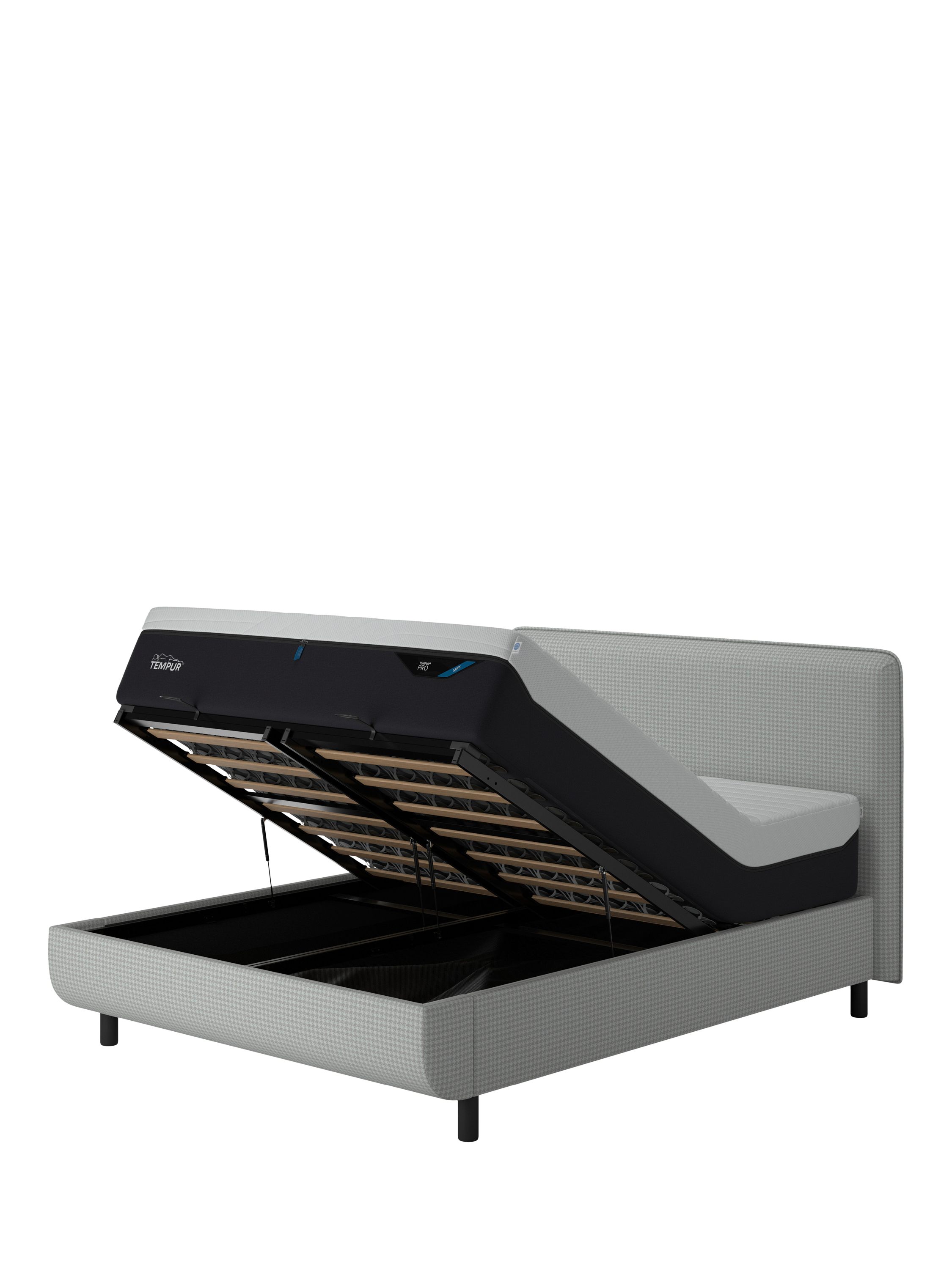 The Arc™ upholstered ottoman bed frame offers the best of storage and support. Created together with renowned design agency Studio Stockholm, its double-frame slat system works together with your TEMPUR® mattress to perfectly support your body while you sleep. High-quality steel tubing makes the bed frame reliably robust and durable, while the wide-opening ottoman hinges ensure a seamless and easy lift-up to access the helpful storage space inside.