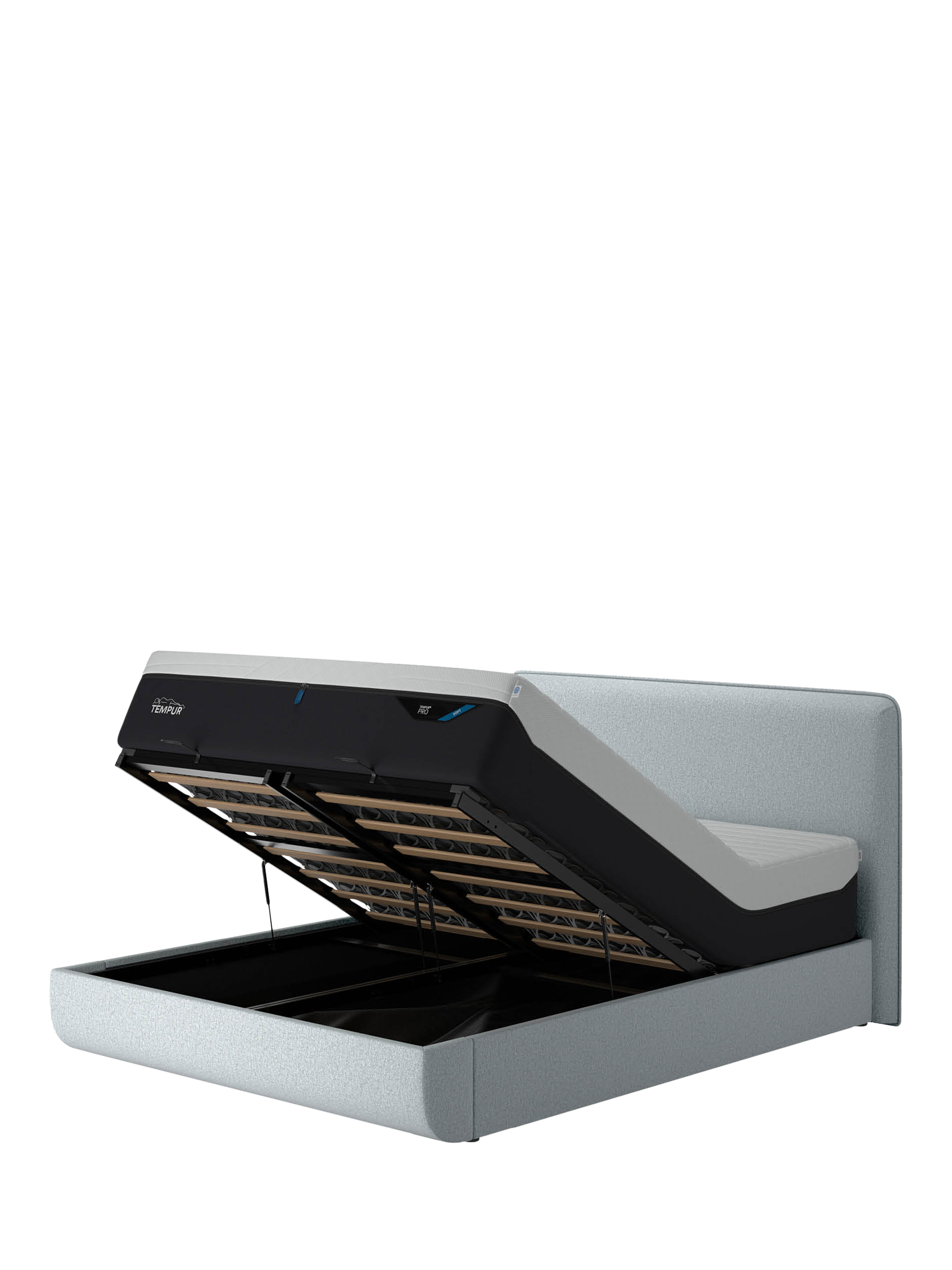 The Arc™ upholstered ottoman bed frame offers the best of storage and support. Created together with renowned design agency Studio Stockholm, its double-frame slat system works together with your TEMPUR® mattress to perfectly support your body while you sleep. High-quality steel tubing makes the bed frame reliably robust and durable, while the wide-opening ottoman hinges ensure a seamless and easy lift-up to access the helpful storage space inside.