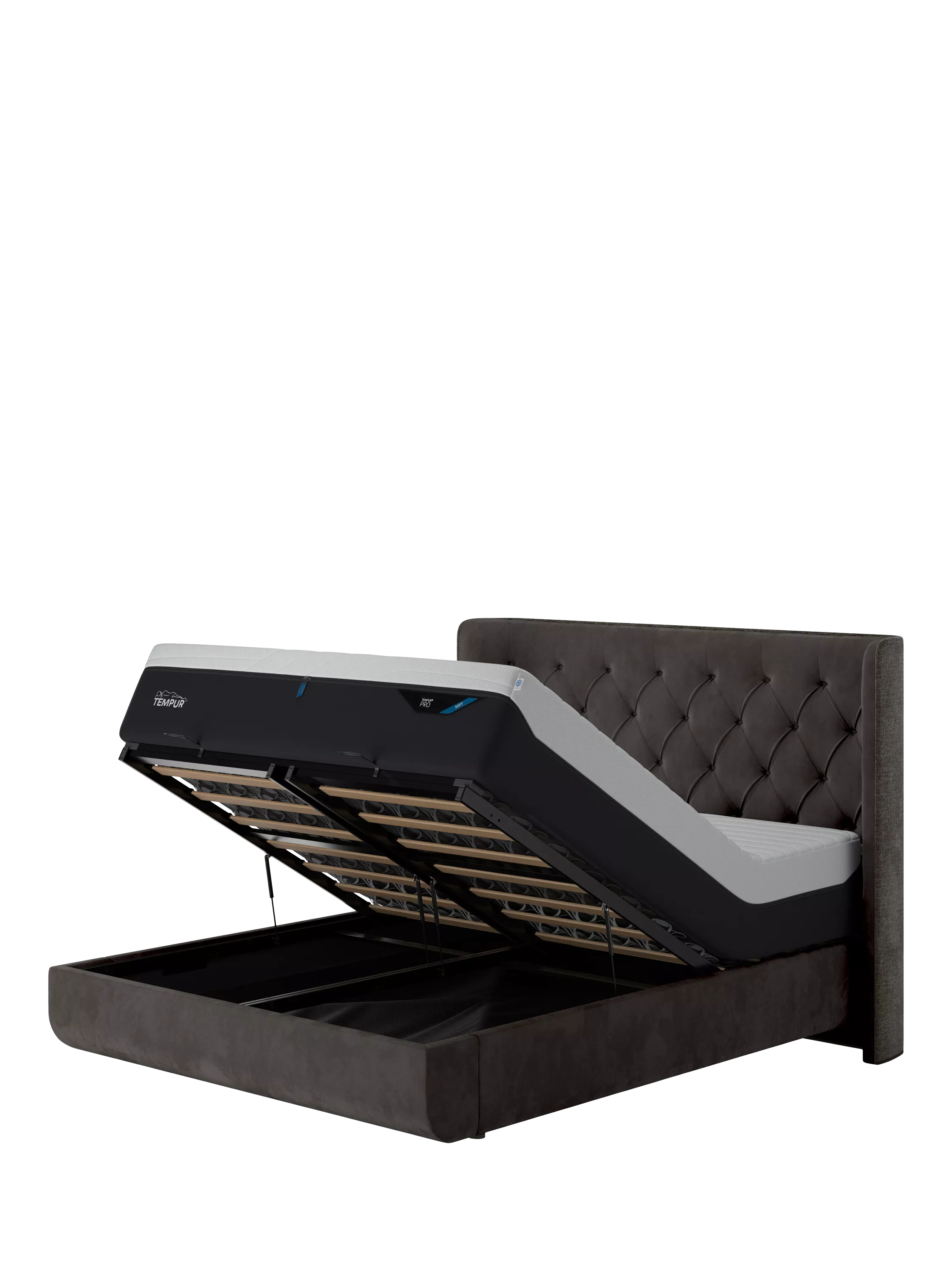 TEMPUR®Arc™ Ottoman Storage Disc Luxury Upholstered Bed Frame, King Size, Dark Grey