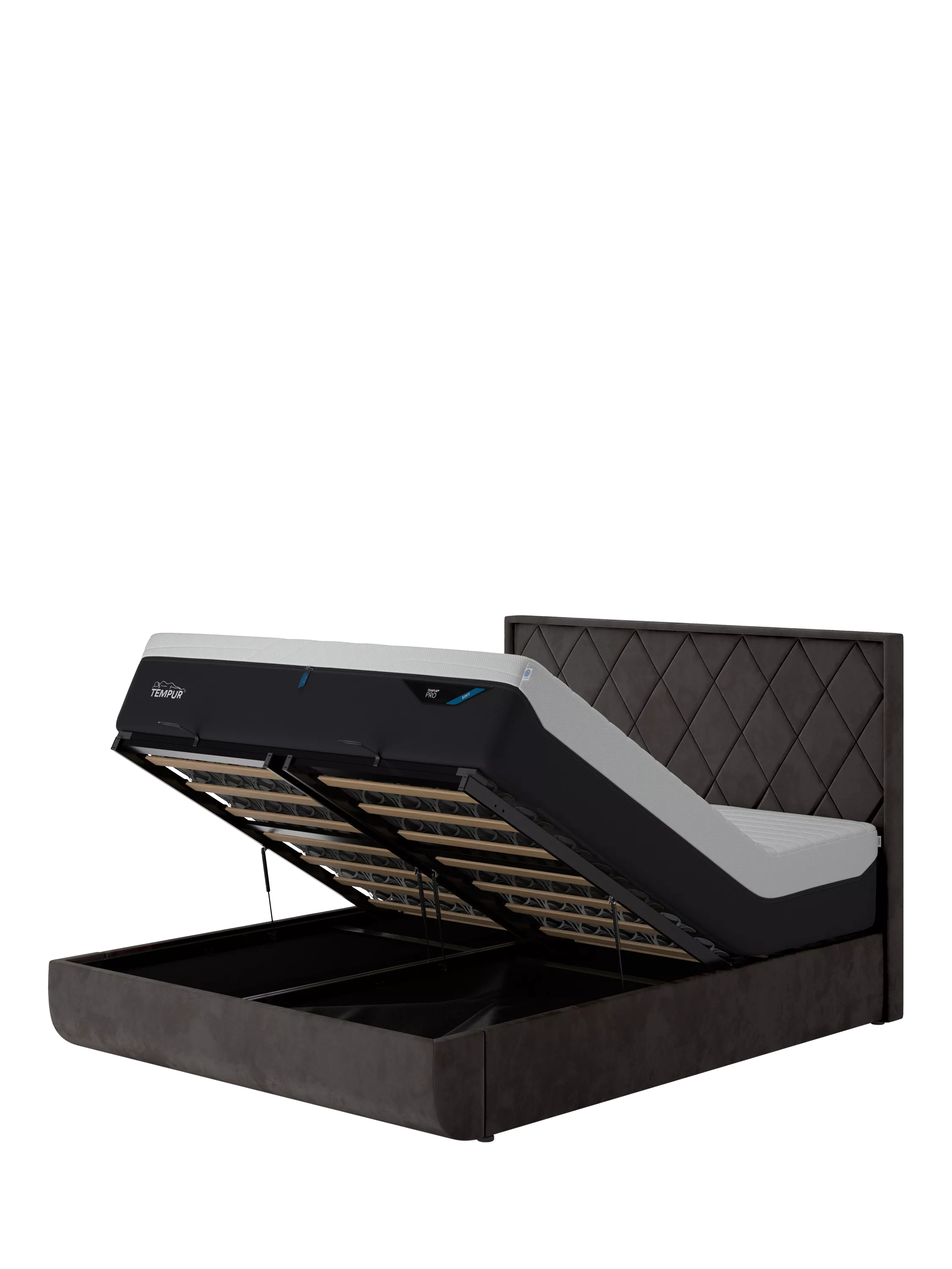 TEMPUR®Arc™ Ottoman Storage Disc Quilted Upholstered Bed Frame, King Size, Dark Grey