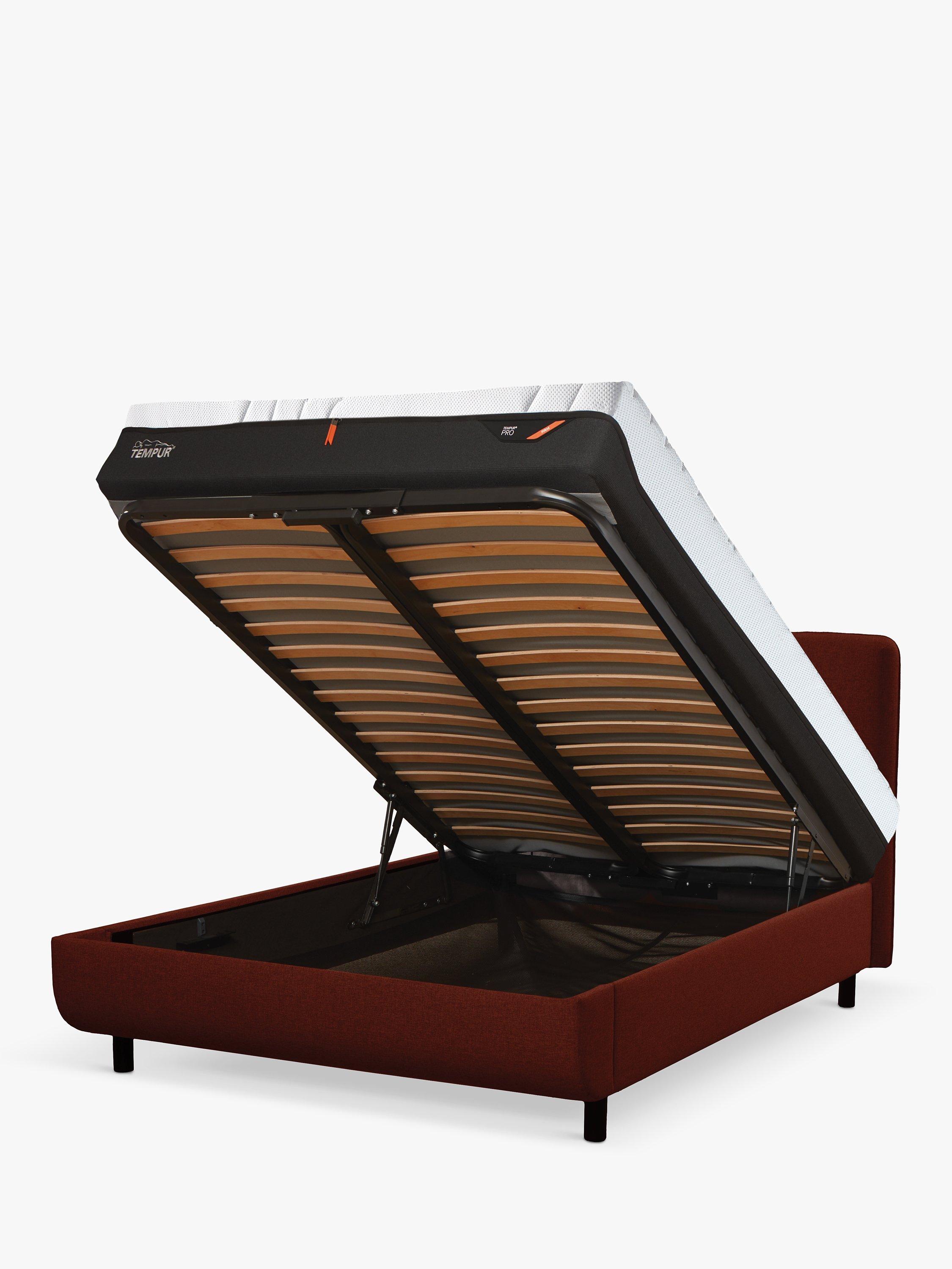 Providing the ultimate combination of storage and support, the Arc™ ottoman bed frame is designed for any TEMPUR® mattress. Its double-frame slat system works together with your mattress to support the body while you sleep, and high-quality steel tubing ensures the frame is reliably robust and durable. There's plenty of storage space available, and wide-opening hinges on the ottoman take the strain off lifting it open, giving you easy access to your stored items inside. It's a great option if you're short on space and need to adjust to compact living.