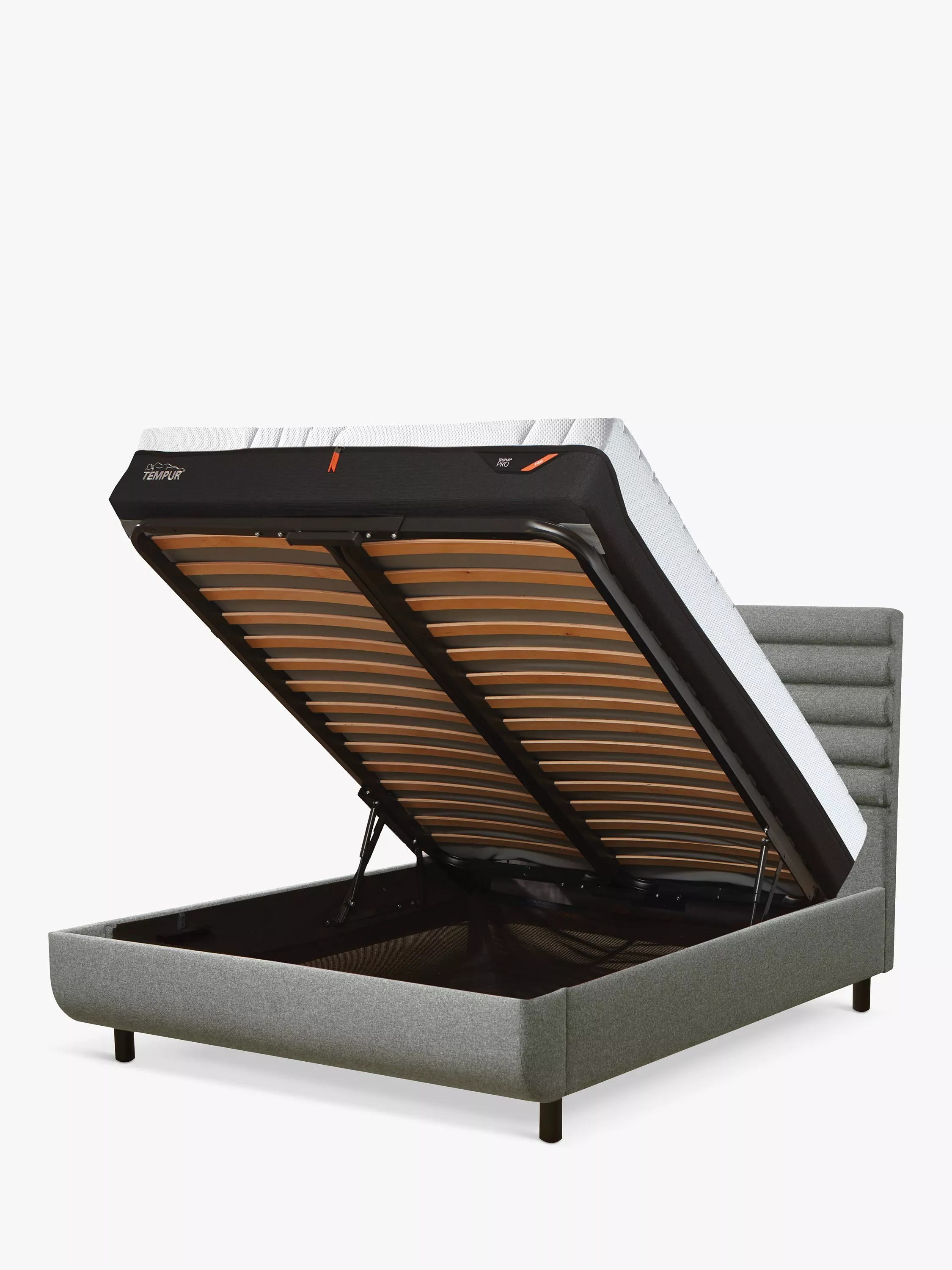 Providing the ultimate combination of storage and support, the Arc™ ottoman bed frame is designed for any TEMPUR® mattress. Its double-frame slat system works together with your mattress to support the body while you sleep, and high-quality steel tubing ensures the frame is reliably robust and durable. There's plenty of storage space available, and wide-opening hinges on the ottoman take the strain off lifting it open, giving you easy access to your stored items inside. It's a great option if you're short on space and need to adjust to compact living.