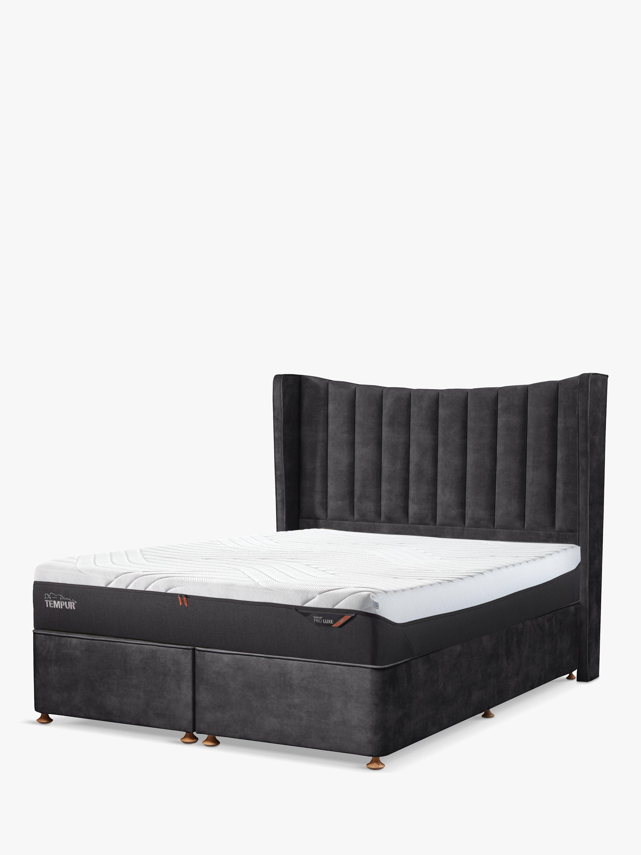 Upholstered in velvet, this striking panelled headboard with winged sides and a slightly curved profile will create a soft, yet regal style in your bedroom. It's a full-depth, freestanding fitting with standard fixings on either side, so it's easy to slot into the back of your divan base.