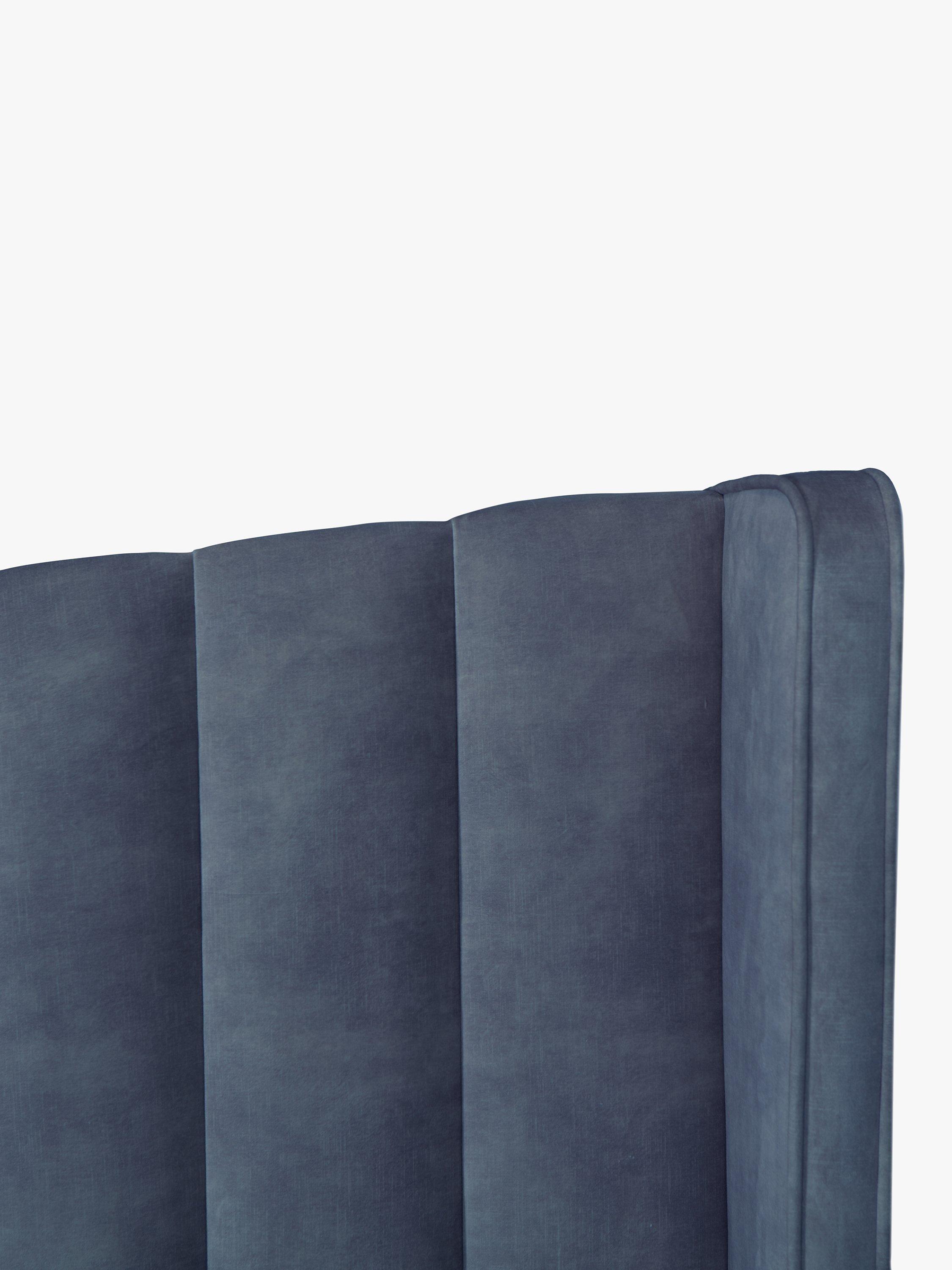 Upholstered in velvet, this striking panelled headboard with winged sides and a slightly curved profile will create a soft, yet regal style in your bedroom. It's a full-depth, freestanding fitting with standard fixings on either side, so it's easy to slot into the back of your divan base.