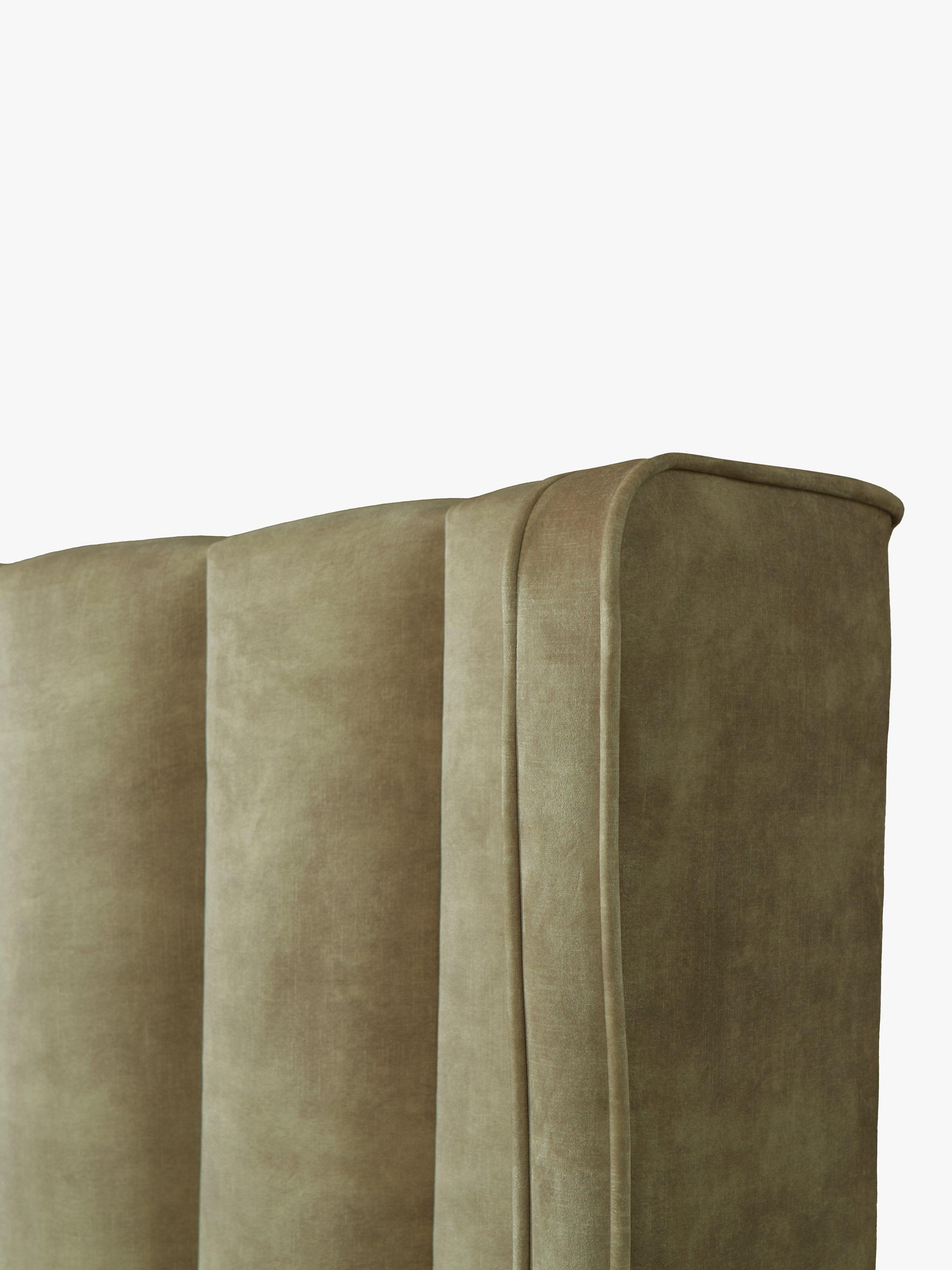 Upholstered in velvet, this striking panelled headboard with winged sides and a slightly curved profile will create a soft, yet regal style in your bedroom. It's a full-depth, freestanding fitting with standard fixings on either side, so it's easy to slot into the back of your divan base.