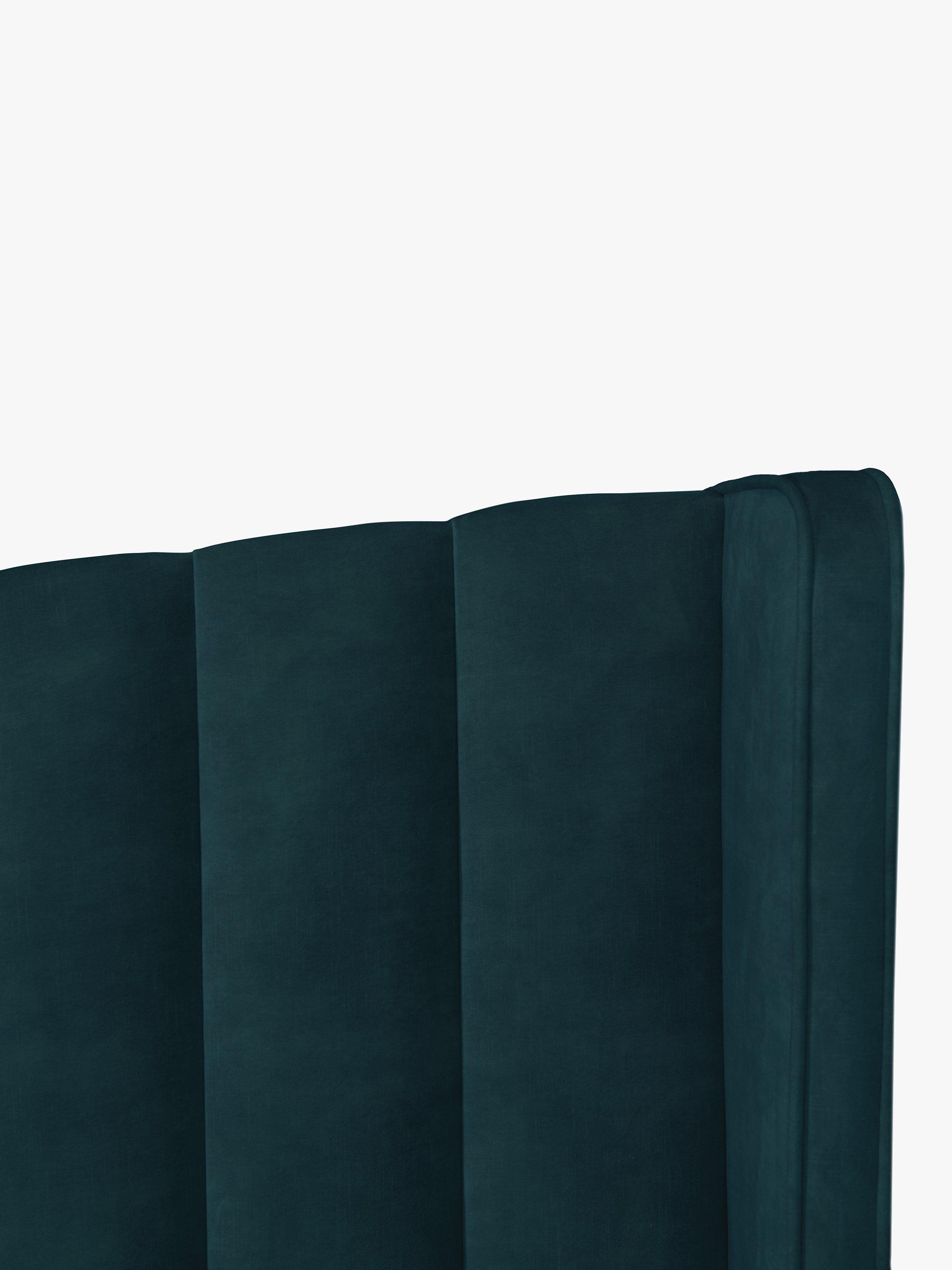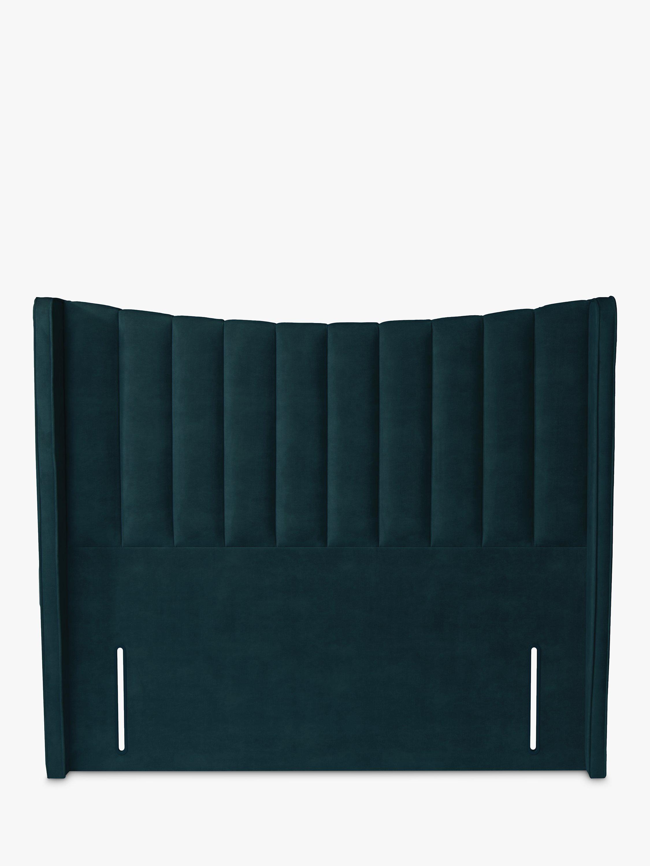 Upholstered in velvet, this striking panelled headboard with winged sides and a slightly curved profile will create a soft, yet regal style in your bedroom. It's a full-depth, freestanding fitting with standard fixings on either side, so it's easy to slot into the back of your divan base.