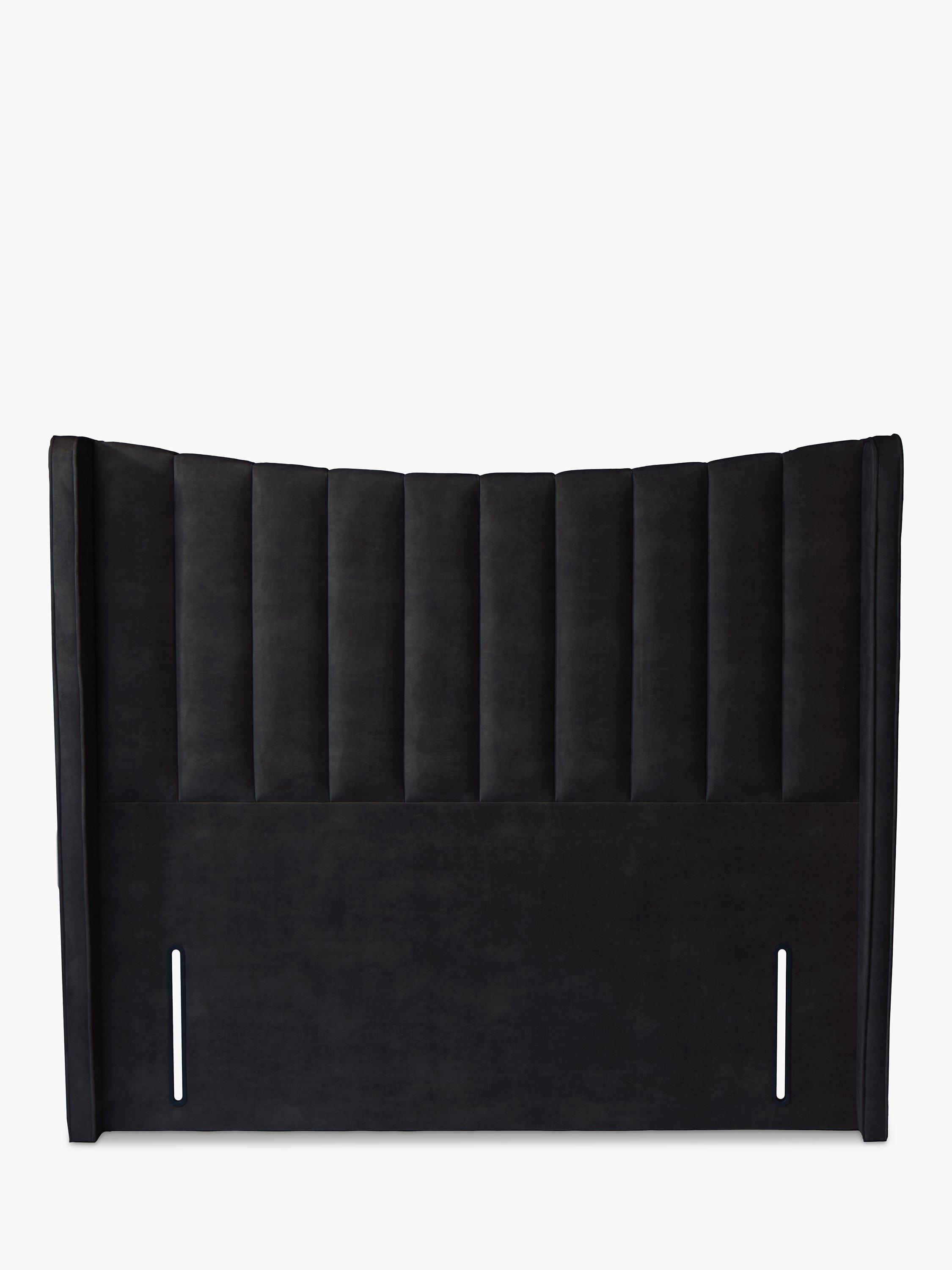 Upholstered in velvet, this striking panelled headboard with winged sides and a slightly curved profile will create a soft, yet regal style in your bedroom. It's a full-depth, freestanding fitting with standard fixings on either side, so it's easy to slot into the back of your divan base.