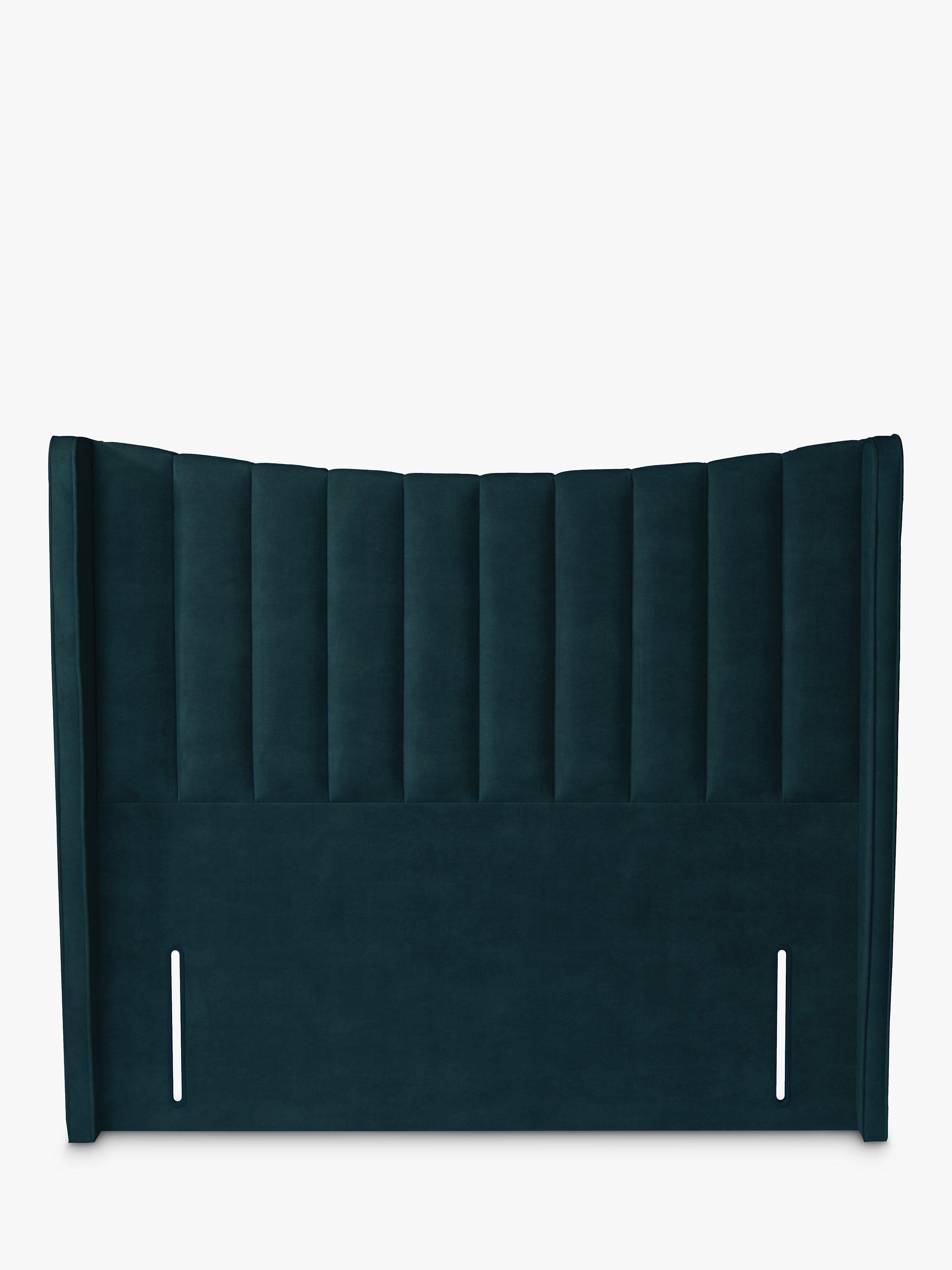 Upholstered in velvet, this striking panelled headboard with winged sides and a slightly curved profile will create a soft, yet regal style in your bedroom. It's a full-depth, freestanding fitting with standard fixings on either side, so it's easy to slot into the back of your divan base.