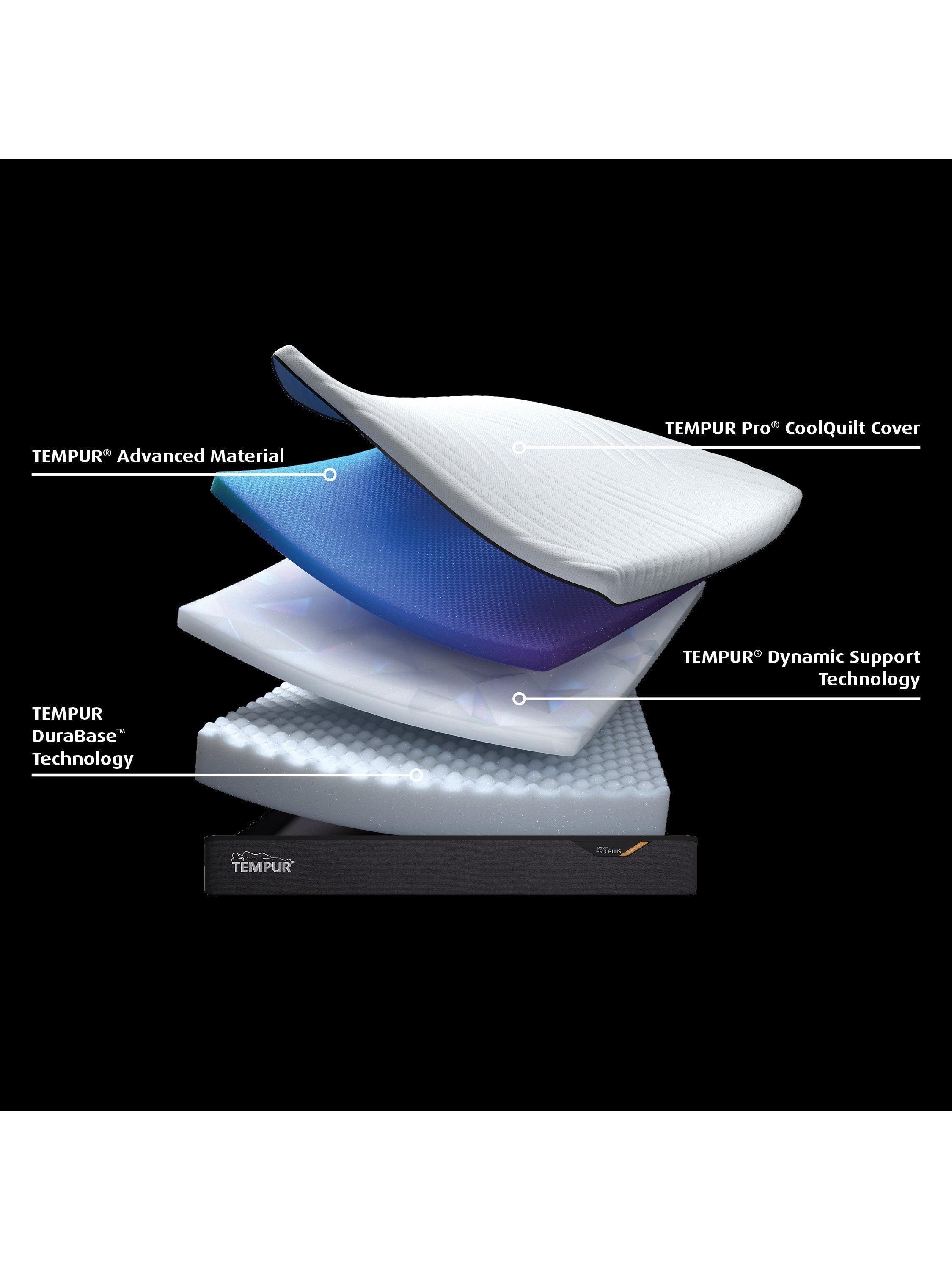 A medium firm feel mattress. At 27cm in height, the TEMPUR Pro® Plus CoolQuilt mattress has a generous level of TEMPUR® material inside for unique comfort and body support. Finished with the TEMPUR Pro® Plus CoolQuilt mattress cover; the QuickRefresh™ cover is cool-to-the-touch and luxuriously pillowy, while being easy to unzip and remove for airing. TEMPUR® Advanced Material provides the best ever pressure relief across your body, with billions of ultra-sensitive cells adapting to your size and shape to provide comfort and support on a whole new level.