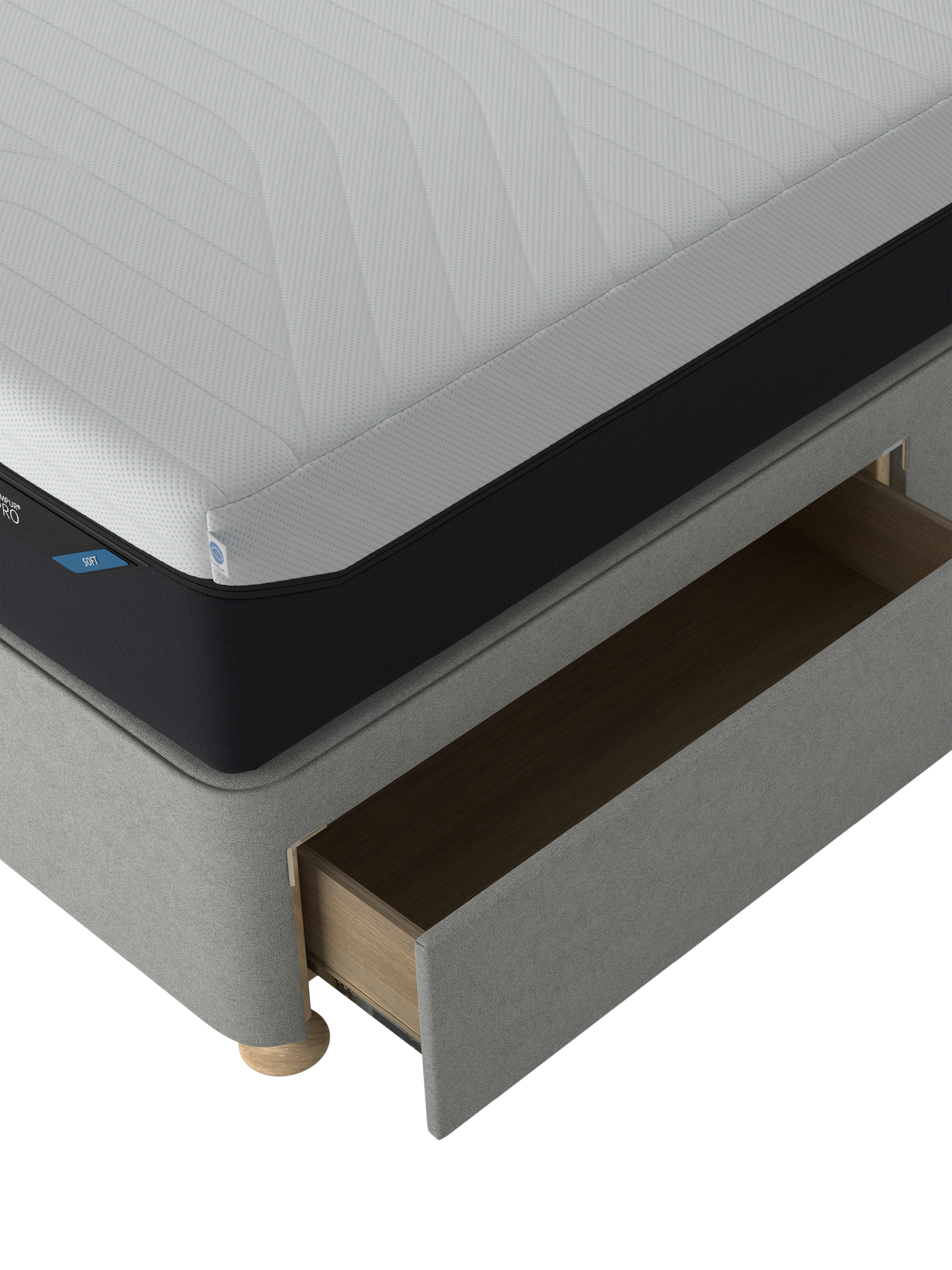 Designed to complement all TEMPUR® mattresses, the Suffolk upholstered divan base offers a precise level of comfort and support, alongside helpful storage space. The base itself features the customisable Arc™ Adjustable Disc design to help you find your preferred sleeping position at the touch of a button. You can elevate your head and legs to ease pressure on your back, improve circulation and almost feel weightless. Discs in the frame flex with your body and adjust to your shape and movements while you sleep, and they can also be arranged in zones to create a softer, or firmer feel where you need it. Plus, openings between the discs ensure that air can flow effectively and keep your mattress ventilated.